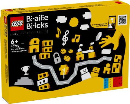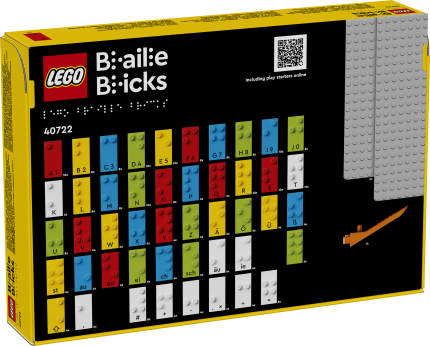 The LEGO® Play with Braille – German Alphabet (40722) set contains 287 LEGO braille bricks, including the letters of the
