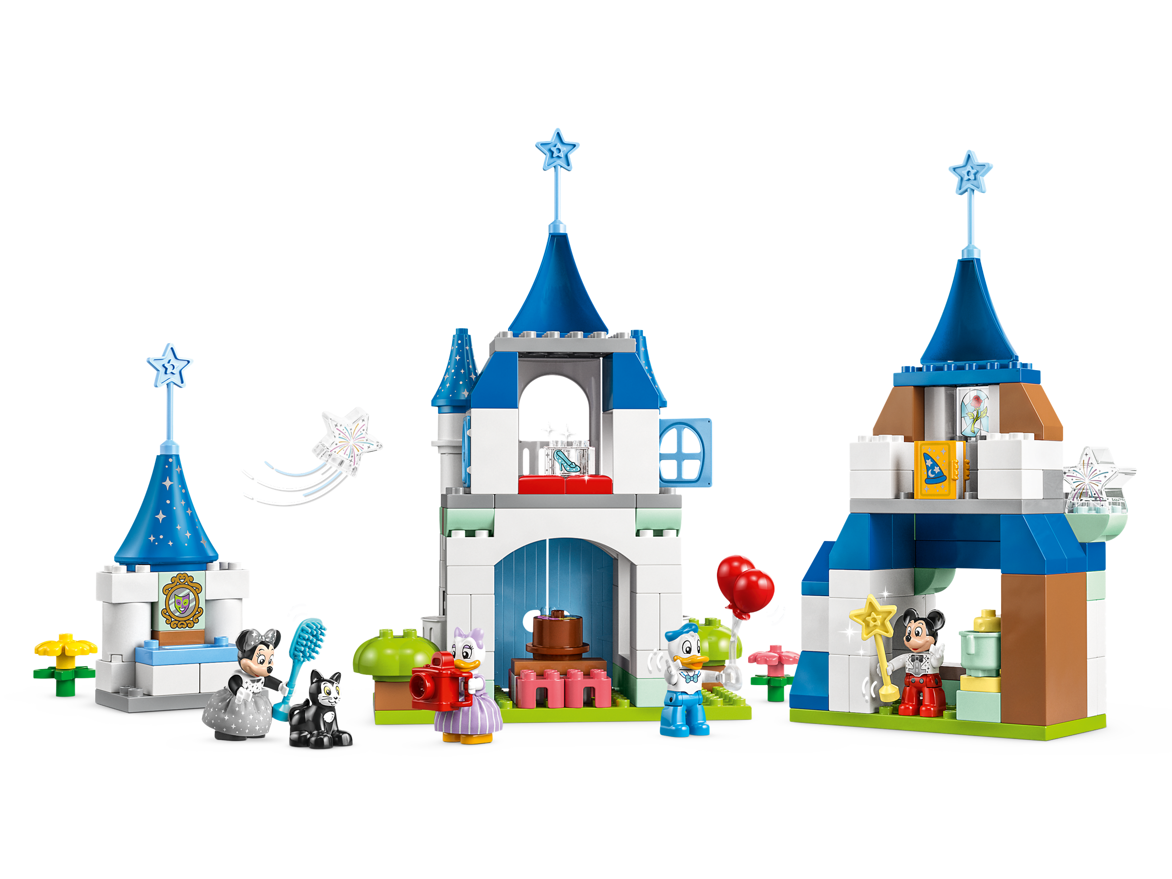 The castle can be built 3 ways. Toddlers get the choice of making one large model, a tall tower or 2 smaller castle builds. The set isfull of features for imaginative play, such as a kitchen for cake-making and a dressing room with a buildable mirror toy. Also included are enchanting details from around the Disney universe, such as Cinderella’s shoe, Belle’s rose and the magic book from The Sorcerer’s Apprentice.