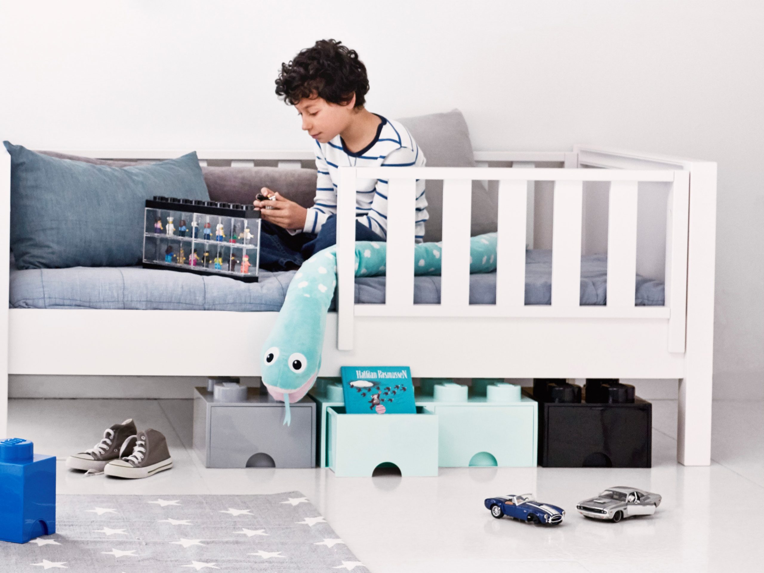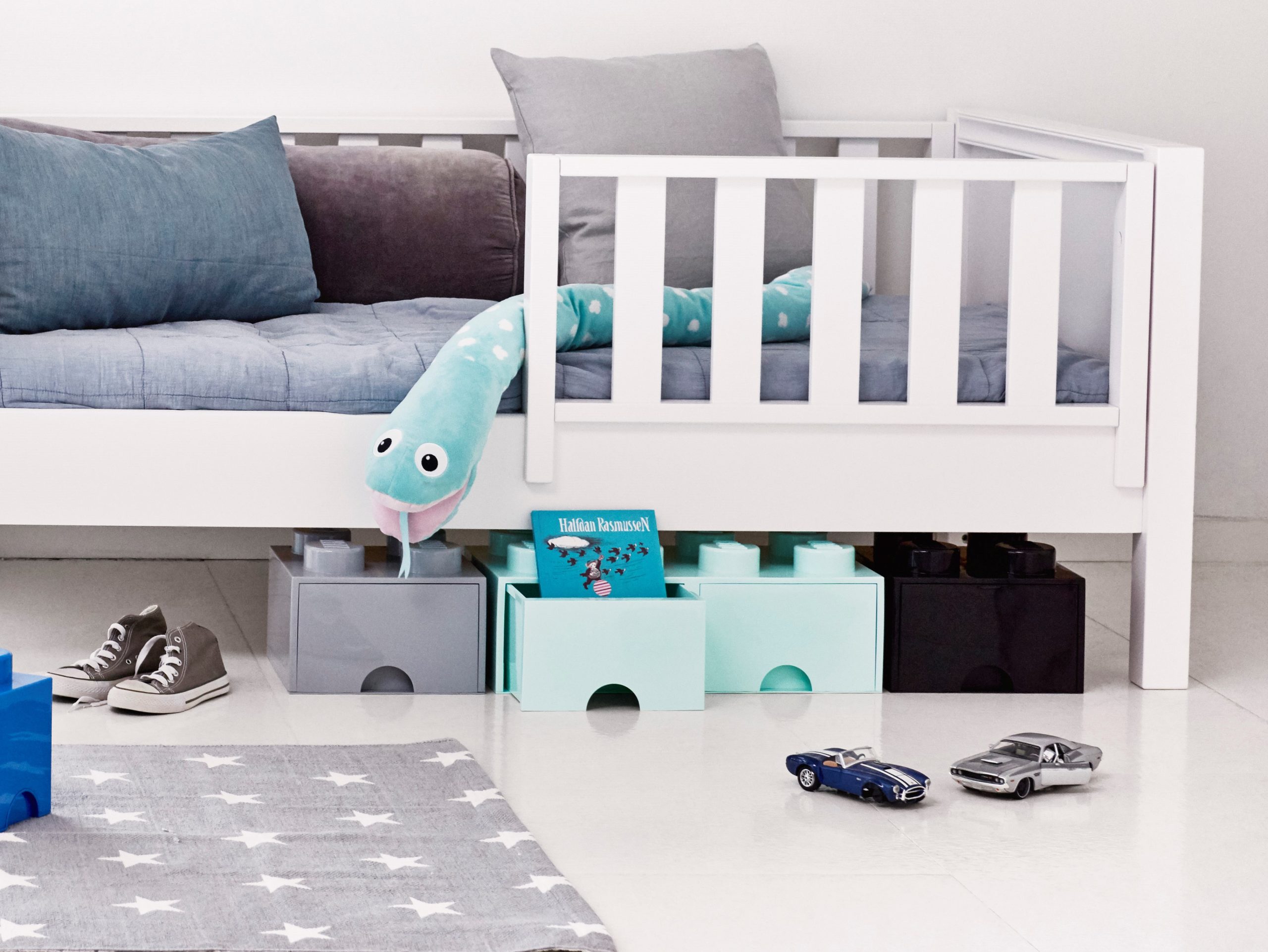 Keep rooms tidy in style with the LEGO® 8-Stud Brick Drawer. Made from durable plastic, it has two drawers and is ideal for storing toys, LEGO bricks (not included), toiletries, office supplies and other small items. These units are stackable and available in multiple colors (sold separately) for home decor that is both practical and delightful. (Please note: Always open the drawers on a level surface to avoid the risk of the box tipping over. Drawers may tilt when open freestanding.)