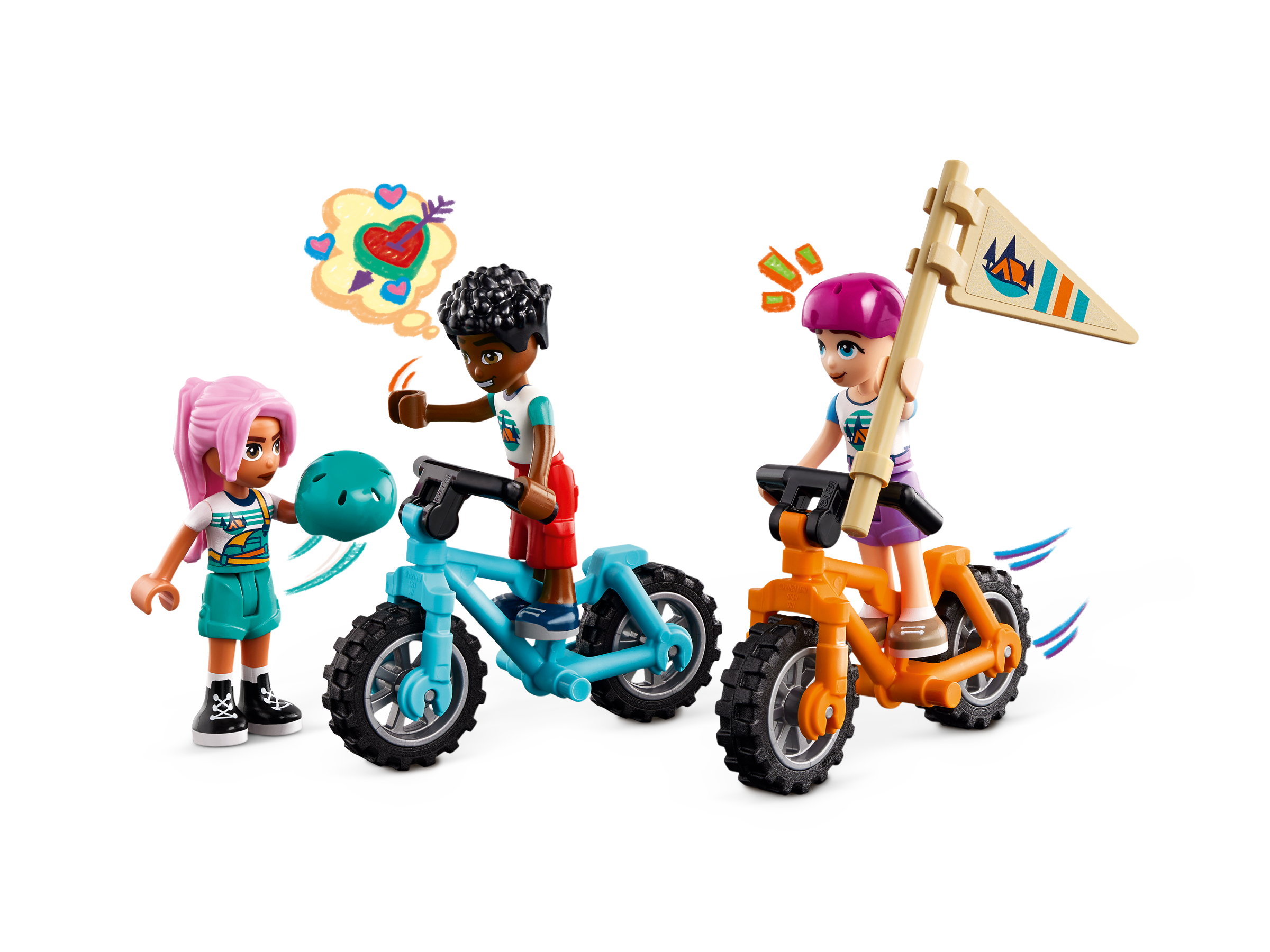 This LEGO toy building set for kids makes imaginative pretend play so much fun. Young builders tell the story of Paisley, Zac and Sky as the friends enjoy a cozy camping trip. The set includes 2 buildable shelters with roofs that lift for easy access. The friends put the sleeping bags inside, ready for nightfall. Then Zac and Sky ride the 2 mountain bikes while Paisley writes songs on the lute. In the evening, the friends relax by the campfire, where they toast marshmallows and make the traditional campfire treat – s’mores.