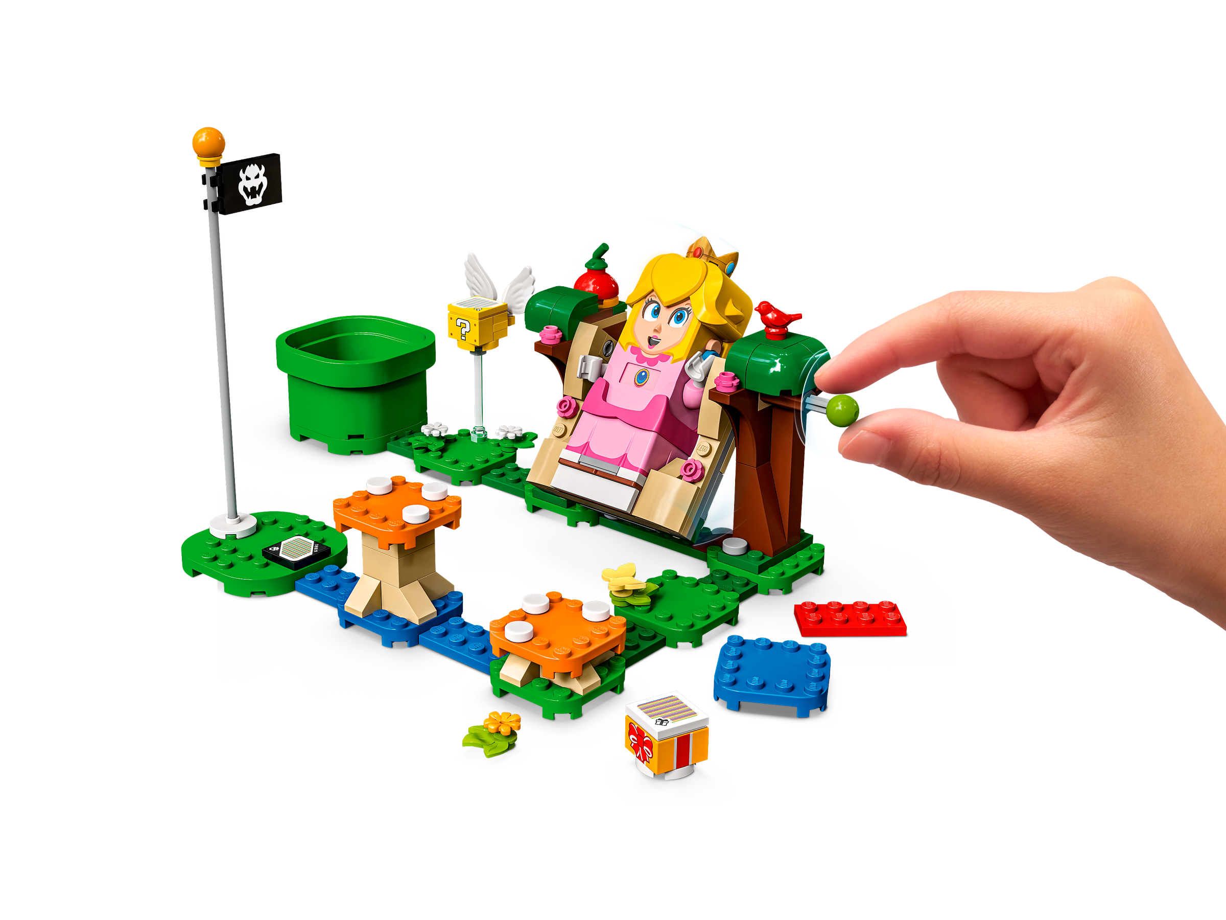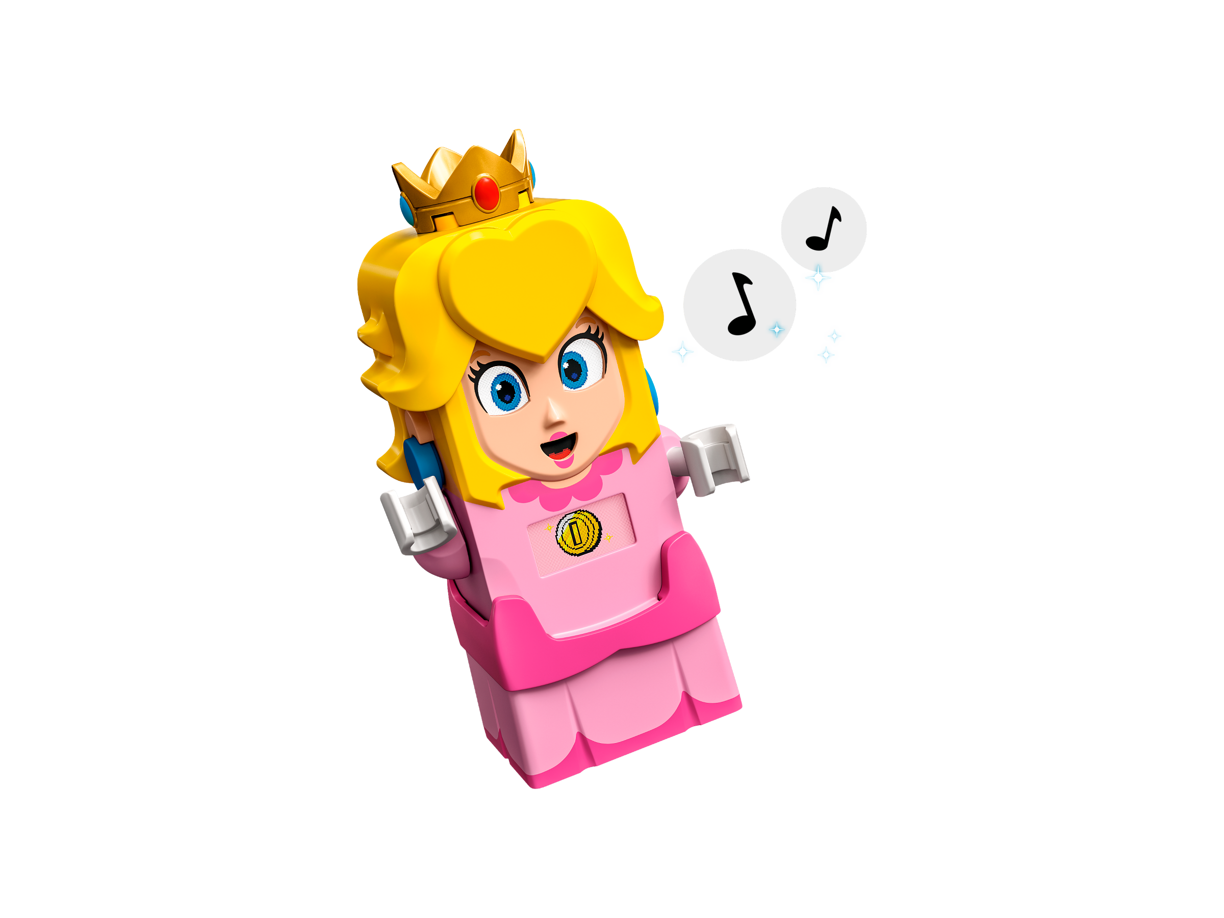 Have fun with gifting challenges and launching the Lava Bubble to topple Lemmy from a tower. Earn digital coins for helping LEGO Peach ride the swing set and for interactions with the Yellow Toad. The Flying ? Block offers rewards too. The red fruit in this toy playset can be ‘eaten’ by LEGO Peach, triggering happy reactions and earning extra coins. It can also be gifted to the Yellow Toad or another interactive figure (not included). Find building steps in the LEGO Super Mario app.