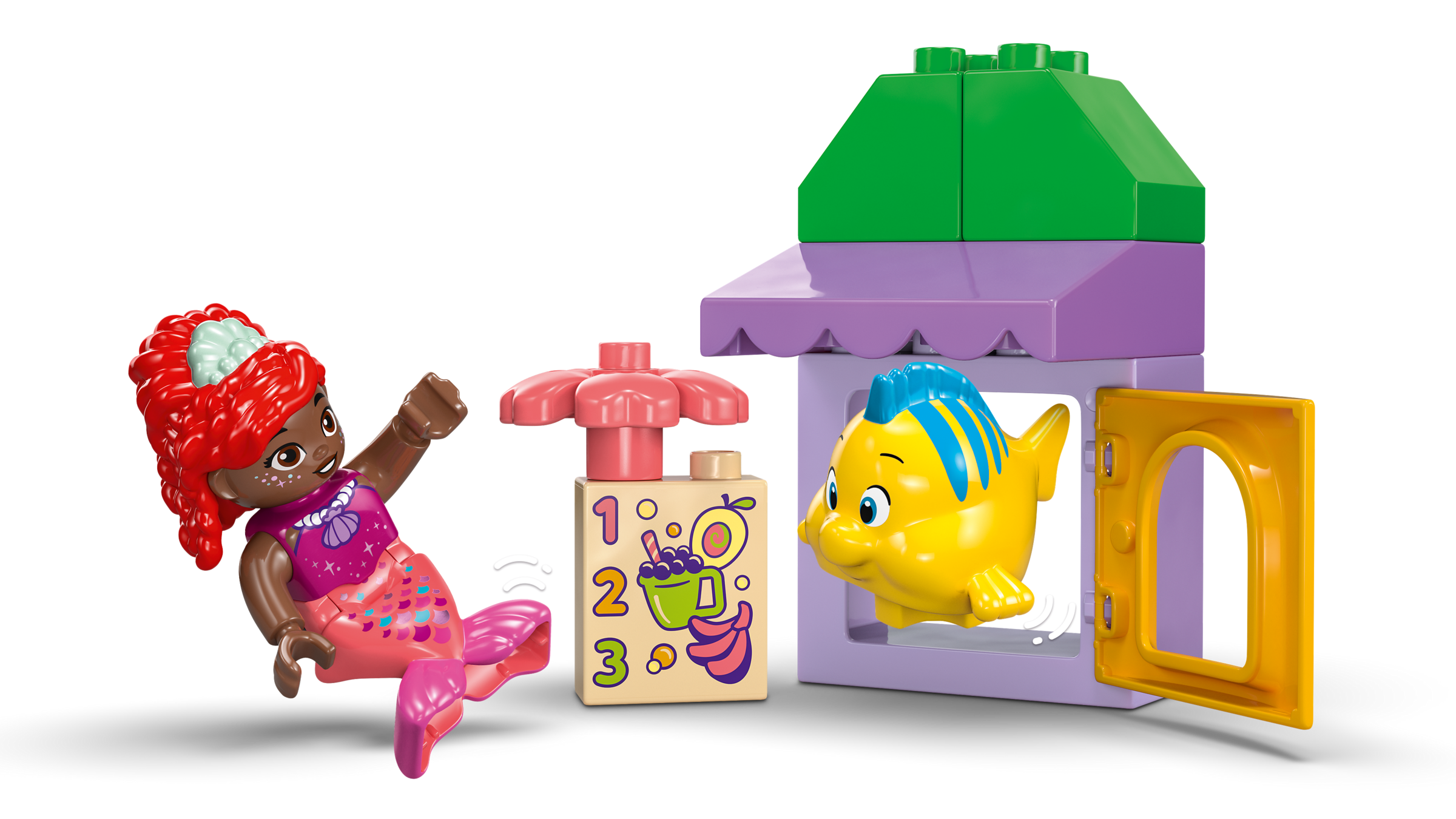 Give Little Mermaid fans a fun adventure under the sea as they hang out at the LEGO® DUPLO® ǀ Disney Ariel and Flounder’s Café Stand (10420) building toy. Preschool kids aged 2 and up join characters they know and love from the Disney Junior TV show Ariel.
