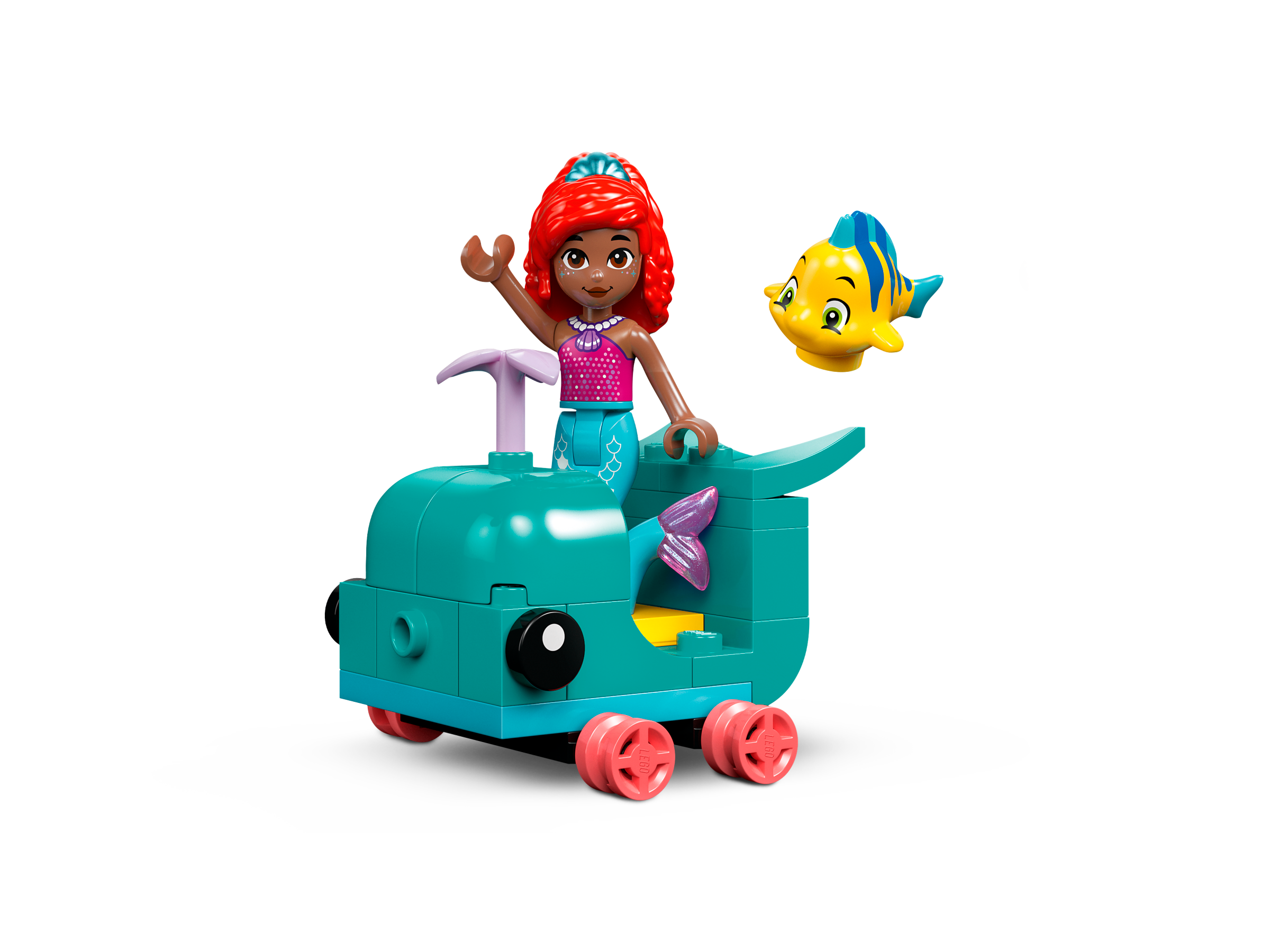 Exploration and play awaits kids aged 4 as they learn to build with this LEGO® ǀ Disney Princess Ariel’s Crystal Cavern (43254) building toy. This buildable mermaid playset gift helps boost kids’ problem-solving skills with creative play. Inside is a cavern with a spinning platform and slide, a whale vehicle, a shipwreck with a treasure chest and a cauldron. It also includes Ursula and Ariel LEGO ǀ Disney mini-doll figures and a Flounder LEGO ǀ Disney fish figure.