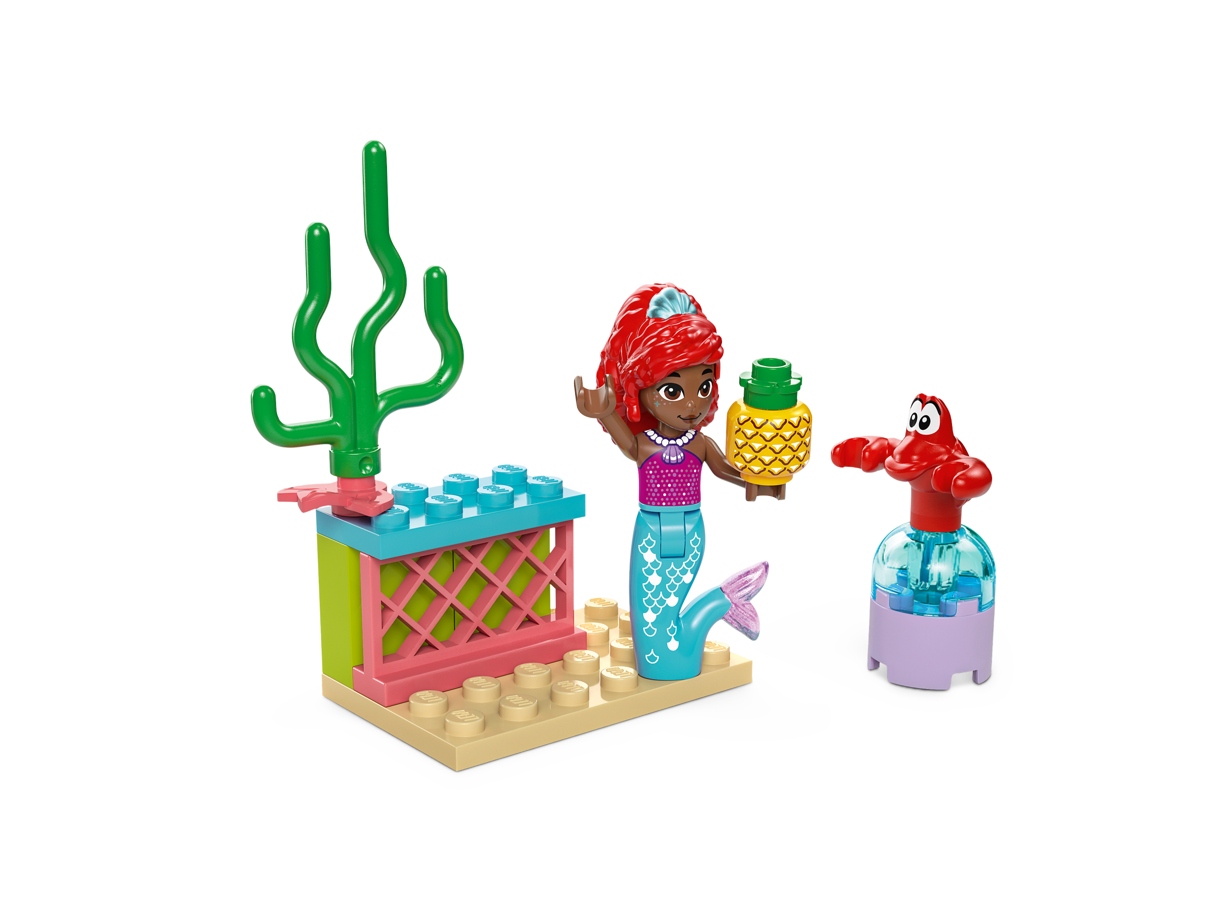 This kids’ building toy includes a LEGO ǀ Disney Ariel mini-doll figure and LEGO ǀ Disney Sebastian animal figure. There’s also a stage with a spinning floor, and a refreshment area build with a chair and fun story starter elements including a guitar, maracas and a pineapple. A Starter Brick element gives kids a sturdy base so play can start fast, while intuitive instructions are provided in the form of a colorful picture-story guide made for kidswho are just starting to learn how to read.