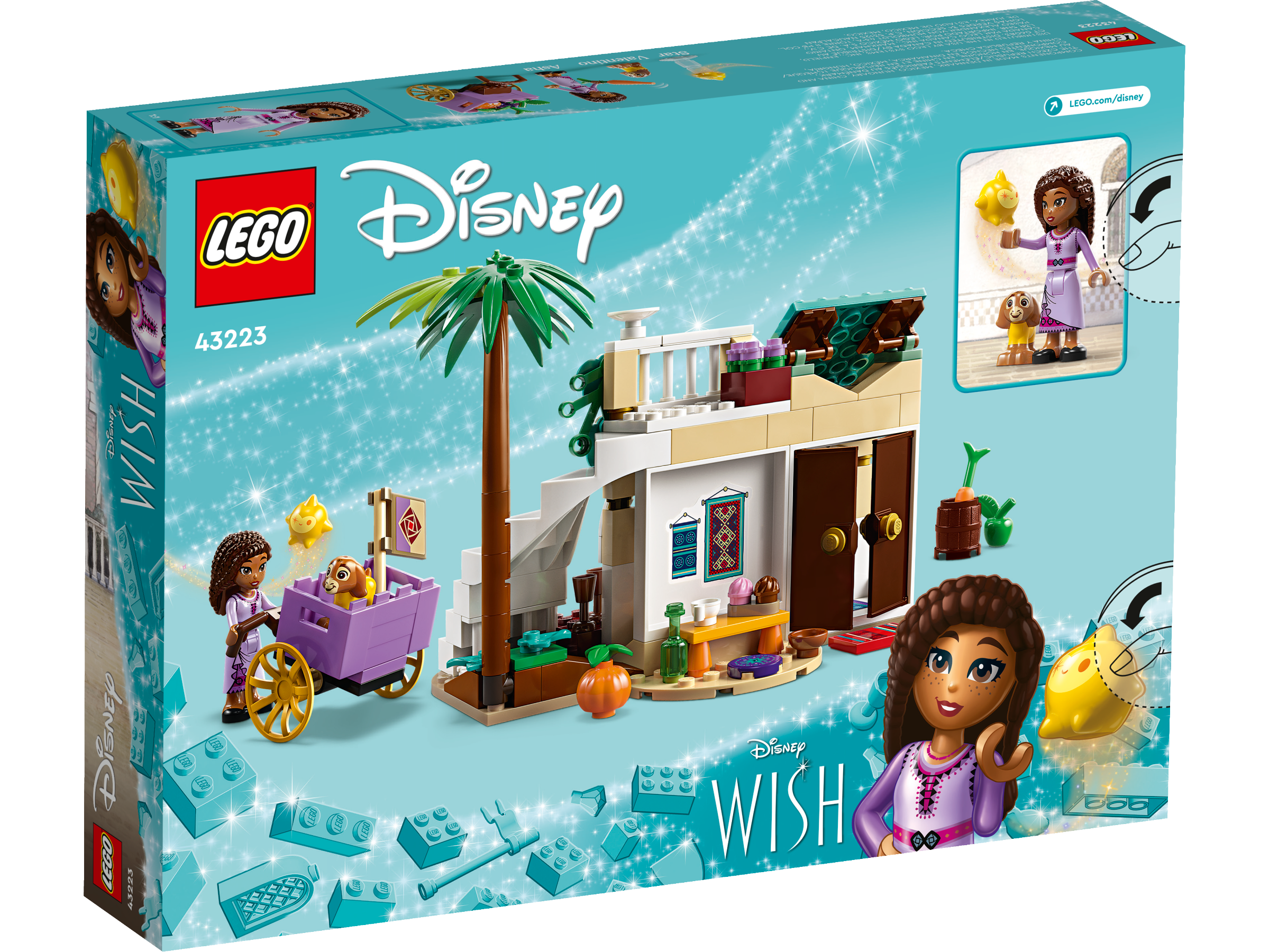 Inspire kids and Disney fans aged 6 and over to wish upon a star with this LEGO® ǀ Disney Asha in the City of Rosas (43223) buildable set from Walt Disney Animation Studios’ upcoming film, Wish. The kit includes a marketplace with stairs and a balcony, a back room with a table, a cart, a LEGO ǀ Disney mini-doll figure and 2 LEGO ǀ Disney figures. This set helps grow kids’ confidence, sparking creative storytelling and play. It can also be added to other LEGO ǀ Disney construction sets in the series (43224 and 43231, sold separately) to expand play. Kids can also enjoy an easy and intuitive building experience with the LEGO Builder app. They can zoom in and rotate models in 3D, save sets and track their progress.