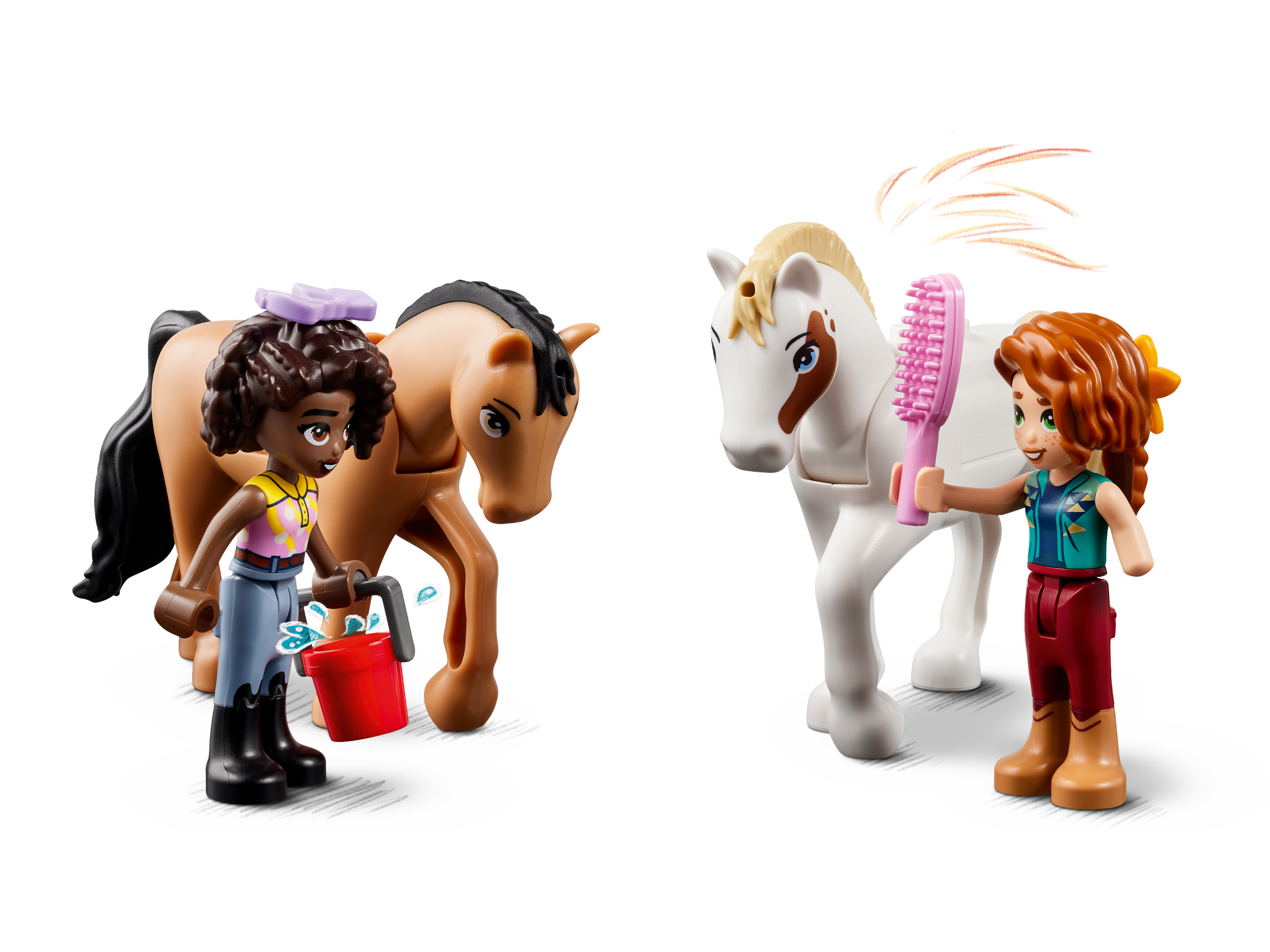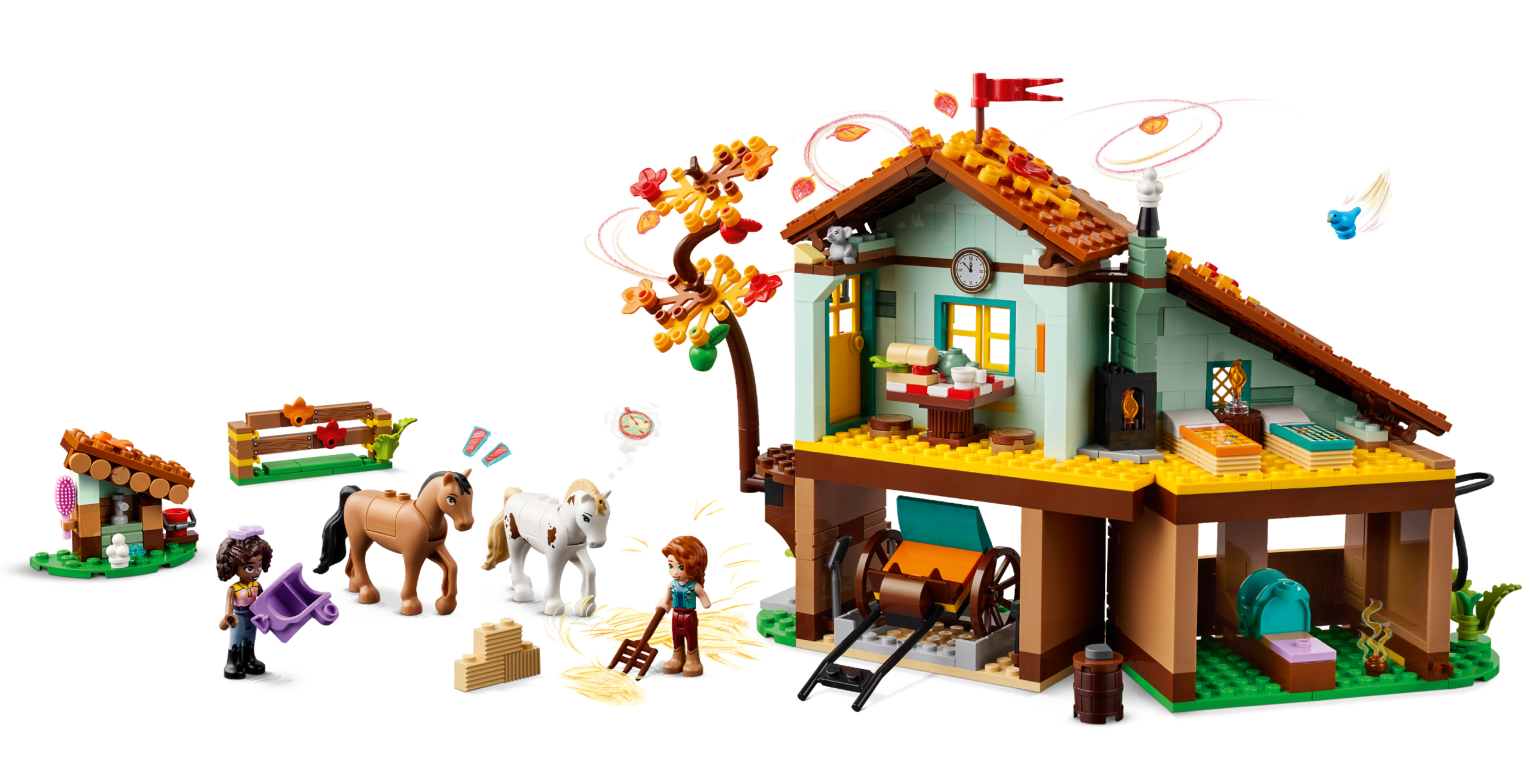 Give little horse lovers ages 7 and up a treat with this LEGO® Friends Autumn’s Horse Stable (41745) buildable toy. The set comes with Autumn and Aliya mini-dolls, plus 2 horse characters and accessories for creative play. Kids can care for the horses and hitch them to the carriage, before going for a ride. They can enjoy getting to know the characters too. Autumn and Aliya have very different personalities but are the best of friends. They are just as happy spending quiet time together as theyare having adventures. Above the stables, there is a cozy kitchen and a sleeping area complete with hay beds. Just what every horse lover dreams of!