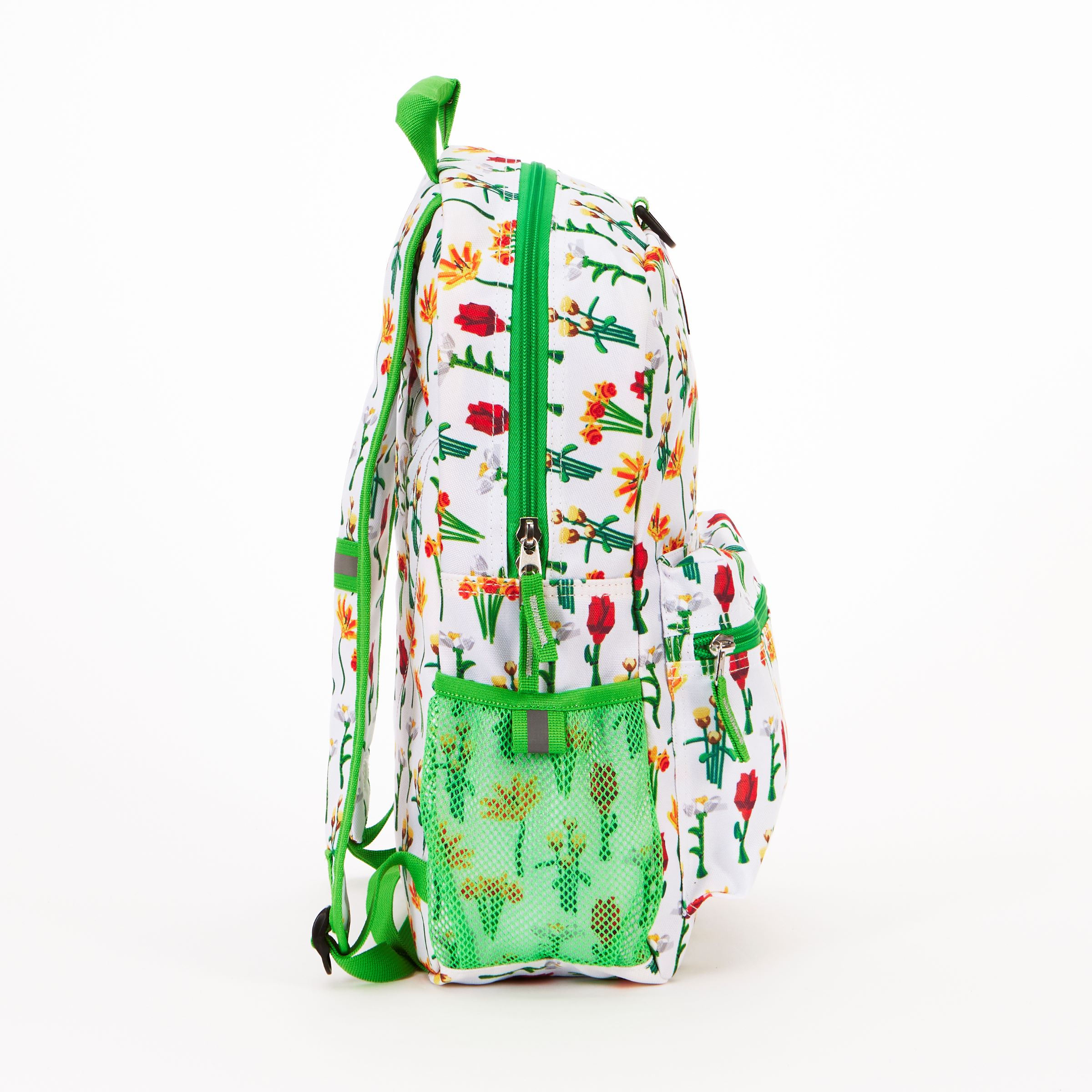 Experience the joy of spring every day with the LEGO® Backpack– Warm Bouquet. This LEGO bag for kids and any fan aged 3 features flower graphics and has a main compartment with a slip pocket suitable for a laptop, a front zipper pocket and a sidemesh pouch for quick-access items. The padded back panel, padded adjustable straps and padded haul handle mean it’s comfortable to carry. Mix and match with a LEGO Lunch Bag (sold separately), which can be attached to the D-ring.