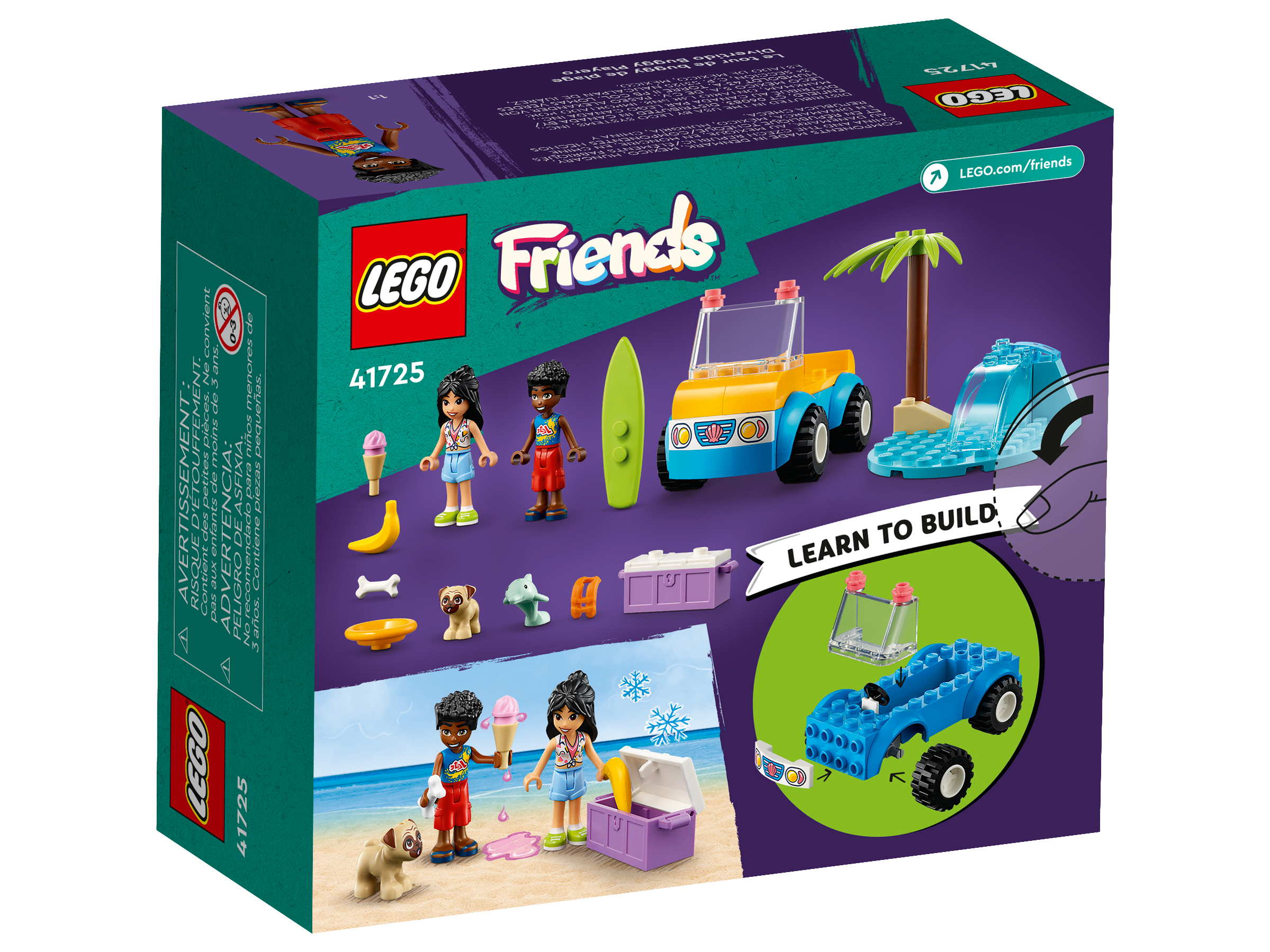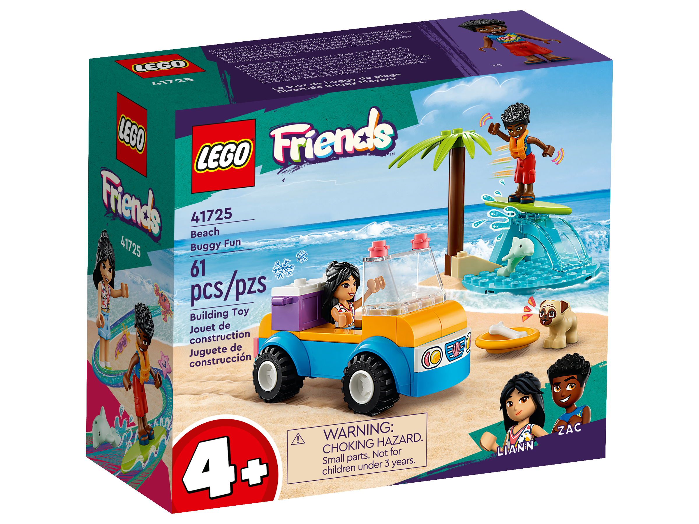 Kids aged 4 and up who love to play at the beach can create stories with the LEGO® Friends Beach Buggy Fun (41725) building set. This toy set helps kids learn to build while they get creative with characters Liann and Zac. Liann’s energy and enthusiasm make her a great match for outgoing Zac. Accessories include a food cooler with a banana and an ice cream. The set also comes with a toy beach buggy and a wave, plus a pug and a dolphin.
