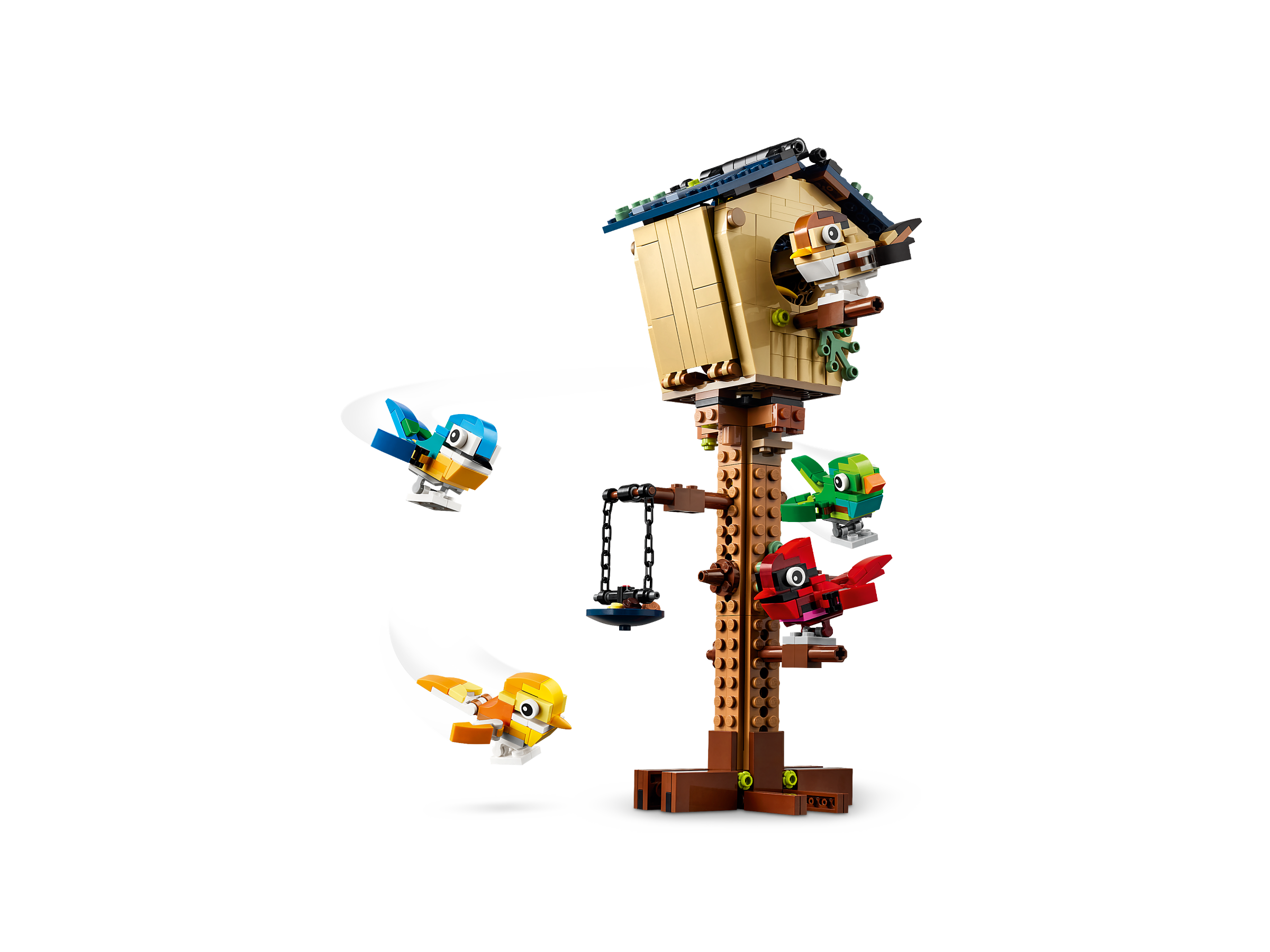 Kids aged 8 and up can play out exciting stories with this brilliantly detailed LEGO® Creator 3in1 Birdhouse (31143) building set. It features a birdhouse with an opening roof at the top of a stand and includes 5 colourful and posable toy birds to sit on its perches.