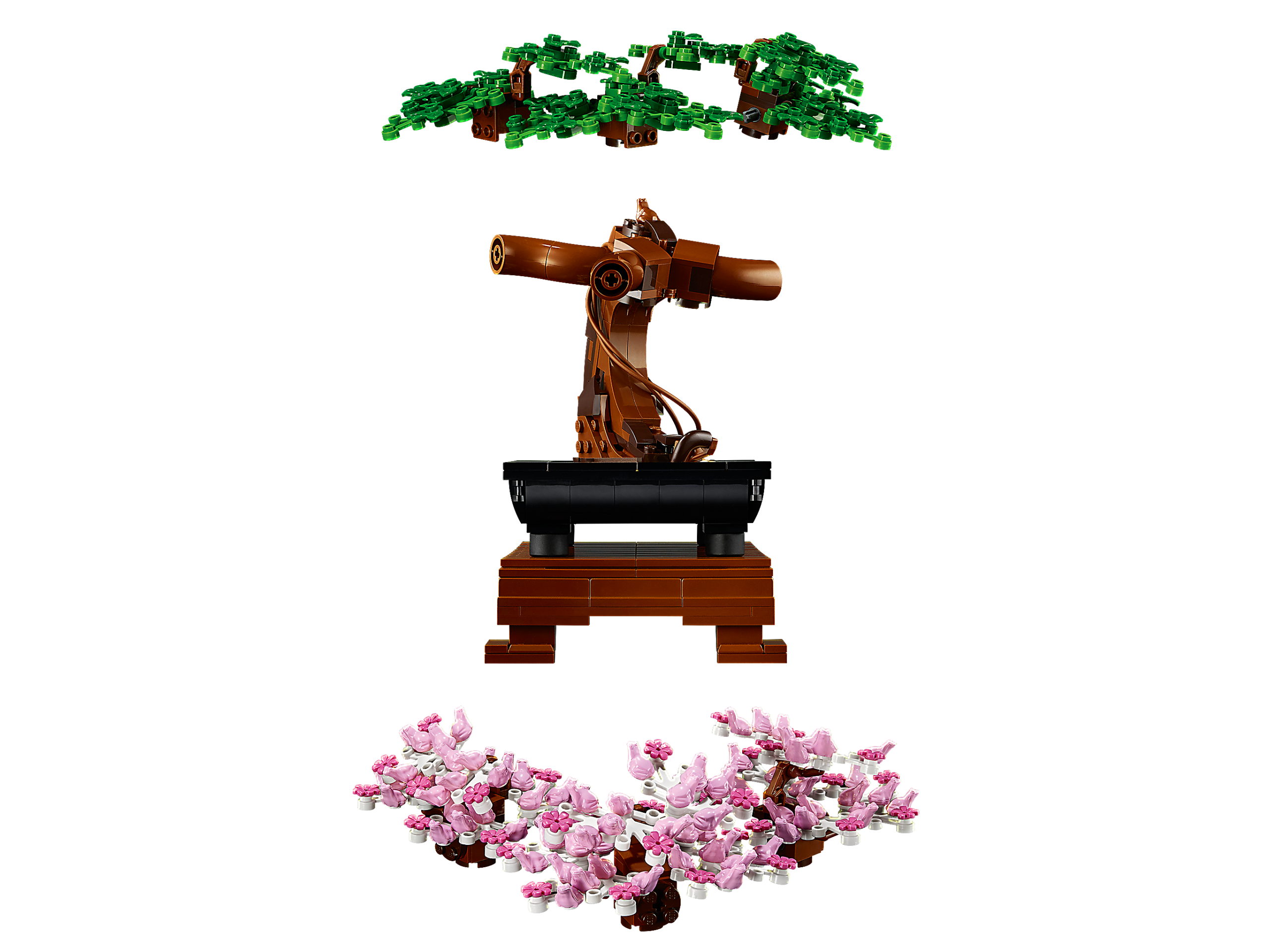 The art of bonsai has captured the imaginations of tree lovers for centuries. Now you can celebrate this ancient art with the LEGO® Bonsai Tree model building kit. Enjoy a sense of calm as you carefully shape the bonsai tree model with either green leaves or pink cherry blossoms. When you’re ready for a change, it’s easy to swap the colored crowns to create a totally new look. Take a closer look at the pink blooms – do you see the tiny frogs that make up each blossom flower?