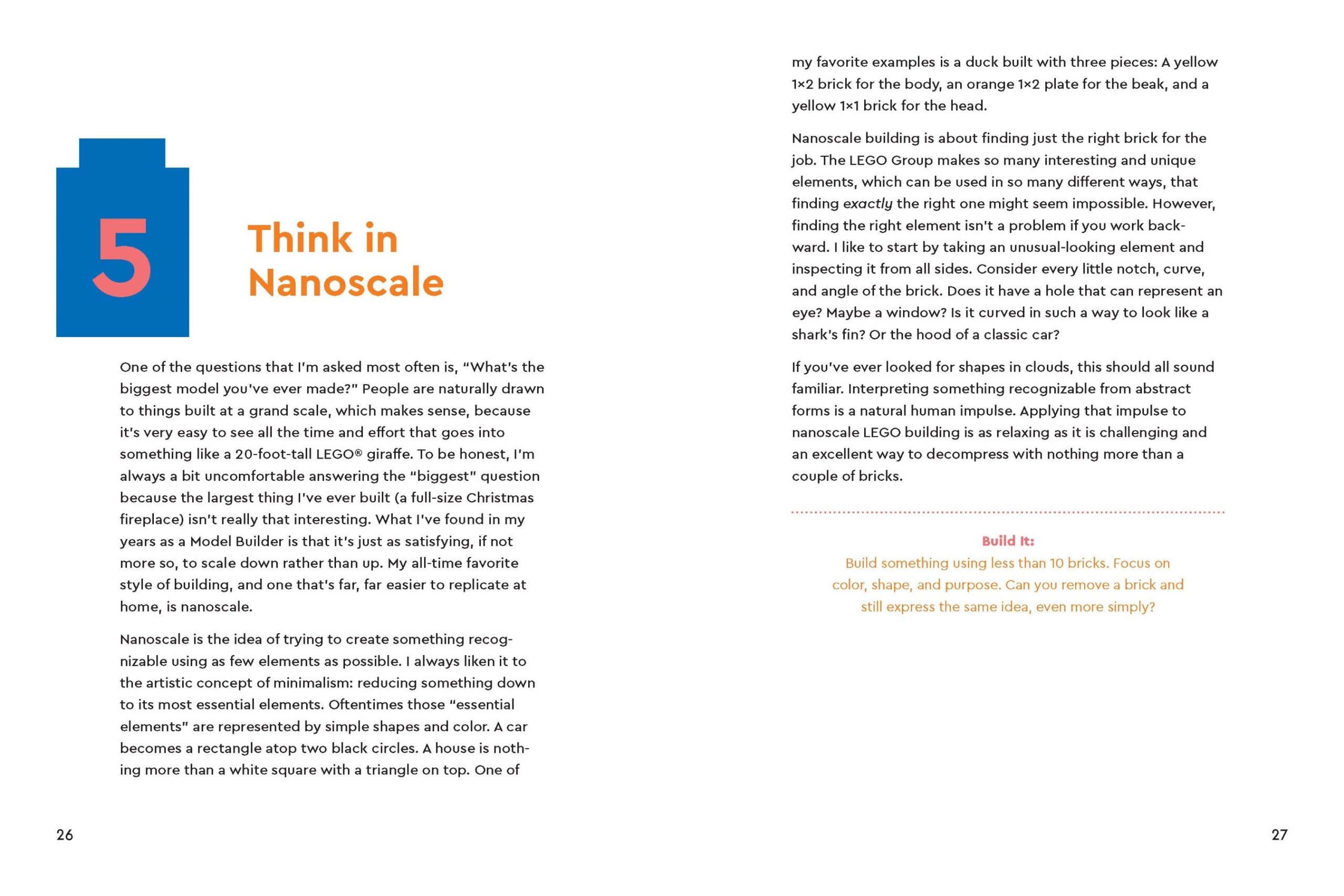 LEGO® Build Every Day features an inspirational collection of bite-sized lessons on creativity and life taught through building with LEGO bricks. The 96-page hardcover book includes tips and advice from master model builder Alec Posta, who shows readers how to build their way through problems by using LEGO techniques to solve real-life challenges. Each of the 22 chapters features a LEGO concept with a building prompt to put it into practice.