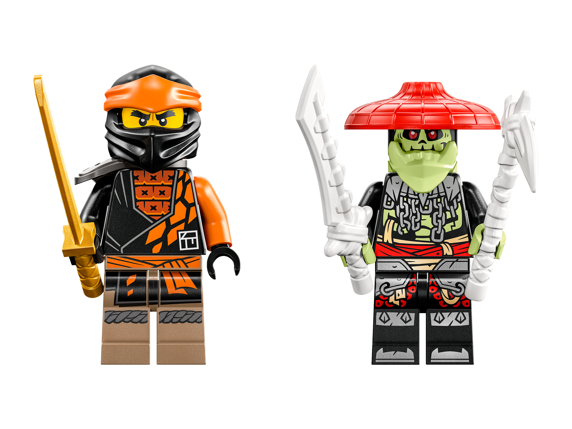 The playset includes 2 minifigures: Cole armed with a golden katana, and Bone Scorpio with a scythe and a bone warrior assorted weapons pack. Bone Scorpio can also can ride into battle on his 6-legged scorpion creature. For succeeding in their challenge, kids are rewarded with a collectible Strength banner.