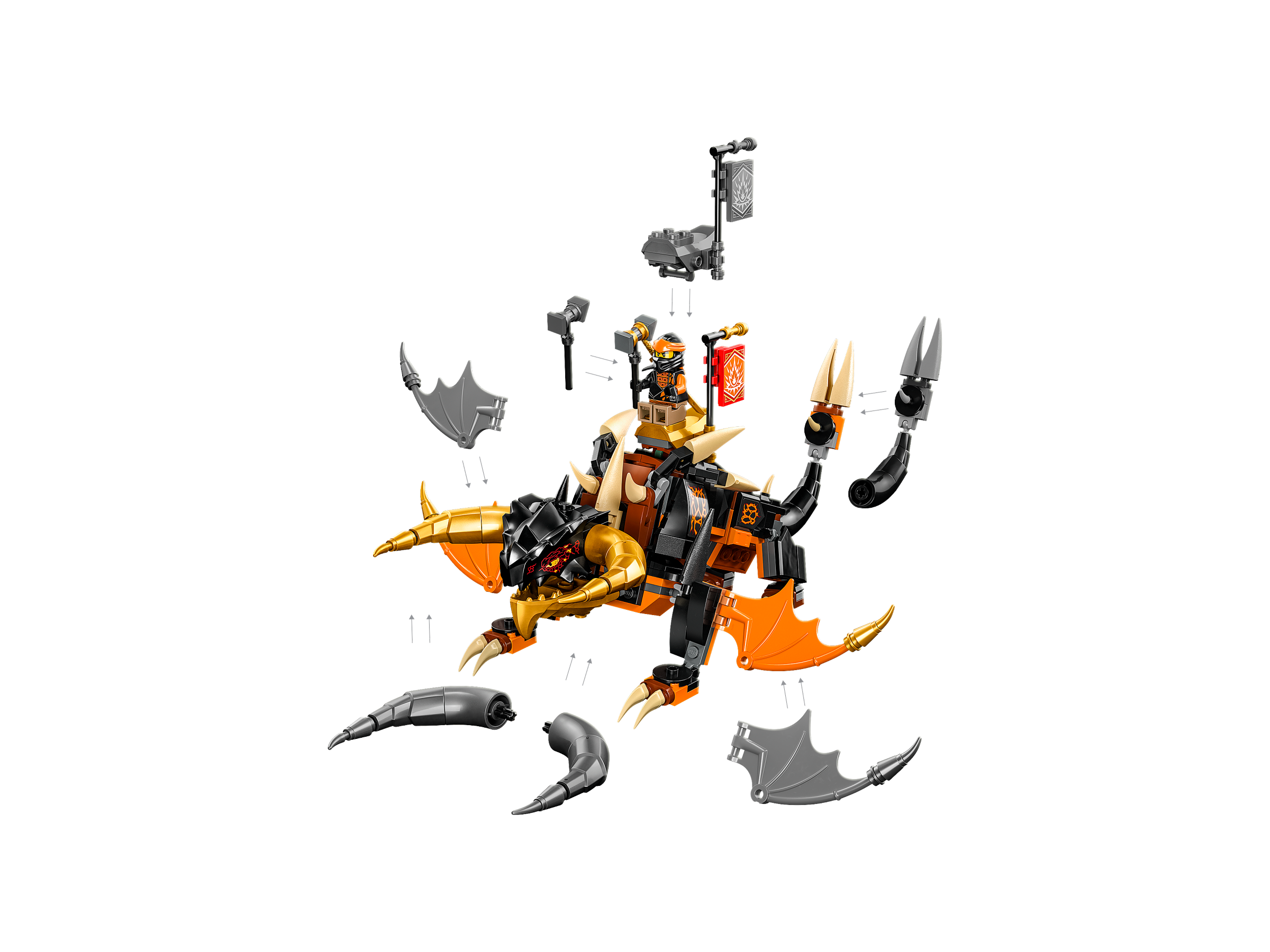 Kids aged 7 will be excited to stage enthralling battles with this LEGO® NINJAGO® Cole’s Earth Dragon EVO (71782) playset. During the action, kids can upgrade the posable dragon toy to make it even bigger and more powerful by adding golden wings, horns and a tail.
