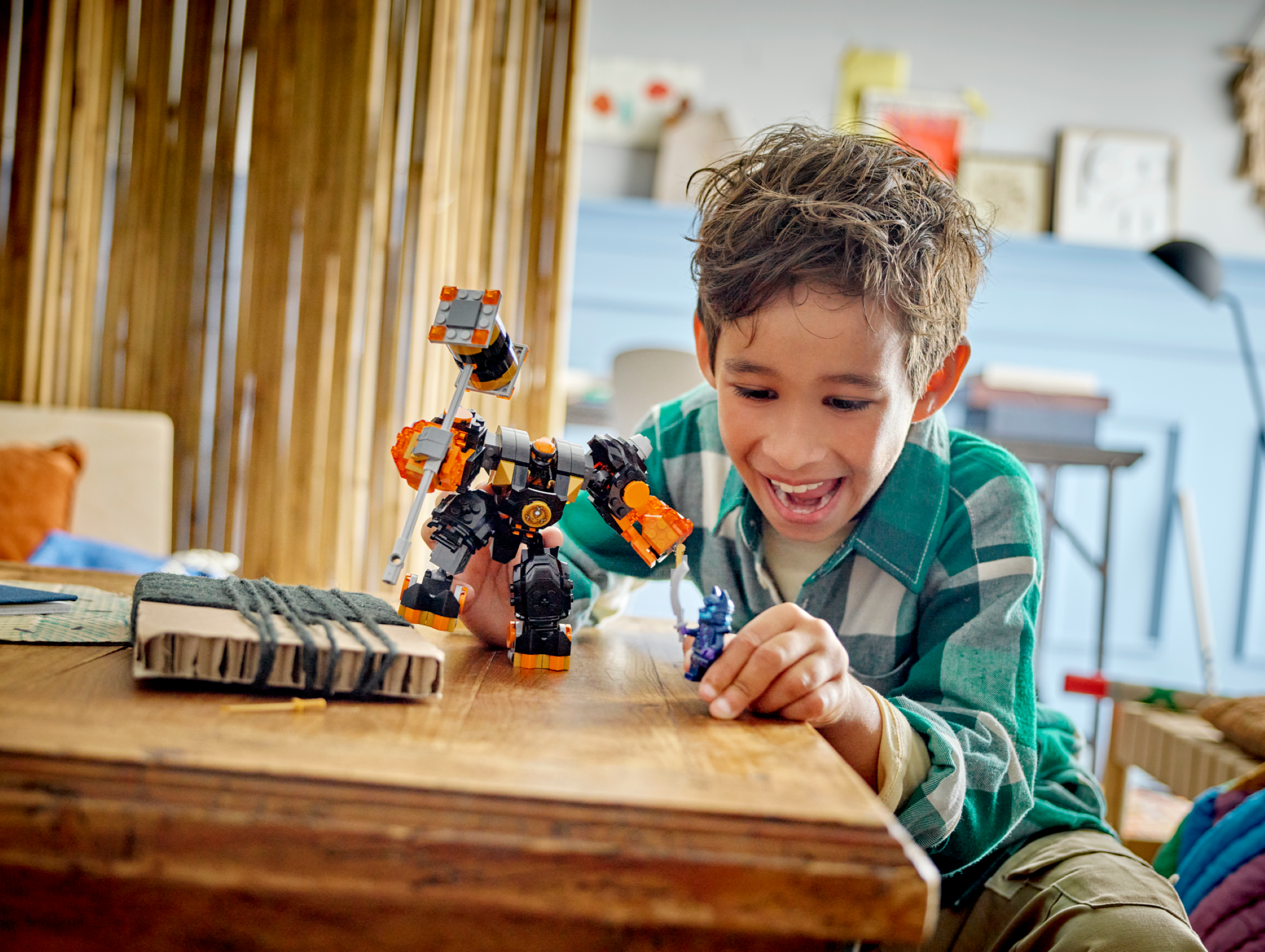 Kids aged 7 can recreate stories from season 2 of the NINJAGO® Dragons Rising TV show with the Cole’s Elemental Earth Mech (71806) adventure toy. The cool mech features posable arms and legs that can be tilted and twisted into dramatic battle stances, Cole’s heavy armor, a large hammer and a cockpit to place a minifigure inside.