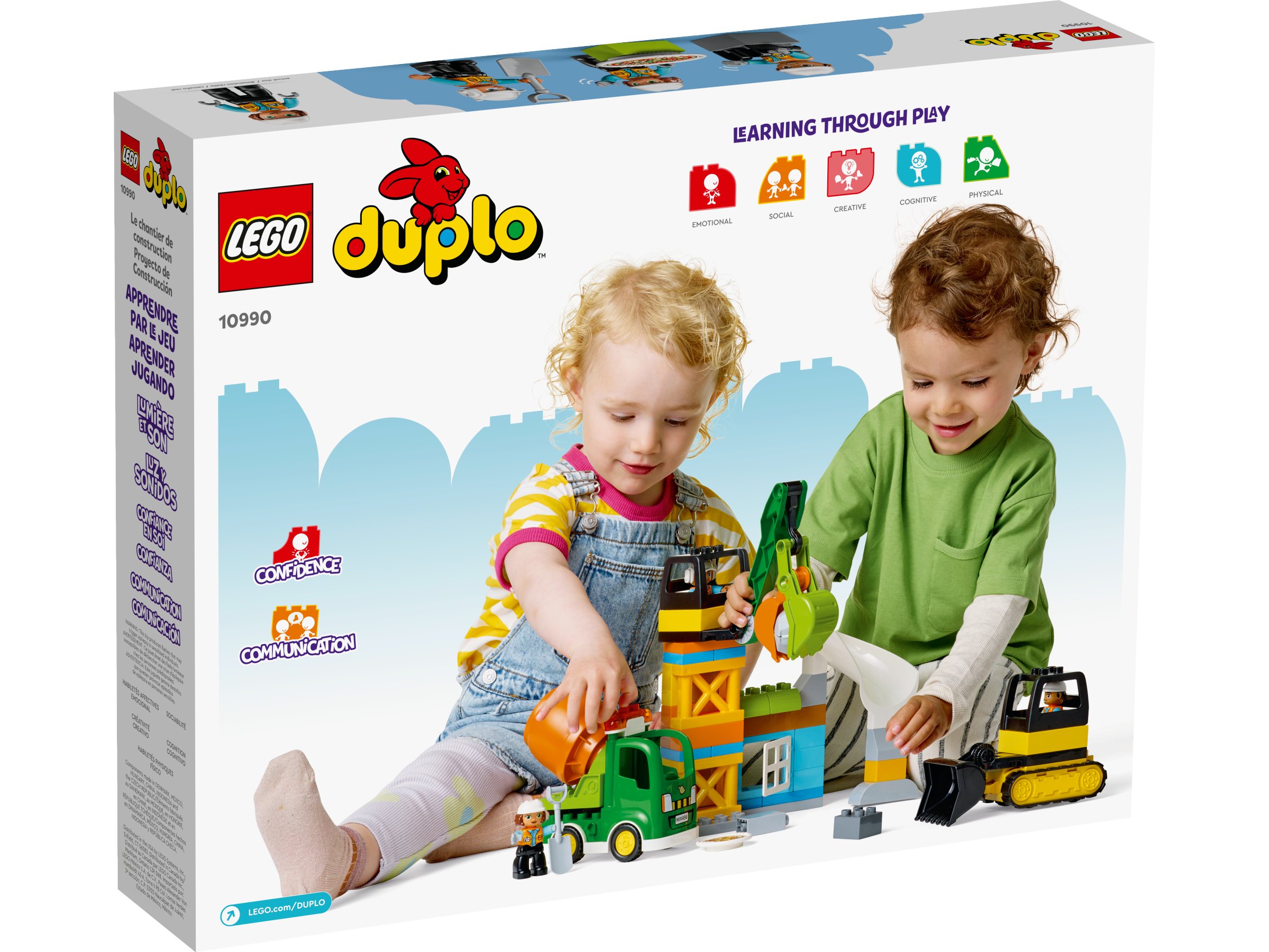 Lay the foundations for strong building skills with the LEGO® DUPLO® Town Construction Site (10990) toy. This feature-rich set is packed with details to inspire role play and help develop self-expression. Toddlers aged 2 learn about teamwork as the trio of toy construction site workers operate the 3 vehicles. The bulldozer brings the boulder and the crane grabs it and carries it to the chute where it slides down into the cement mixer. When the work is over there’s a tasty pizza to reward the construction workers for a job well done.