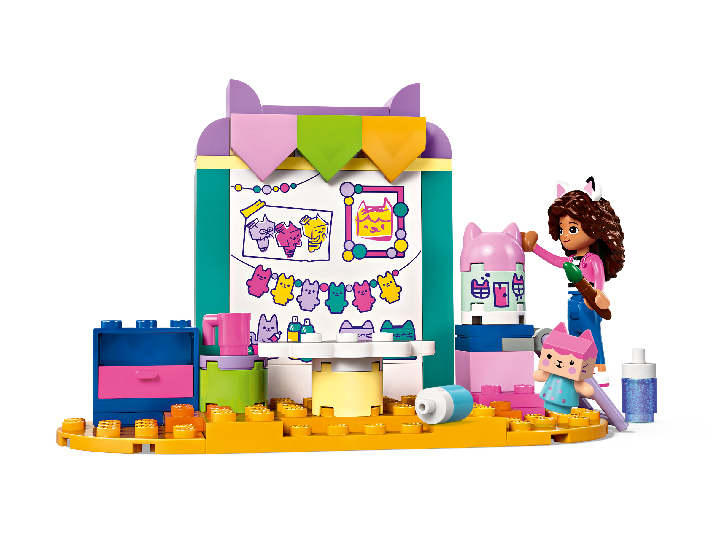 LEGO® 4 Gabby’s Dollhouse Crafting with Baby Box (10795) is a pretend-play toy for kids aged 4 and up designed to develop creative skills and inspire imaginative play. This dollhouse playset for children is bursting with bright colors, familiar characters and fun features that fans of DreamWorks Animation’s Gabby’s Dollhouse will know and love.