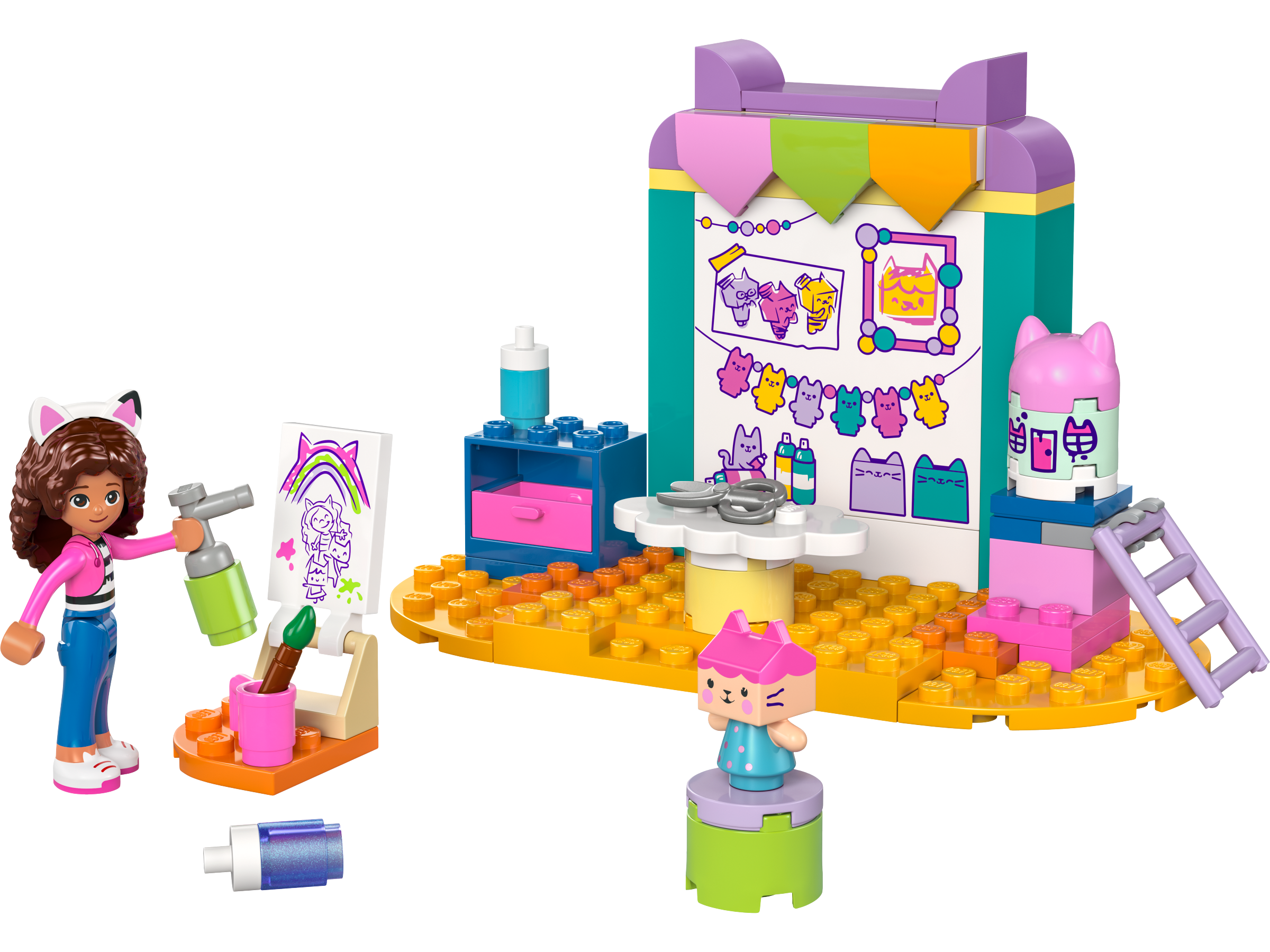 This LEGO toy for girls and boys is also an arts-and-crafts playset. The pretend-play building set includes a paintbrush, paint, scissors and a spray can, plus a Gabby mini-doll figure and a Baby Box figure. Together, Gabby and Baby Box paint a picture and build a model of Gabby’s dollhouse. There’s even a ladder to help the characters reach the top of the model. The playset has an art-covered wall with cat ears poking out at the top. Packed with engaging details to inspire creative play, the set comes with a Starter Brick to help kids get building underway. Intuitive instructions are provided in the form of a colorful picture-story guide.