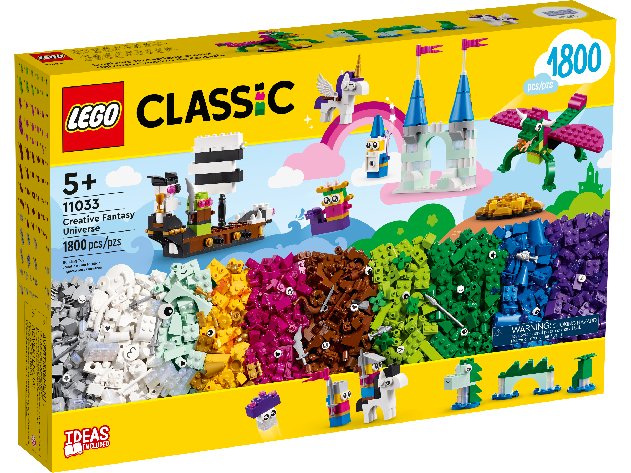 With 1,800 bricks and 3 magical realms, LEGO® Classic Creative Fantasy Universe (11033) is bursting with make-believe, medieval fun, captivating characters and mythical creatures.