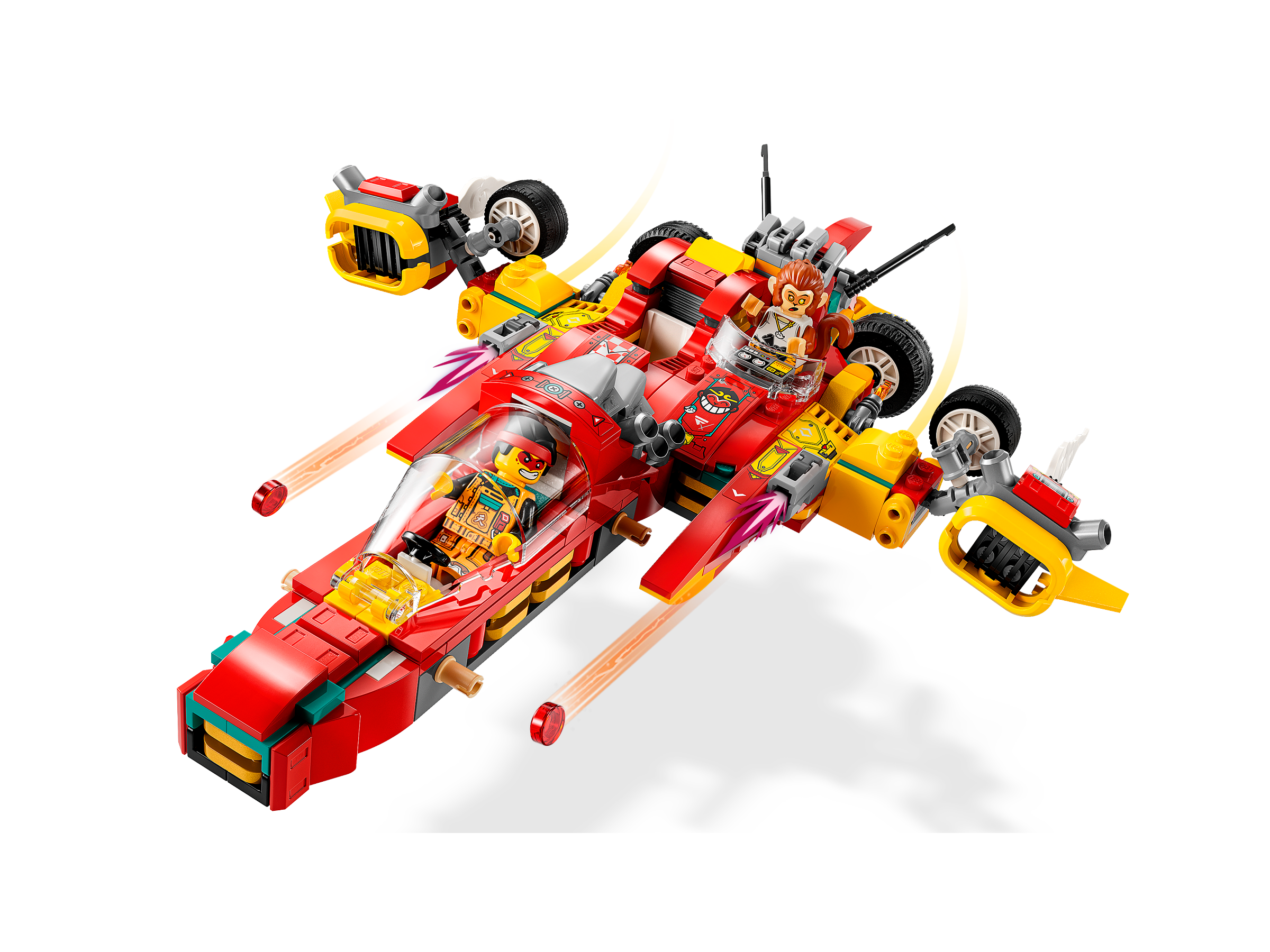 Give kids aged 6 who are passionate about toy vehicles a building bonanza with this LEGO® Monkie Kid™ Creative Vehicles (80050) set. This adventure playset lets kids create 3 custom toy vehicles – a boat with 2 stud shooters, a jet and a car – and comes with Monkie Kid and Monkey King minifigures. The creative building toys can also be combined into a super spaceship action toy or anything kids can imagine.