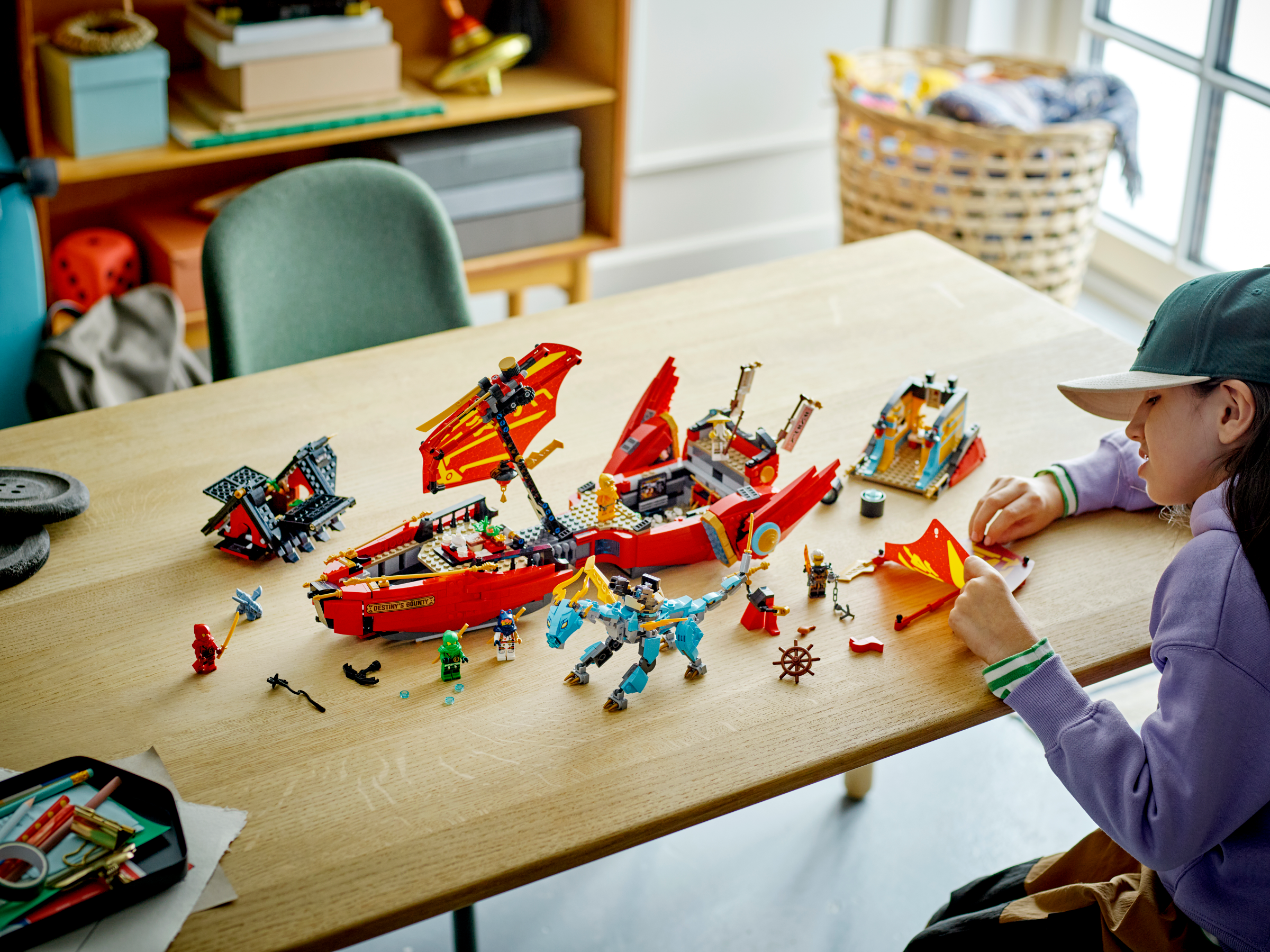 Ninja fans aged 9 will be excited to play out action with this updated Destiny’s Bounty – Race Against Time (71797) playset. The iconic vehicle is now an airship, allowing the ninja to sail above the newly merged world. It features a removable dragon nesting at the front, posable sails, stud shooters at the back and 360-degree rotating engines. The roof can also be removed to reveal a navigation room and a playroom with an arcade machine.