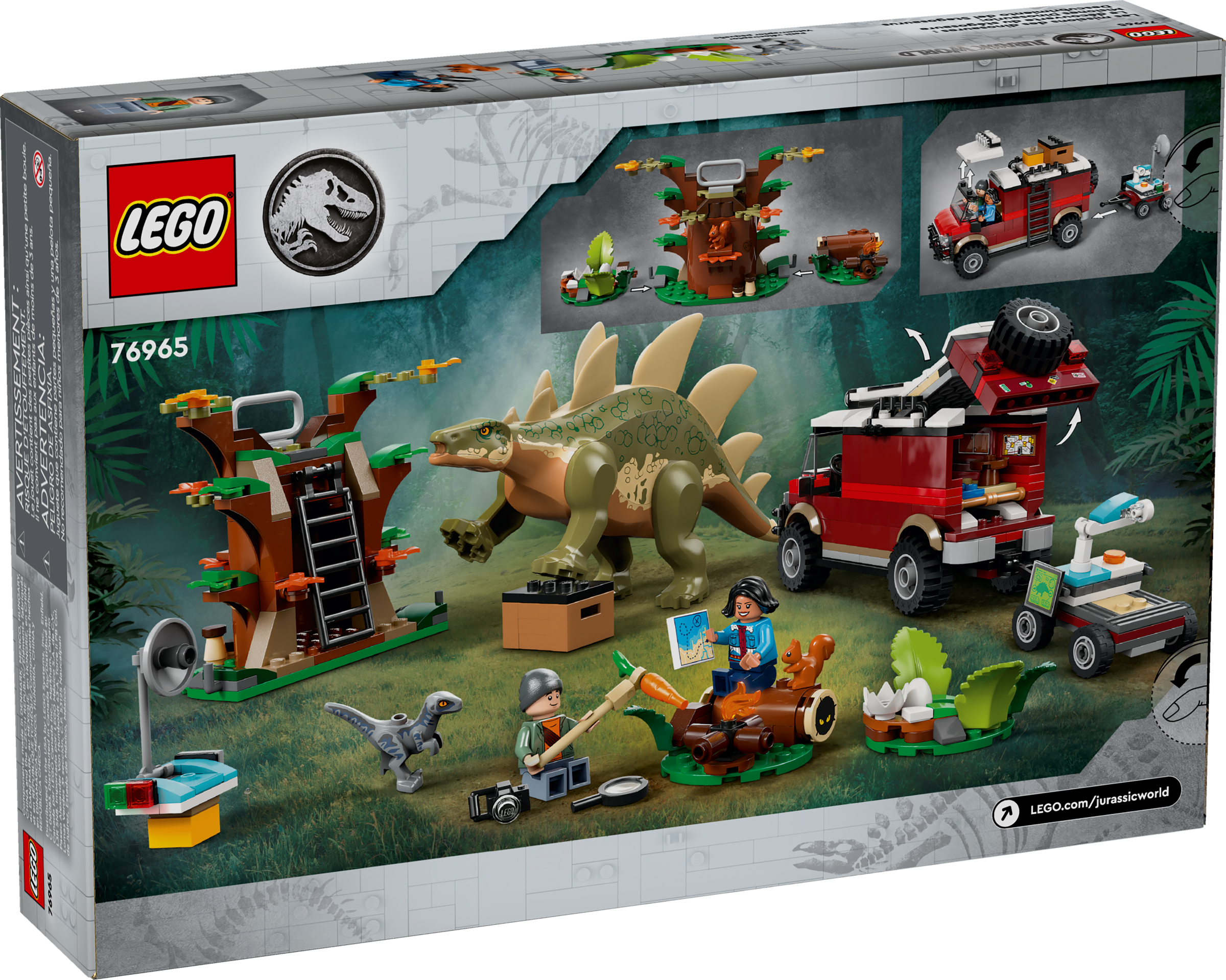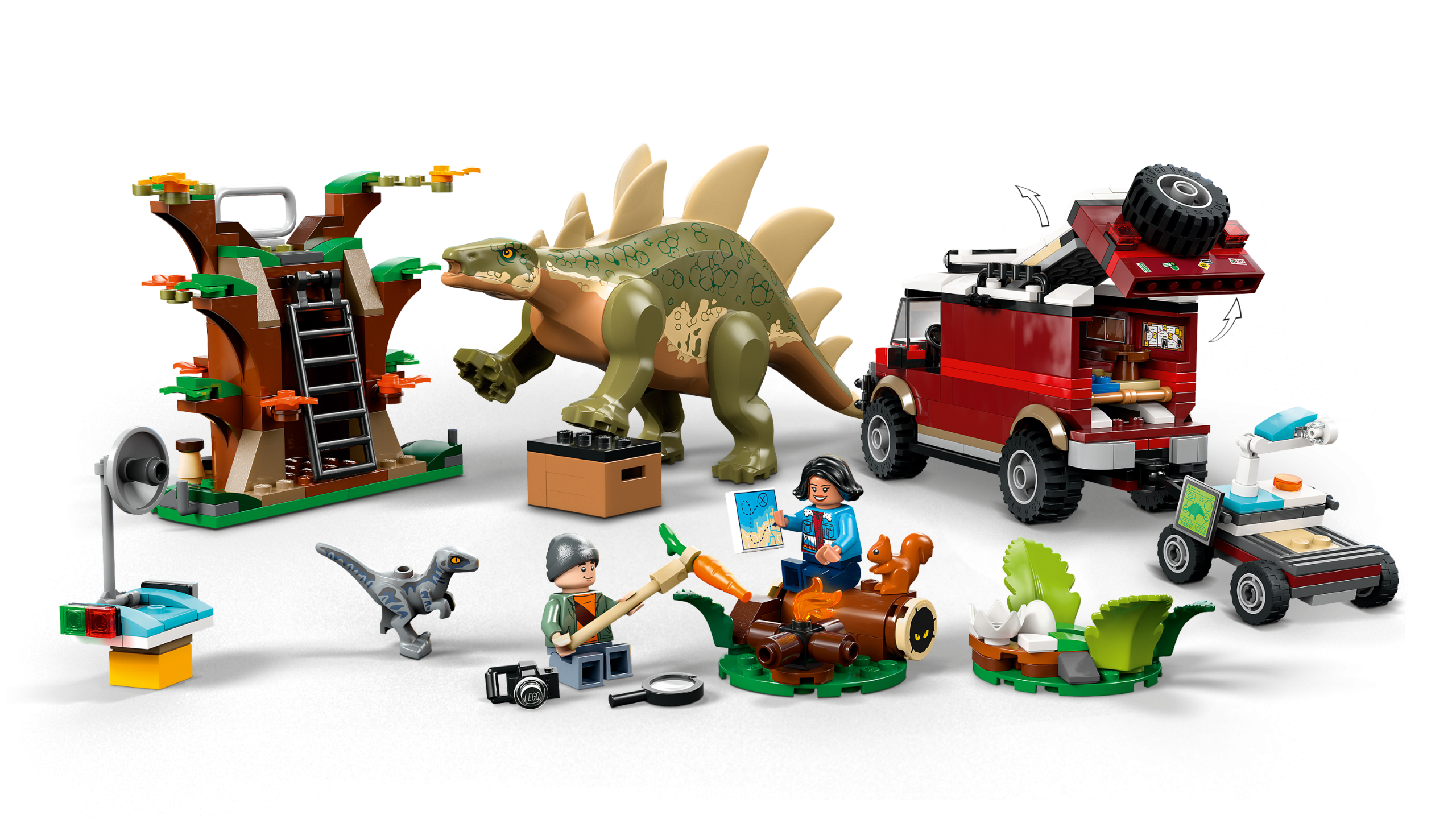 Creative dinosaur adventures await fans aged 6 in this Dinosaur Missions: Stegosaurus Discovery (76965) set, a cool present full of role-play fun. After building the LEGO® Jurassic World dinosaur playset, kids get to create endless stories using the moulded Stegosaurus toy figure with movable legs, a small Velociraptor toy figure and Ben and Sammy minifigures. There’s also a tree with a lookout and 2 detachable sections, plus an off-road vehicle with a 2-minifigure cab, removable roof, opening back, movable bed and multiple storage areas for small story starter elements. Also included is a small connectable trailer with a movable satellite dish, microscope and screens, plus much more.