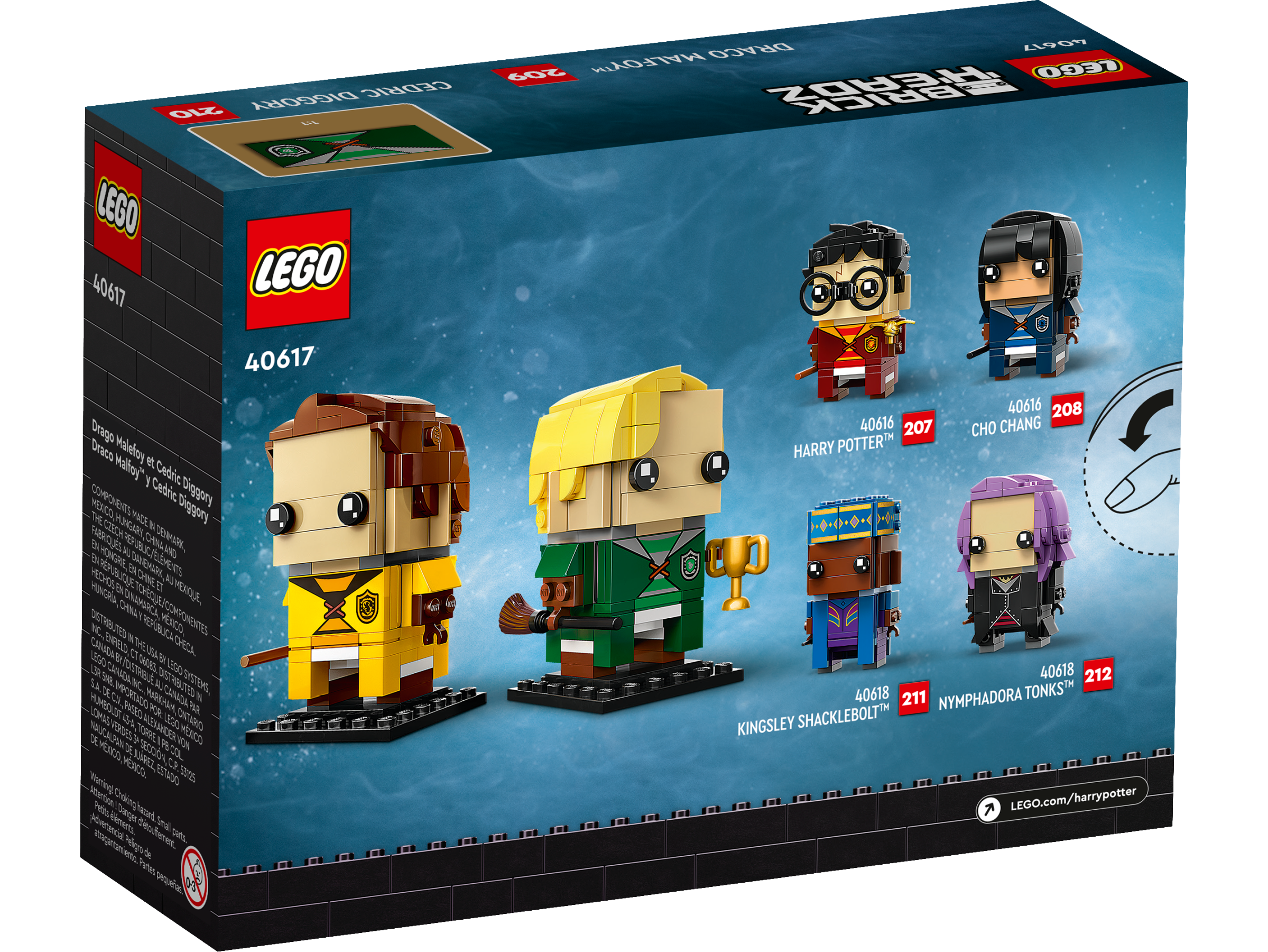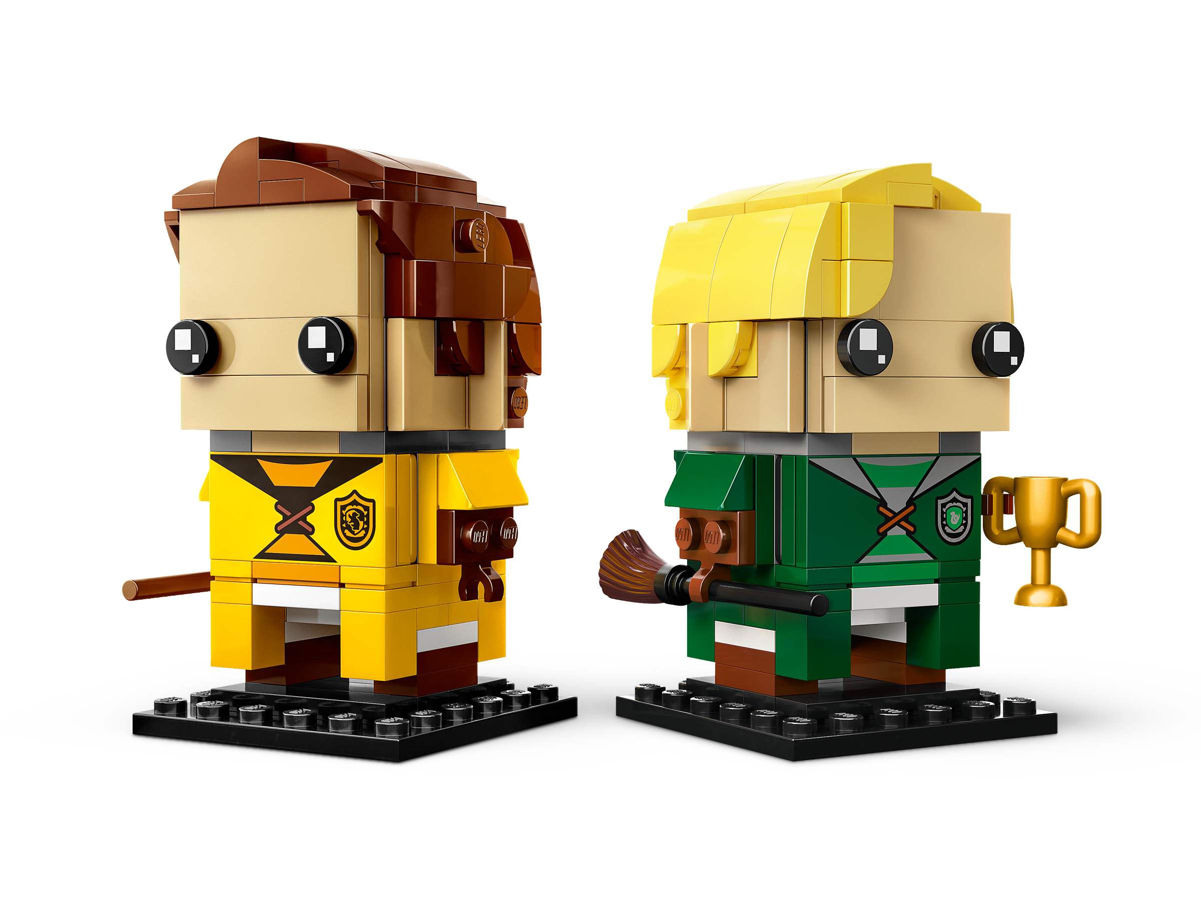 Spark memories of dramatic Quidditch™ games for Harry Potter™ fans with these LEGO® BrickHeadz™ Draco Malfoy™ & Cedric Diggory (40617) figures. The brick-built characters are dressed in the Slytherin™ and Hufflepuff™ house uniforms they wear for Quidditch games. An inspirational LEGO gift for kids aged 10 and up, the set includes a house cup and 2 broomstick accessory elements to complete a spellbinding display.