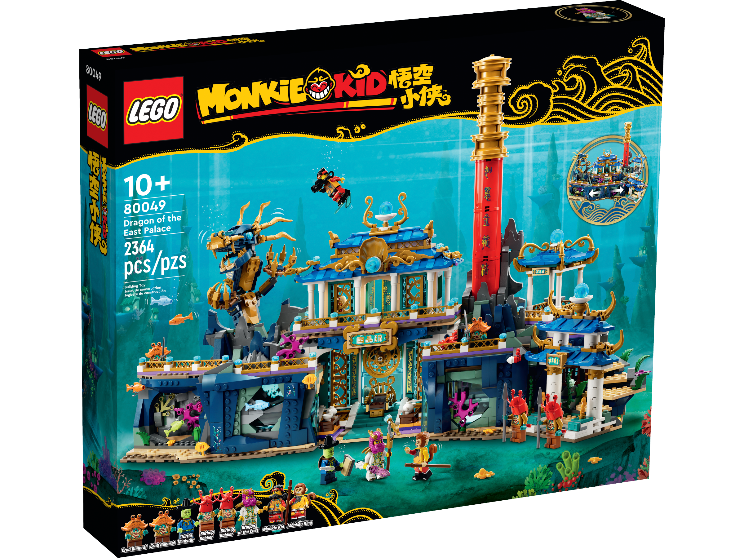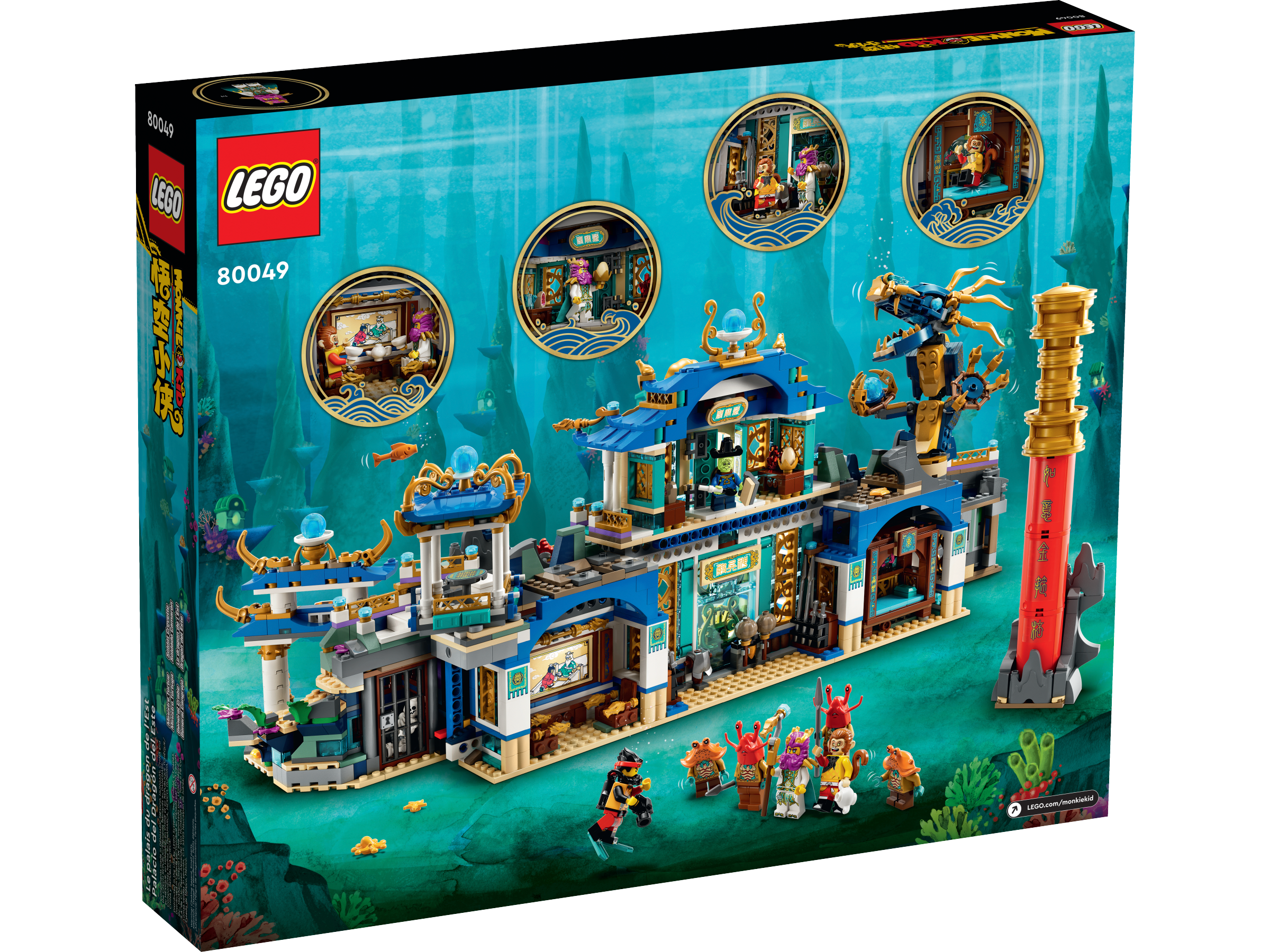 The set includes 8 action minifigures, including Monkie Kid in scuba gear, Monkey King, Dragon of the East, Turtle Minister, 2 Shrimp Soldiers and 2 Crab Generals. Kids can also enjoy an easy and intuitive building adventure with the LEGO Builder app, which lets them zoom in and rotate models in 3D, track their progress and save sets while they build.