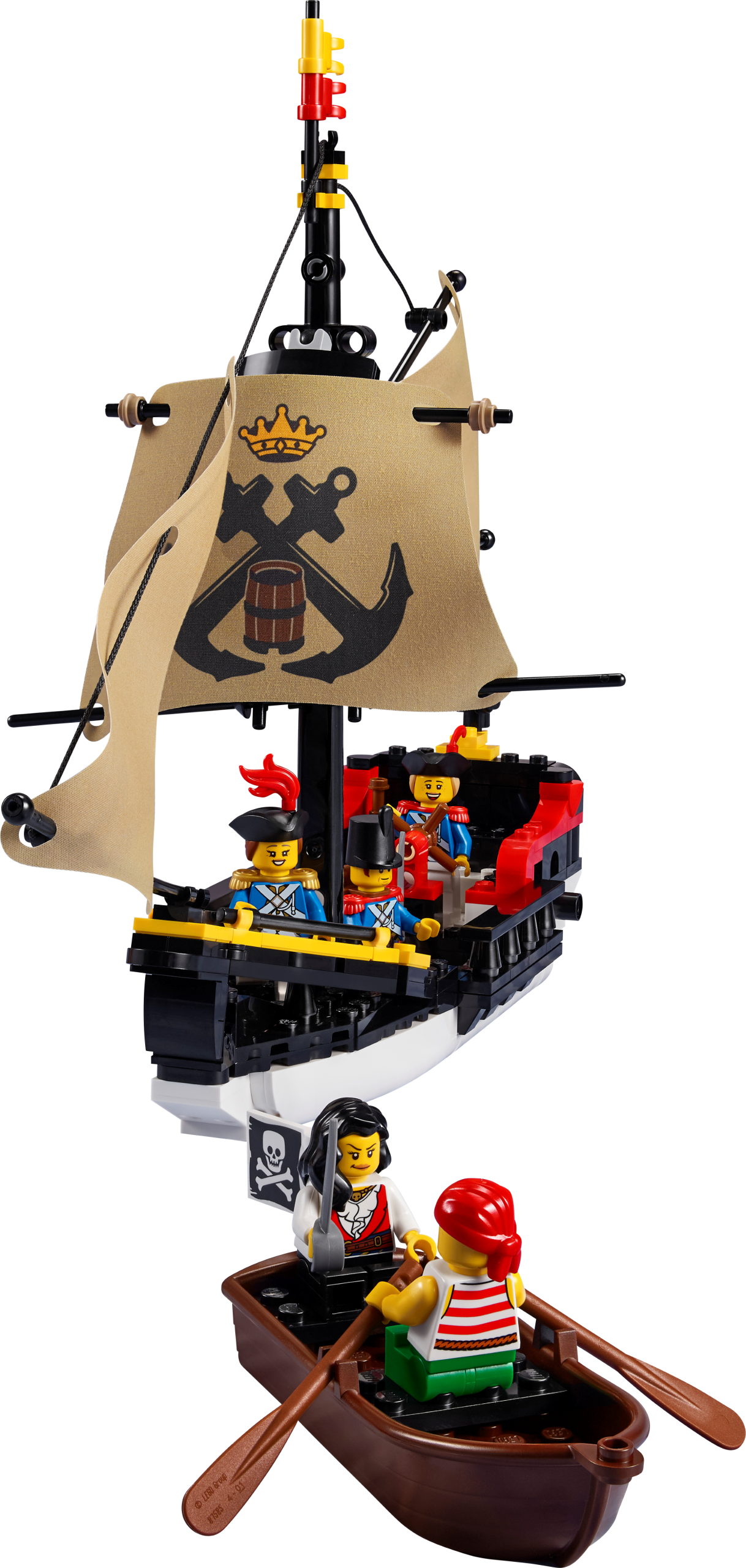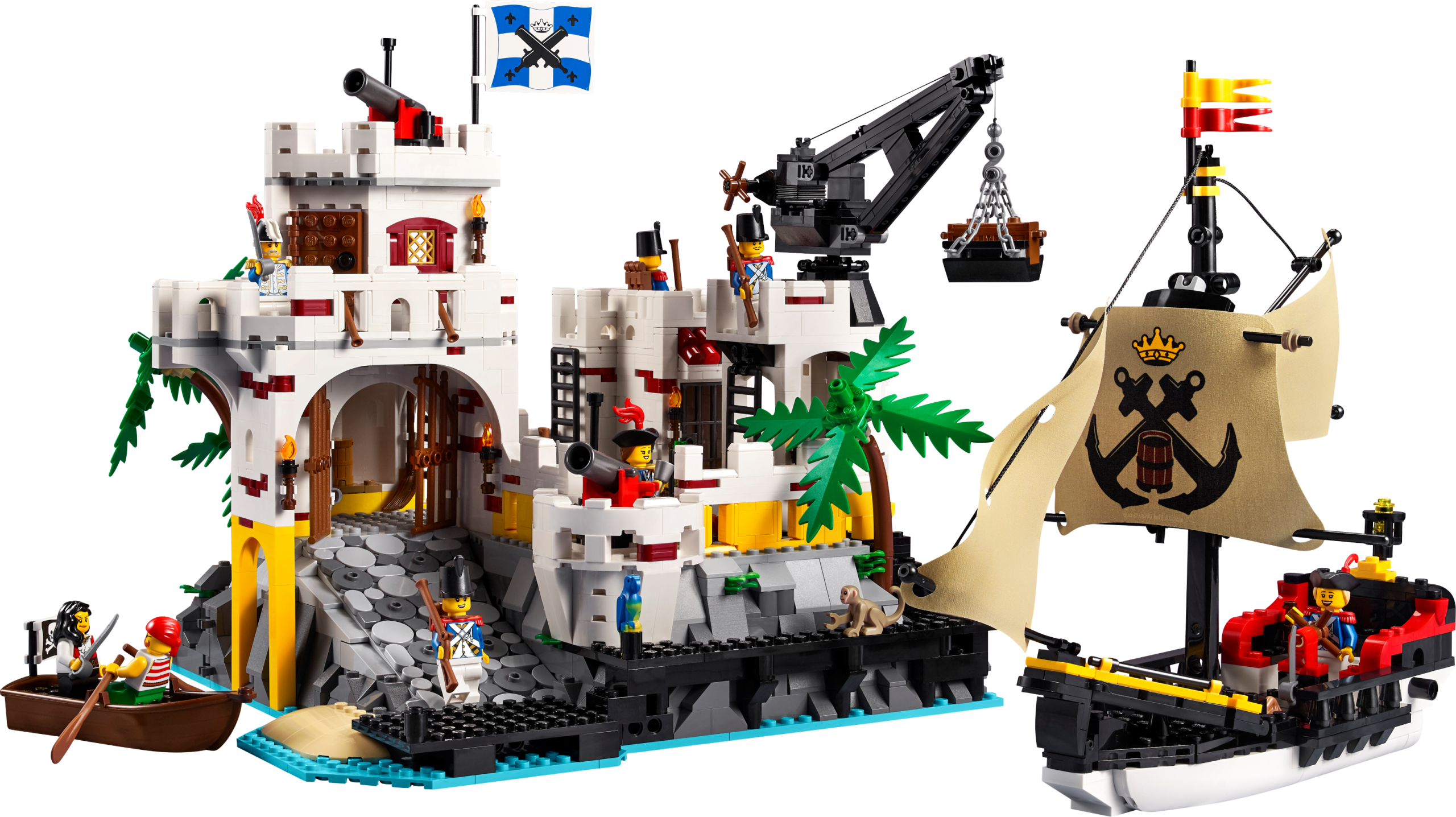 Uncover hidden treasures as you craft the iconic fortress brick by brick, including the admiral’s office, a pirate prison and an array of secret spaces. Combine the modular room sections to create different configurations and stage epic battle scenes with working cannons, 8 minifigures and a cool pirate ship with printed fabric sails.