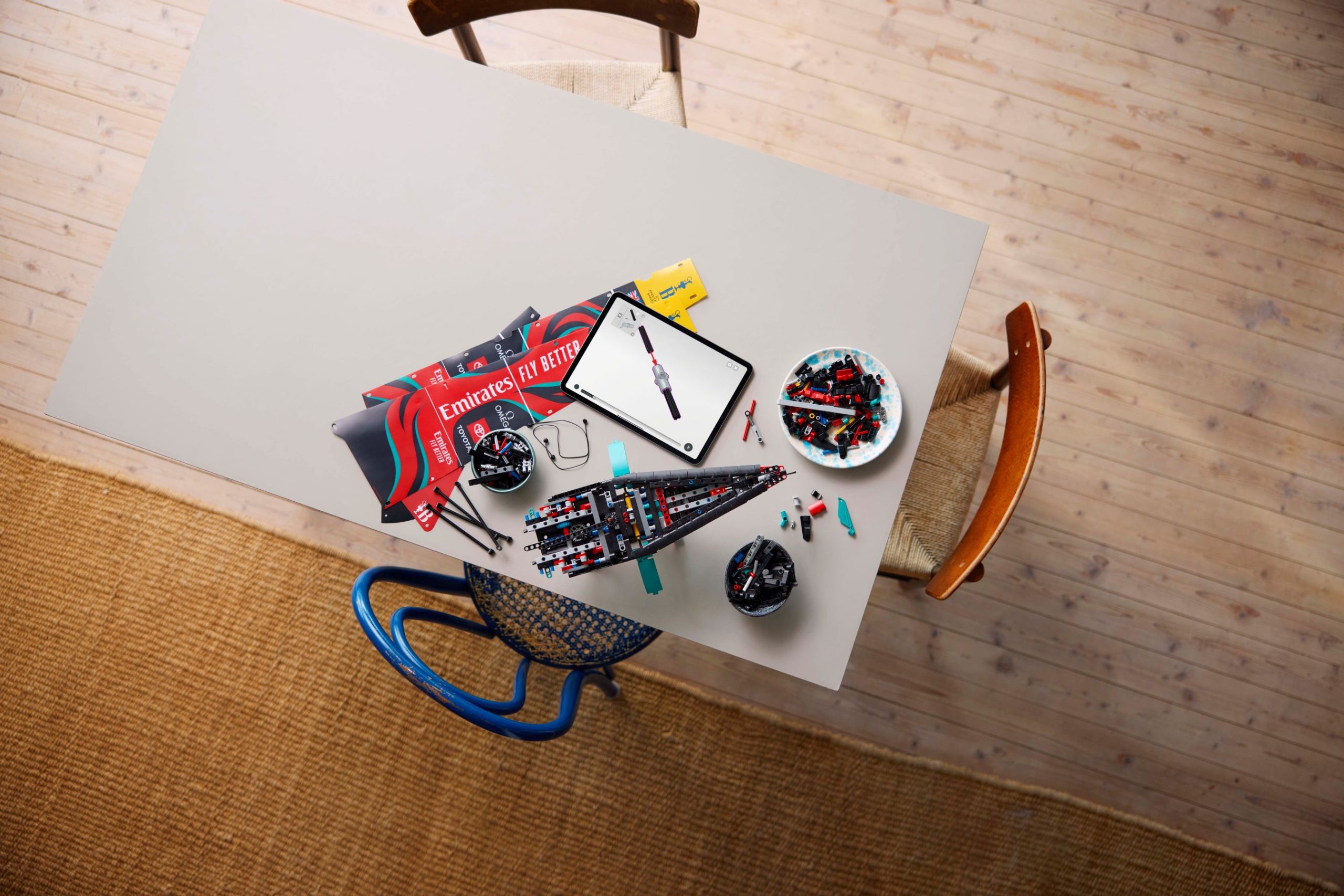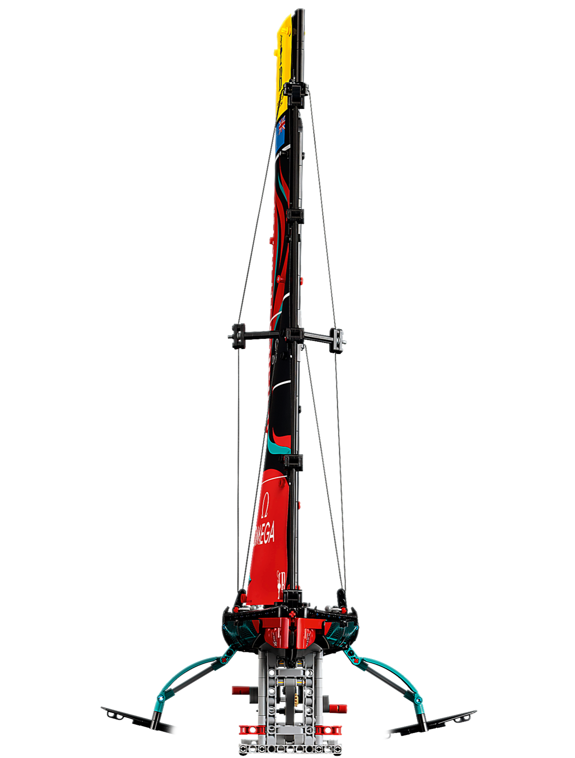Assemble the yacht and attach the 2 skin sails to create the authentic 3D sail shape. Test out the pneumatic function to pump up the hydrofoil cant arms – just like the team would on the real-life yacht. Admire the all-important foil wings, which provide the full-sized yacht with the stability, lift and speed needed to race at the highest levels. Try out the mainsheet controls and jib sheet then check out the rotating mast, which is supported by the rigging.