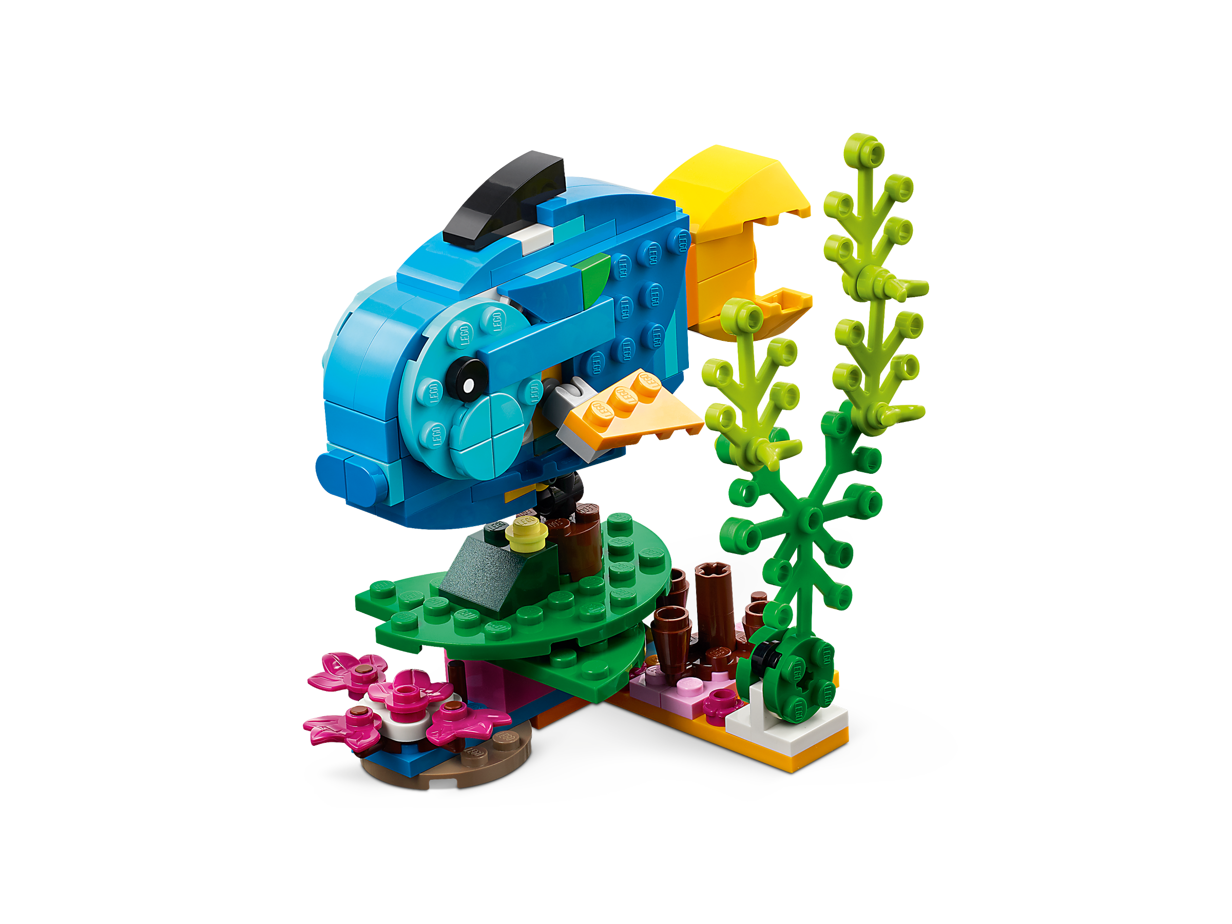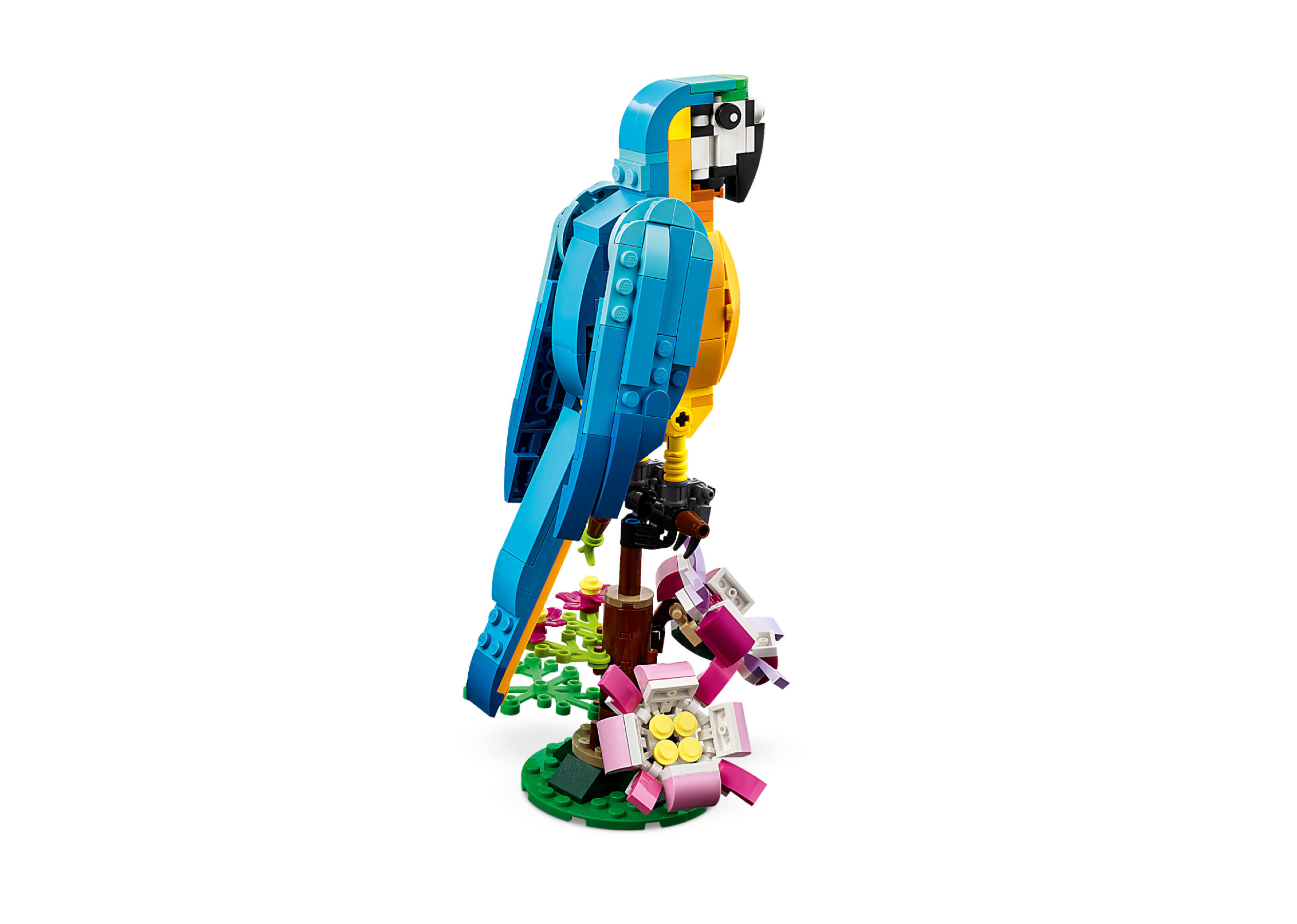 Little builders and passionate animal fans aged 7 can travel deep into the rainforest for action-packed stories with this LEGO® Creator 3in1 Exotic Parrot (31136) building set. It features a colorful parrot that can fully rotate its body while sitting on a tree branch and move its wings and tail.