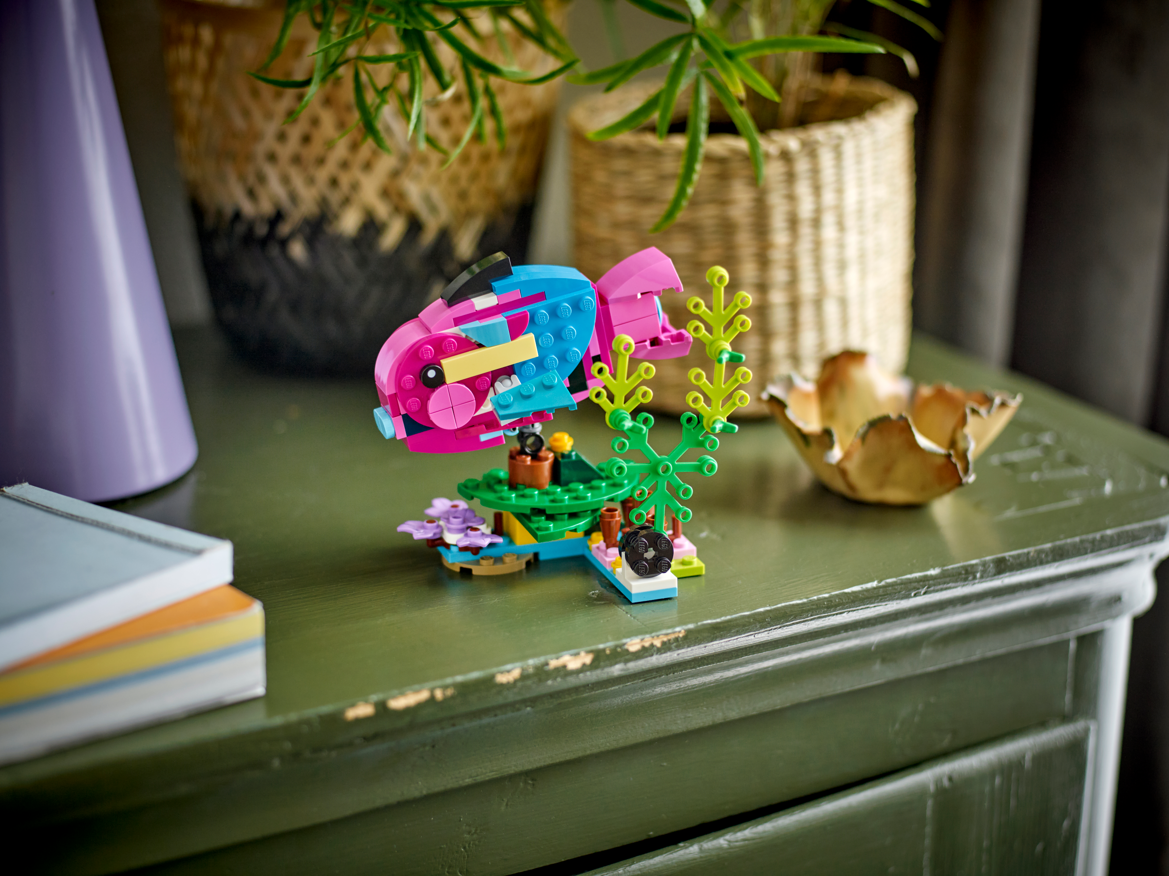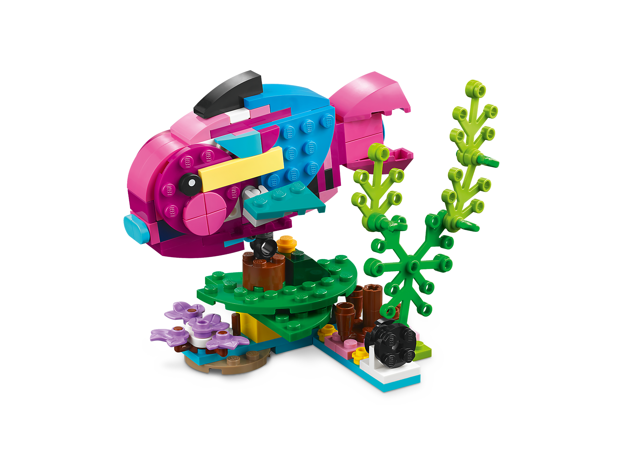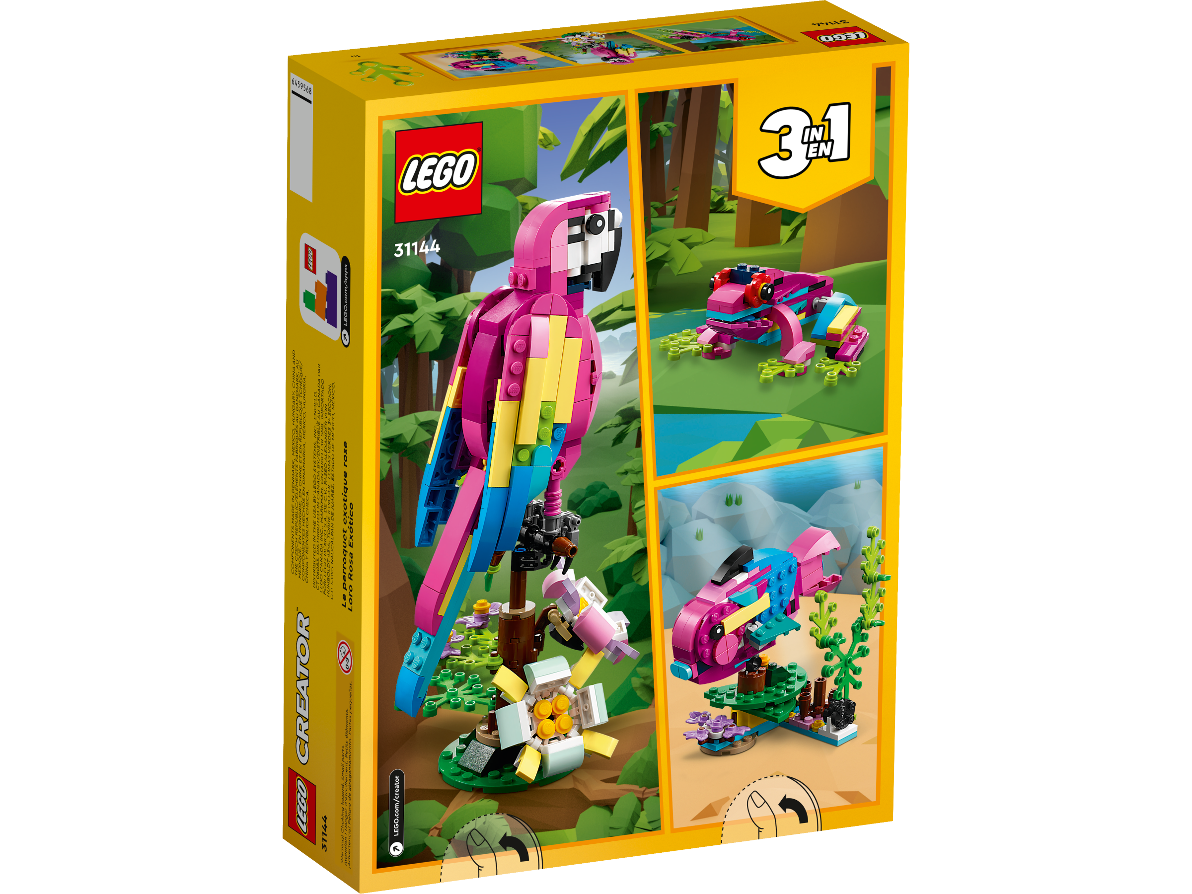 Little builders and passionate animal fans aged 7 can travel deep into the rainforest for action-packed stories with this LEGO® Creator 3in1 Exotic Pink Parrot (31144) building set. It features a vivid pink and blue parrot that can fully rotate its body while sitting on a tree branch and move its wings and tail.