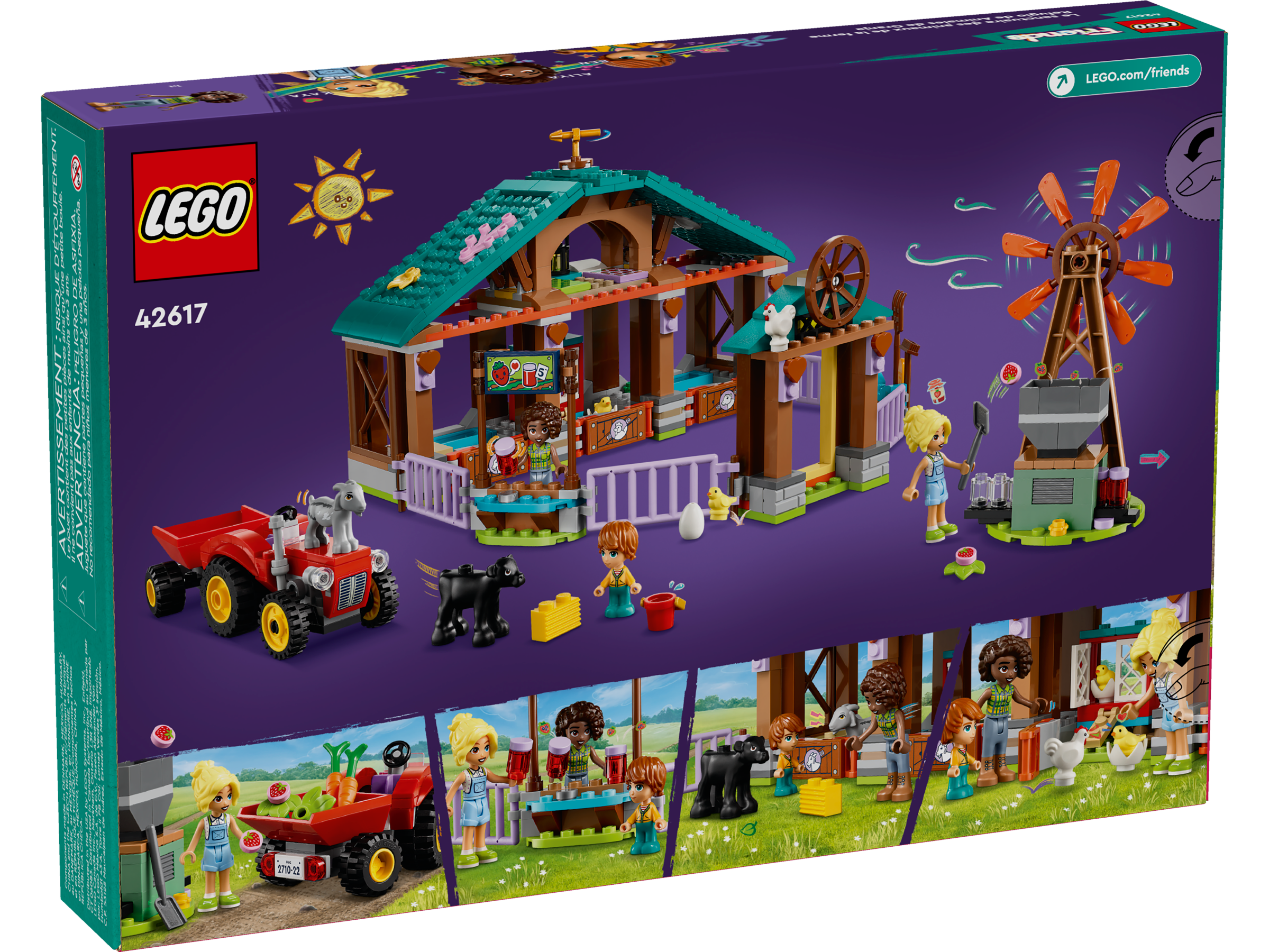 Creative play is lots of fun with this LEGO® Friends Farm Animal Sanctuary (42617) toy animal care set for girls, boys and kids aged 6 . Kids can create their own stories as they harvest vegetables, make strawberry jam and care for the animals. The set comes with 3 figures to spark friendship play, plus a goat, a cow, a chicken and 2 chicks. The farm building opens to reveal separate areas for the animal figures.