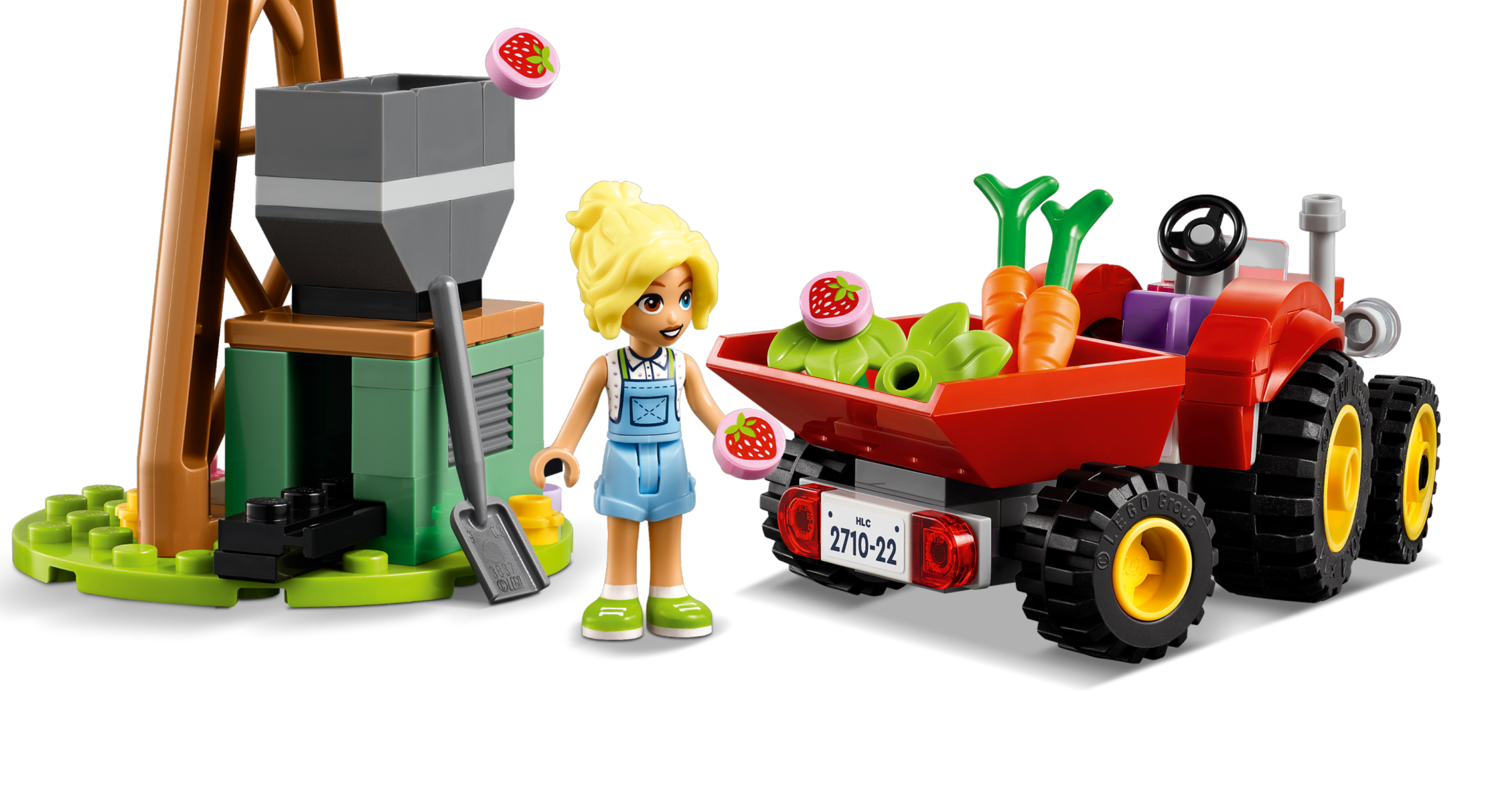 This set includes a buildable toy farm, tractor and windmill. The windmill includes a fun feature where the empty jars go into the machine and come out as jam-filled jars. Accessories include carrots, strawberries, jars, a pitchfork, brush, shovel, eggs, haystack and a lantern. The building kit makes a great gift or special-occasion idea for kids who love role-play toys.