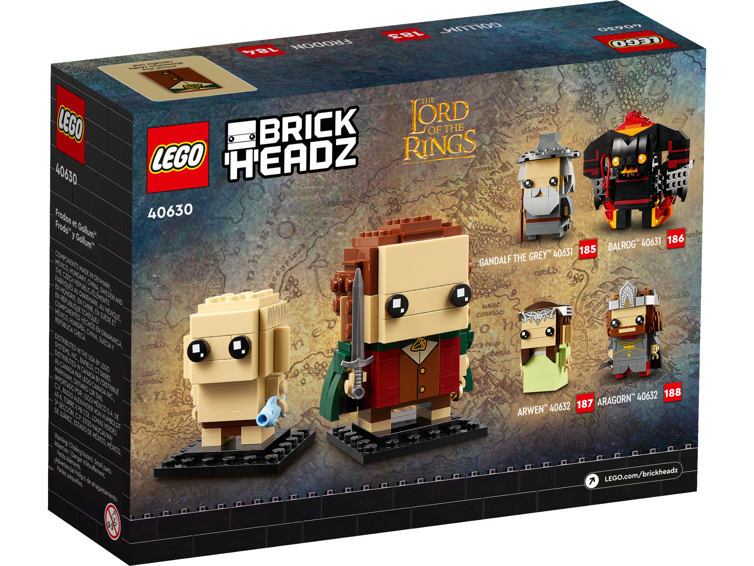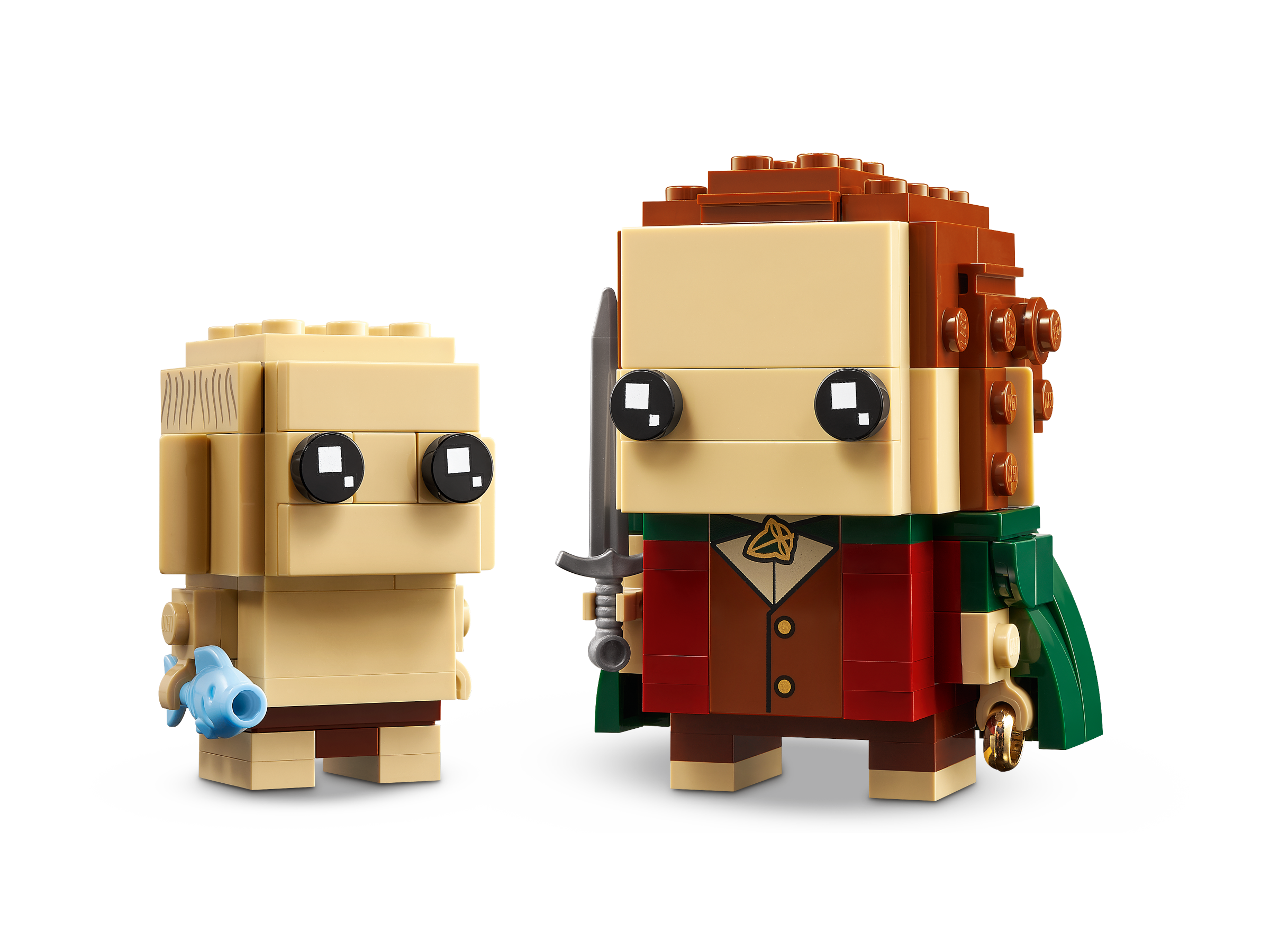 Fans of The Lord of the Rings™ saga will love this collectible LEGO® BrickHeadz™ Frodo™ & Gollum™ set (40630). Frodo comes as a full-size LEGO BrickHeadz figure wearing a brick-built cloak and holding the ring and a sword. The Gollum figure is smaller to reflect the relative sizes of the two characters, and he is holding a fish – his favorite food. These buildable display models make a great gift for The Lord of the Rings fans, LEGO builders and LEGO BrickHeadz collectors.