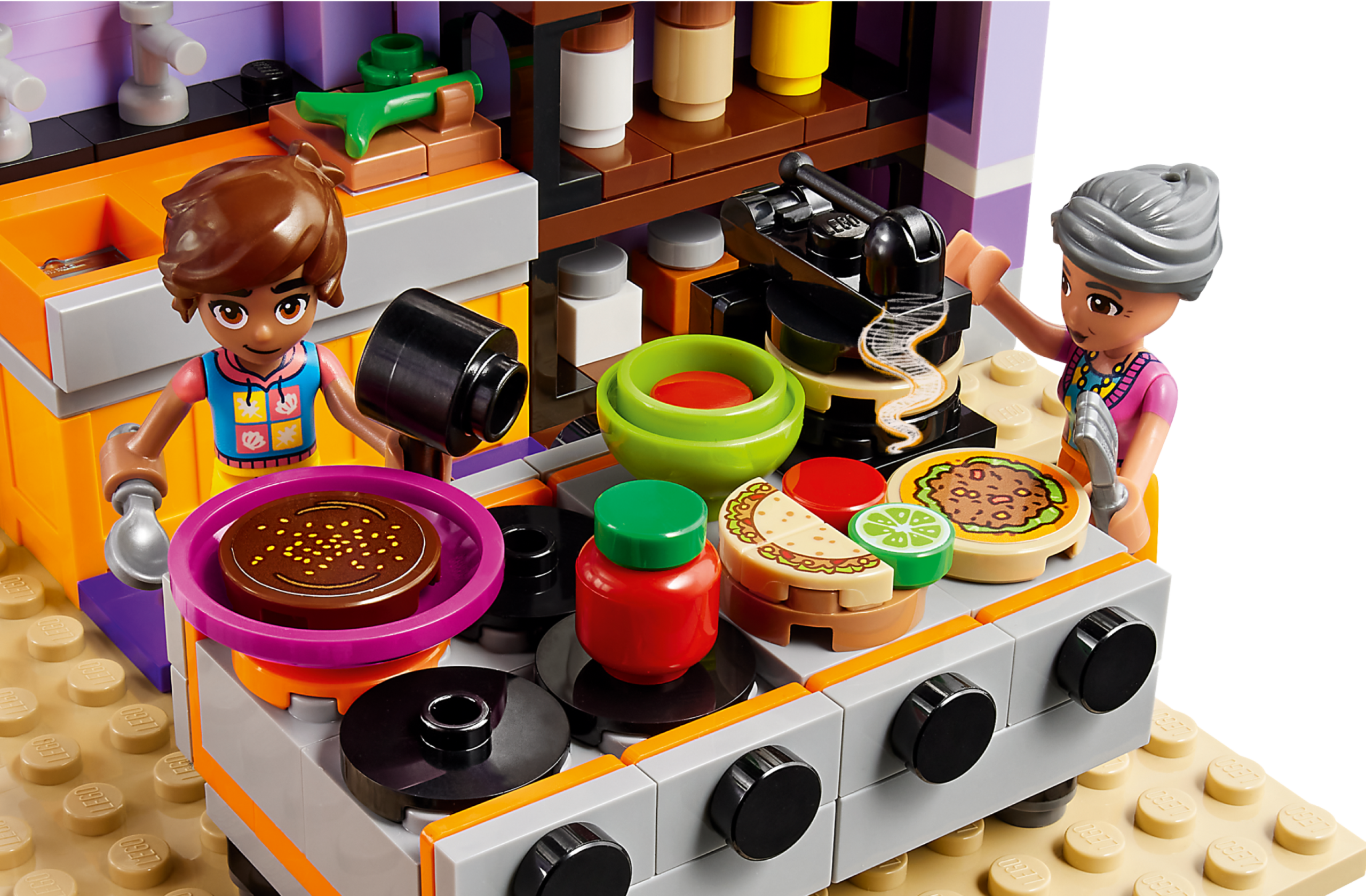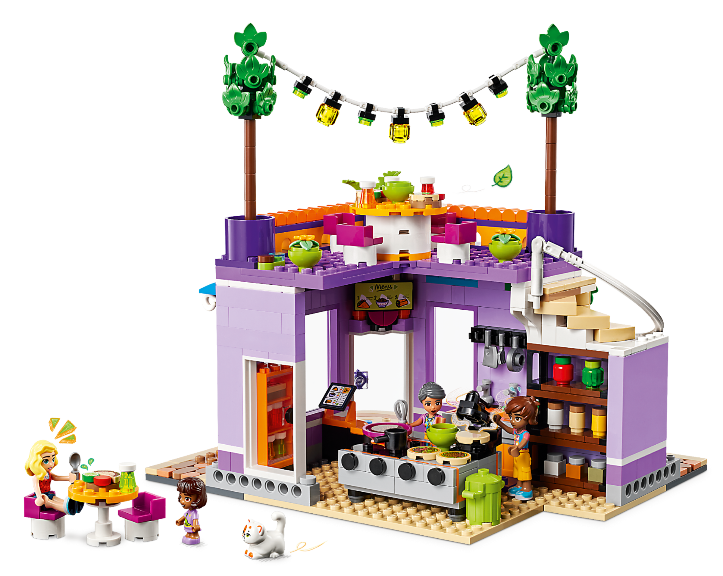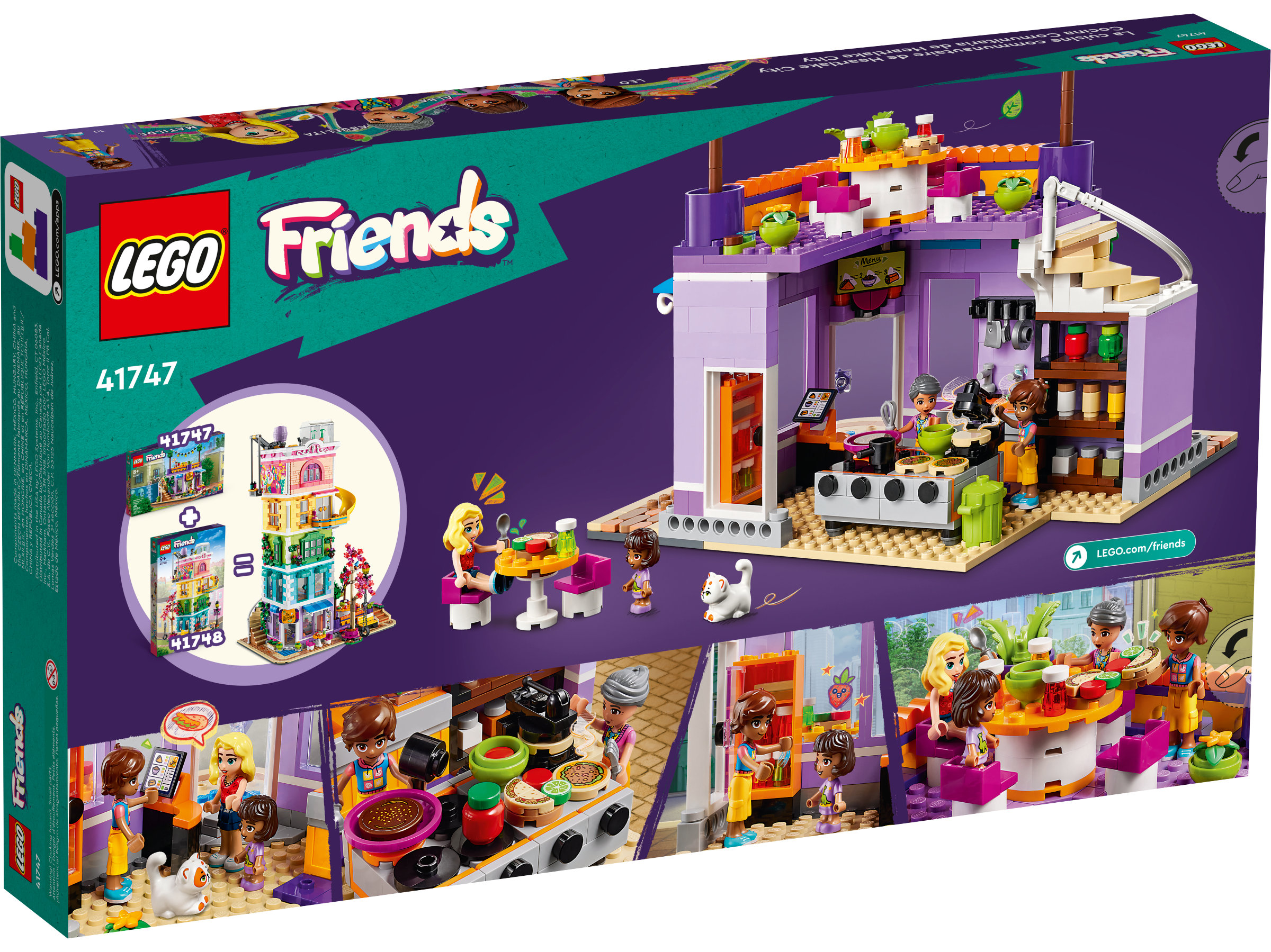 Little chefs aged 8 can dream up delicious adventures at the LEGO® Friends Heartlake City Community Kitchen (41747). This building toy for kids shows the relationship between Leo, his sister Alba and their grandmother, who runs the kitchen. Leo loves to learn new cooking techniques and the set comes with lots of ingredients and accessories so kids can explore new things too. There’s a pantry, toy refrigerator, sink and a kitchen range with pans and a tortilla press. Outside, there’s seating and a roof terrace. This set combines with the LEGO Friends Heartlake City Community Center 41748 (sold separately) for even more community-based fun.