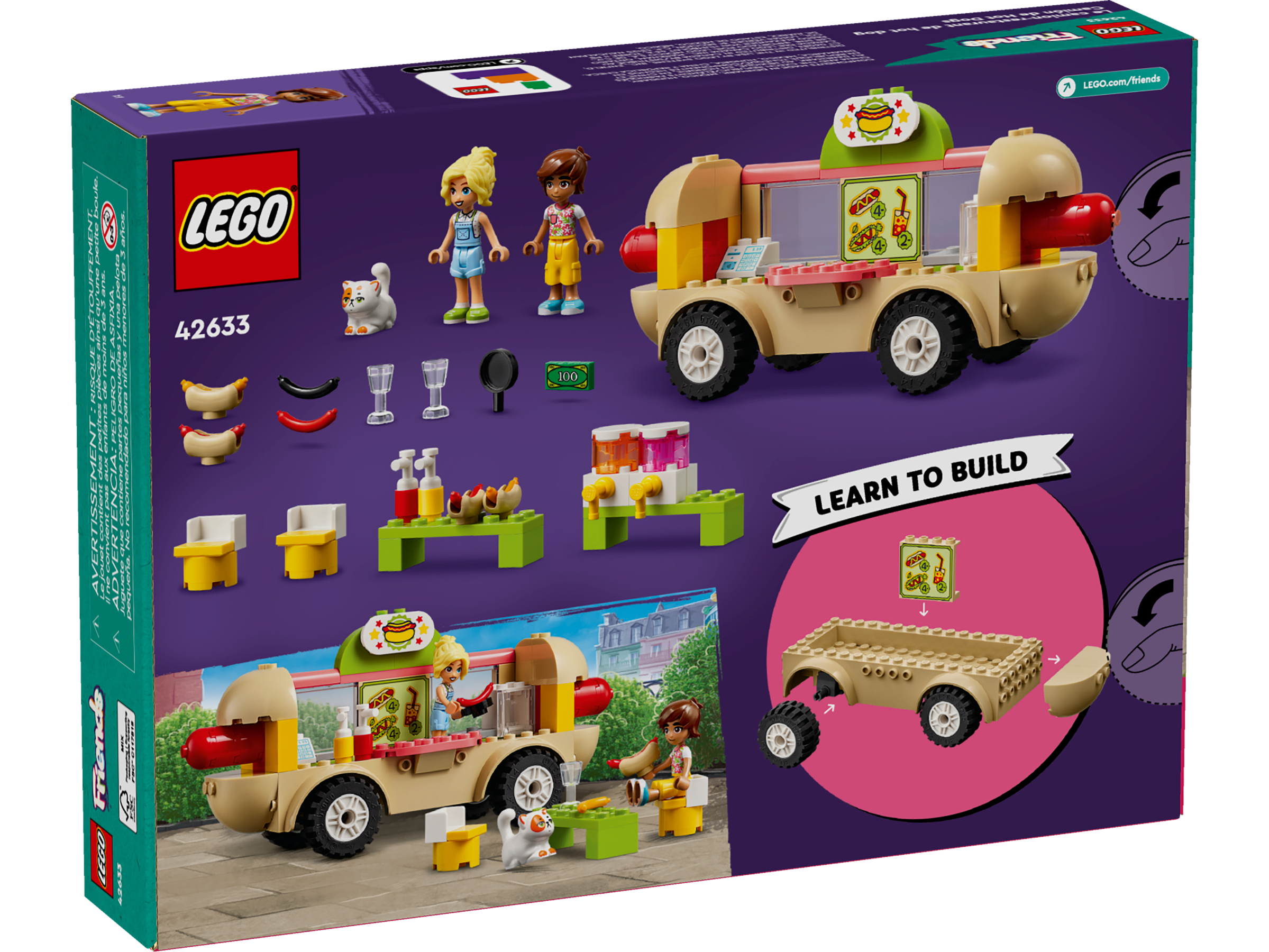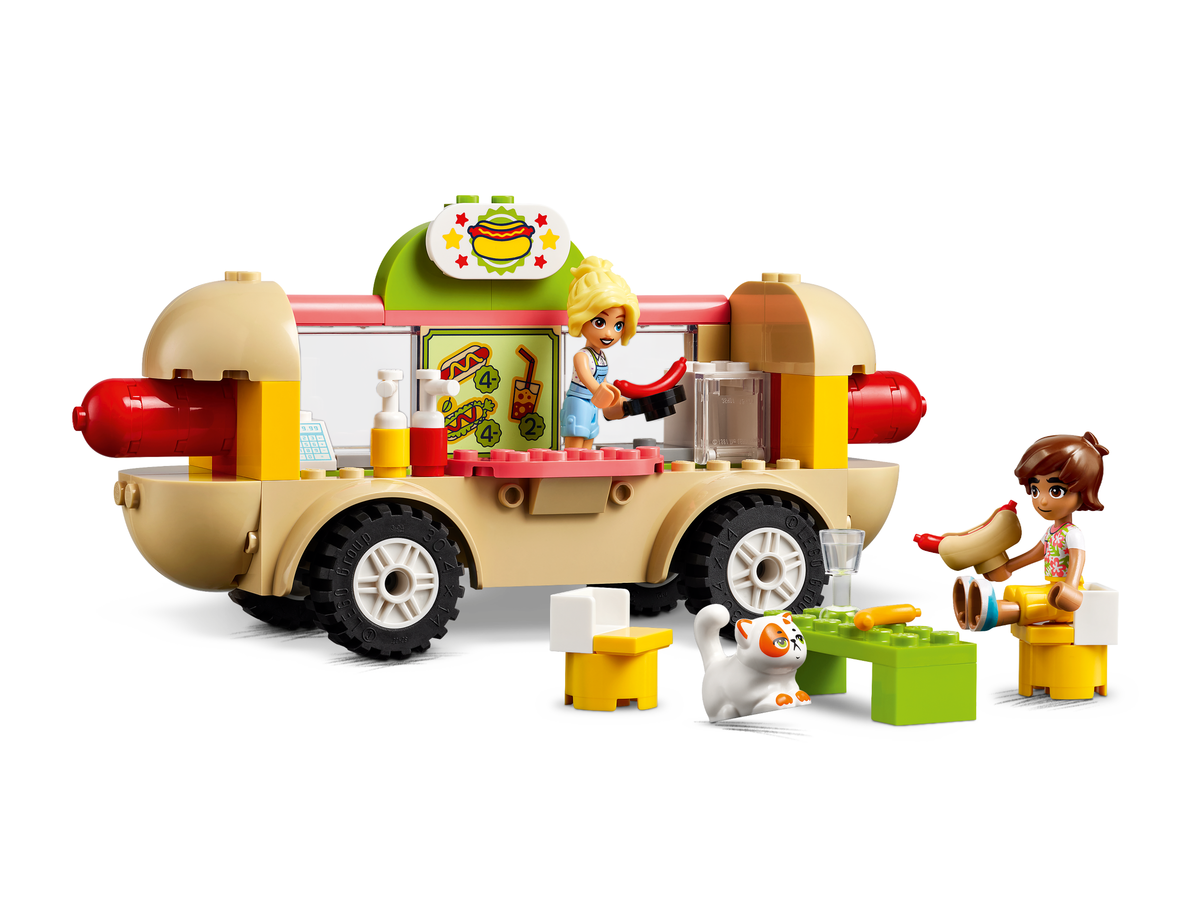Kids aged 4 and over who love pretend-play food can create lots of different stories with this LEGO® Friends Hot Dog Food Truck (42633) toy. This set helps kids learn to build and it comes with a buildable truck and 2 mini-dolls, plus a cat character and food accessories to inspire role play.