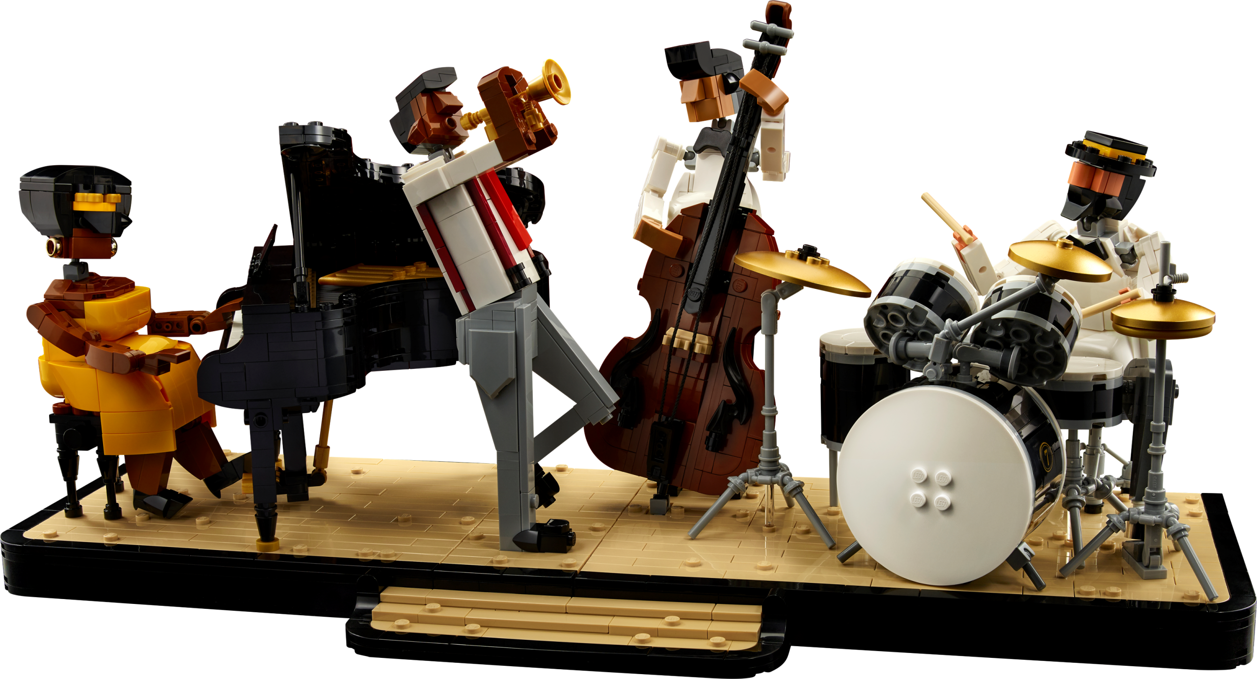 Get into your groove and compose a jazz masterpiece. Create your own LEGO® Ideas Jazz Quartet (21334) featuring brick-built figures of a pianist, bassist, trumpeter and drummer in dynamic poses, plus highly detailed buildable models of their instruments – a grand piano, double bass, trumpet and drum kit.