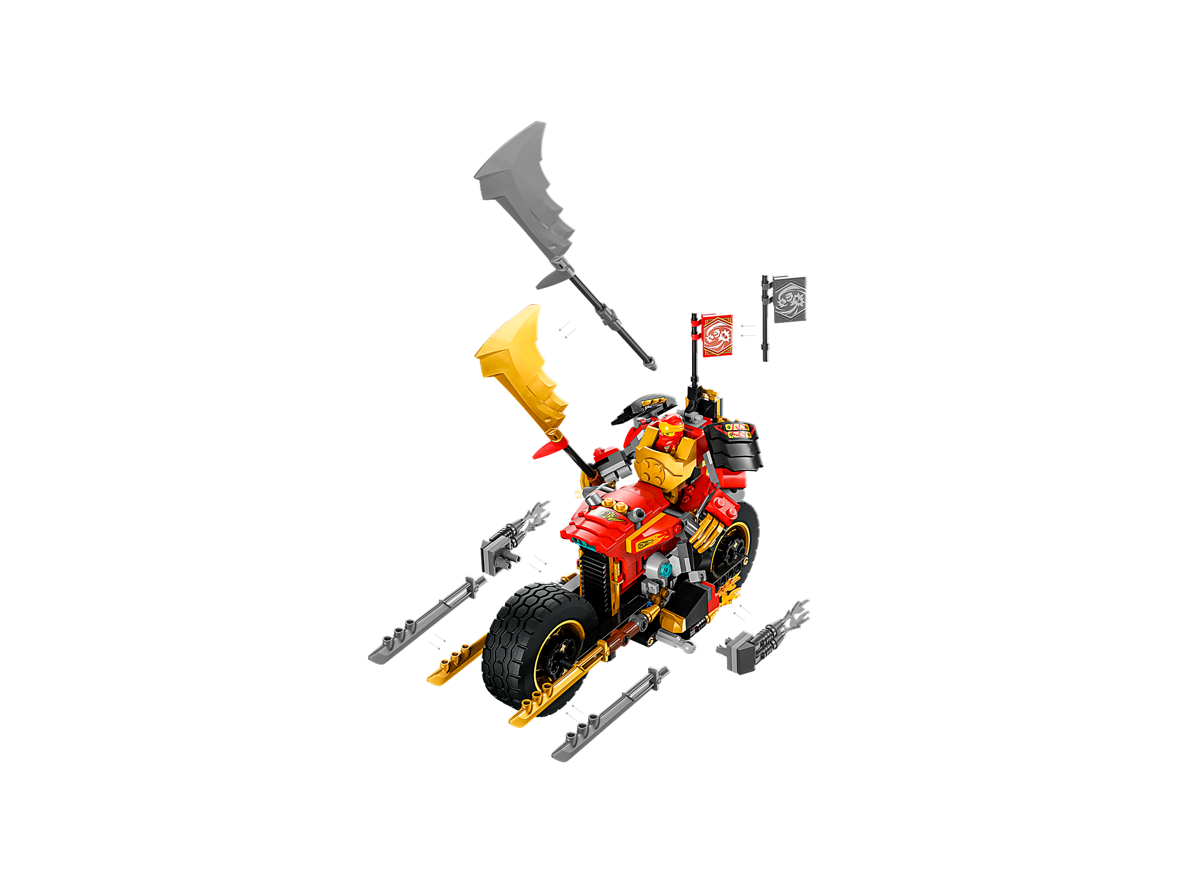 This building set includes 4 minifigures: Kai and Nya, both armed with swords, Bone King, with his own sword, and Bone Hunter, with a bone mattock and a sword. Forsucceeding in their challenge, kids are rewarded with a collectible Focus banner that can be displayed on the ninja motorbike.