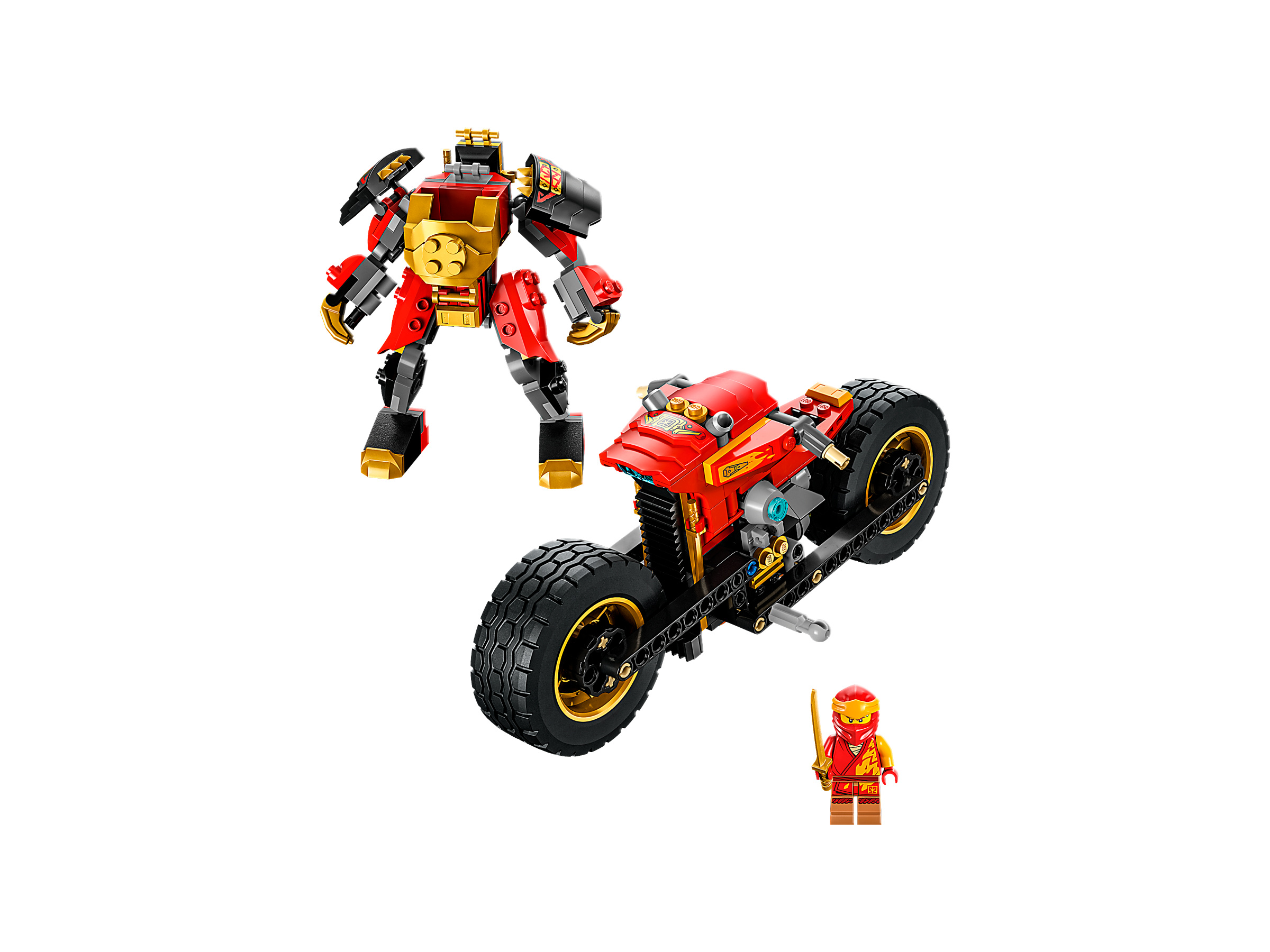Little builders aged 7 and fans of cool vehicles can stage their own good vs. evil fantasy showdowns with this action-packed Kai’s Mech Rider EVO (71783) playset. It features a posable mech and a cool motorbike, which can be upgraded into a bigger model by adding golden side panels and a large golden blade.