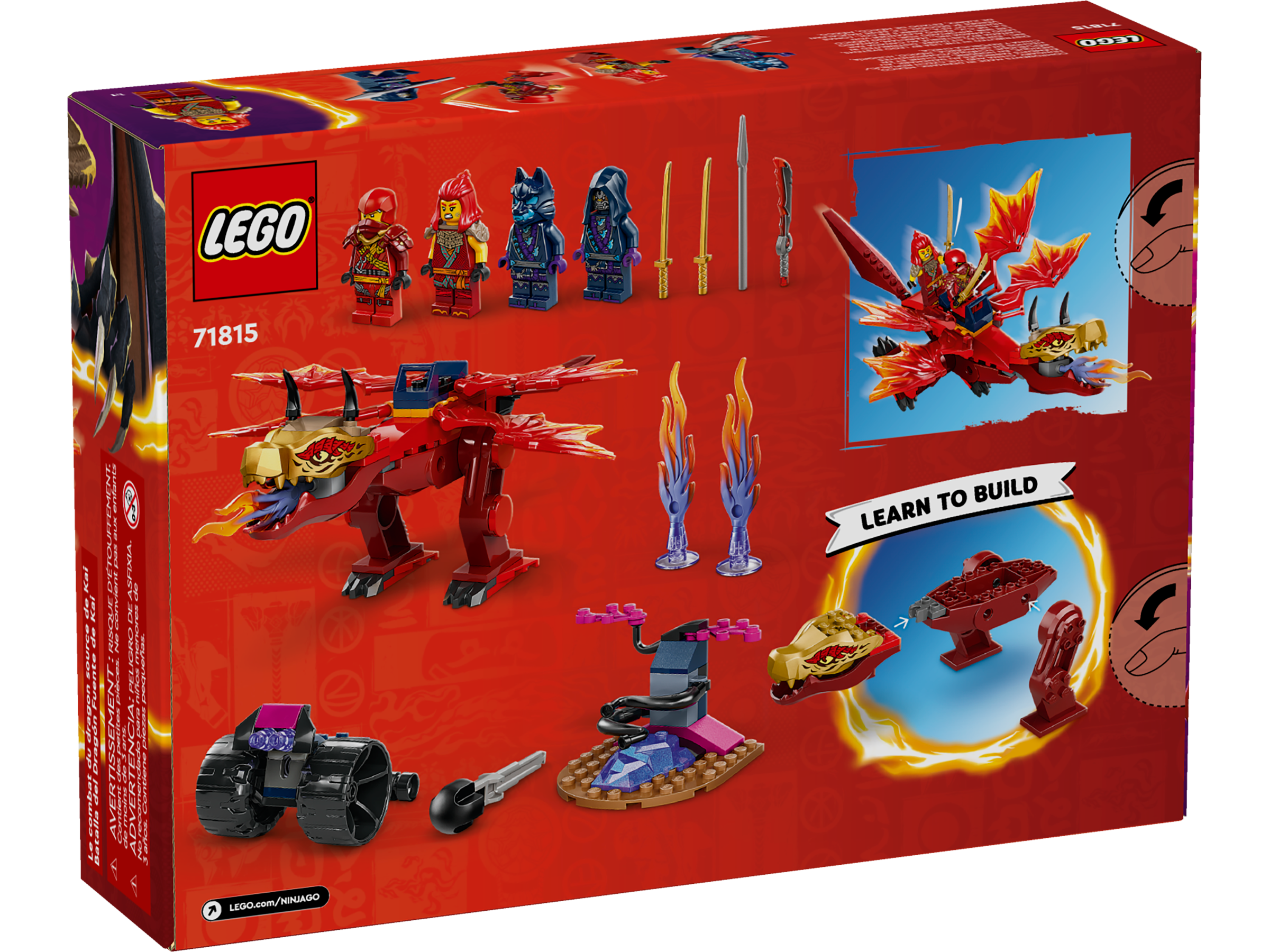 The LEGO® NINJAGO® Kai’s Source Dragon Battle (71815) adventure playset helps kids aged 4 learn how to build while they enjoy exciting ninja adventures in the NINJAGO universe. This action toy features a red dragon model that kids can pose by moving its jaw, head, tail, legs and 4 wings. Kids can also place a fire element in its mouth to scare villains.