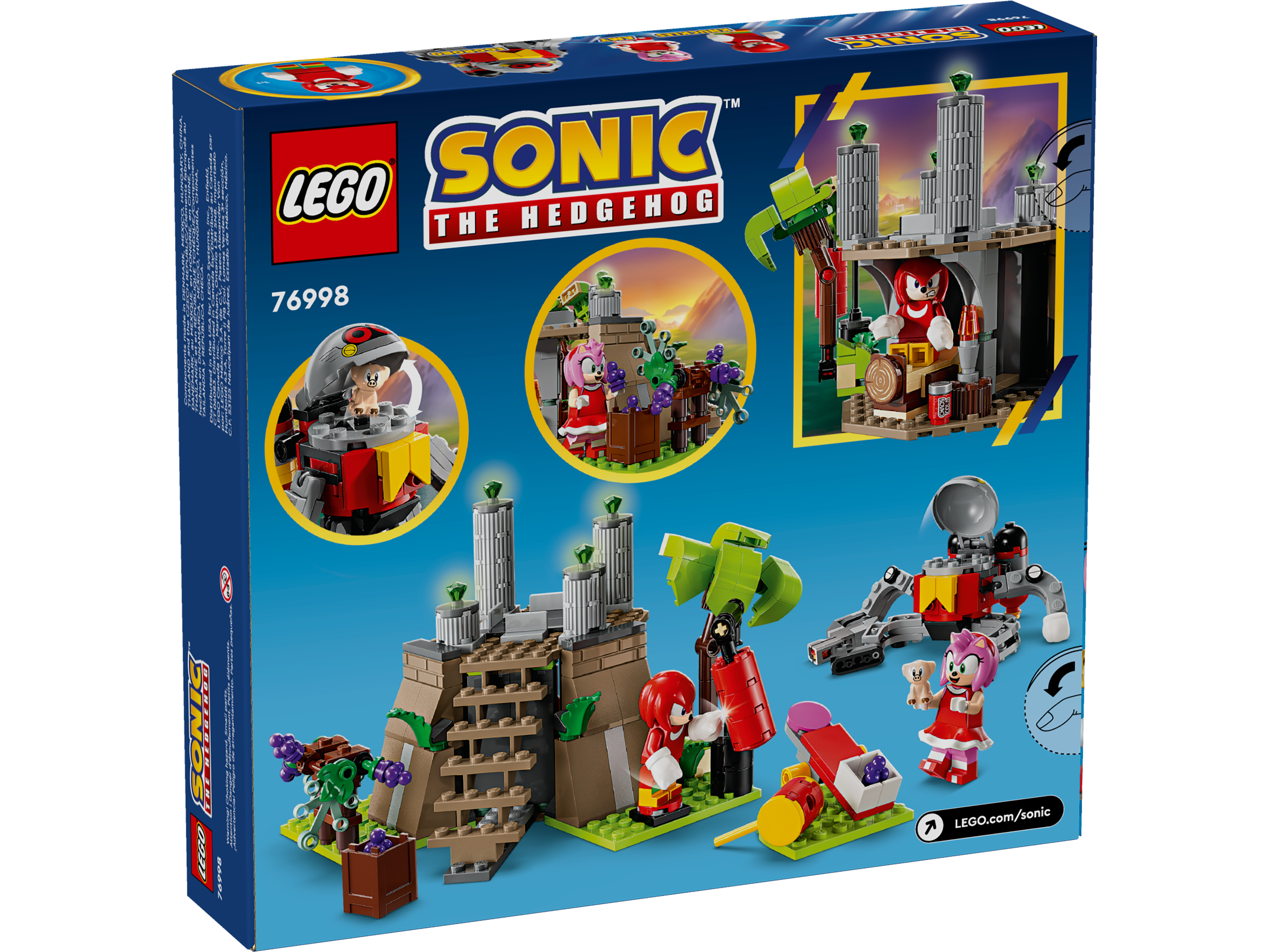 This cool Sonic playset can be an imaginative toy that lets fans create stories with Knuckles and Amy: from working out and harvesting grapes, to defending the shrine and Chaos Emeralds, to relaxing with snacks after defeating the Eggrobo and rescuing the Picky.
