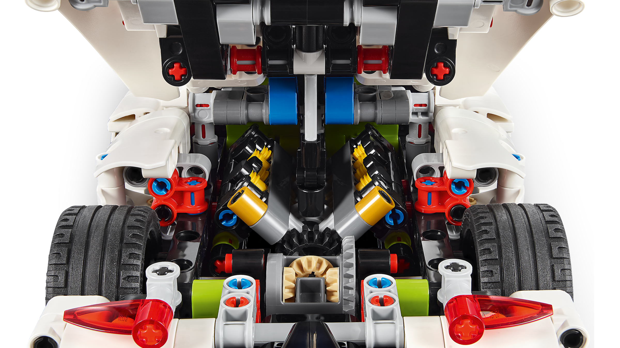 Young builders can explore engineering concepts as they build the moving V8 engine and differential. Next, they can try out the steering using the detachable knob that fits inside the front of the car. A cool feature of this hypercar toy is the dihedral synchro-helix door system, which allows the doors to rotate 90 degrees and move outwards, just like those on the real hypercar.