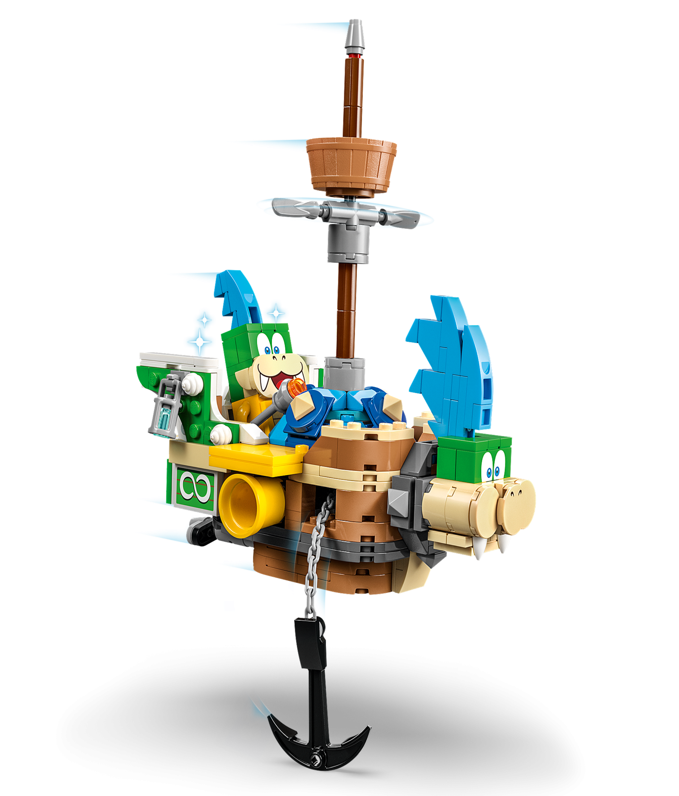 Take the LEGO® Super Mario™ action into the skies with Larry’s and Morton’s Airships Expansion Set (71427). It features brick-built versions of these 2 Koopalings’ airships. Place LEGO® Mario™, LEGO® Luigi™ or LEGO® Peach™ (figures not included) in the cockpits and ‘fly’ the airships to activate sound effects and fight a virtual cannon battle. Morton’s airship can also be opened up to create a battle zone in a LEGO Super Mario level. Note: the 71360, 71387 or 71403 Starter Course is required for interactive play.