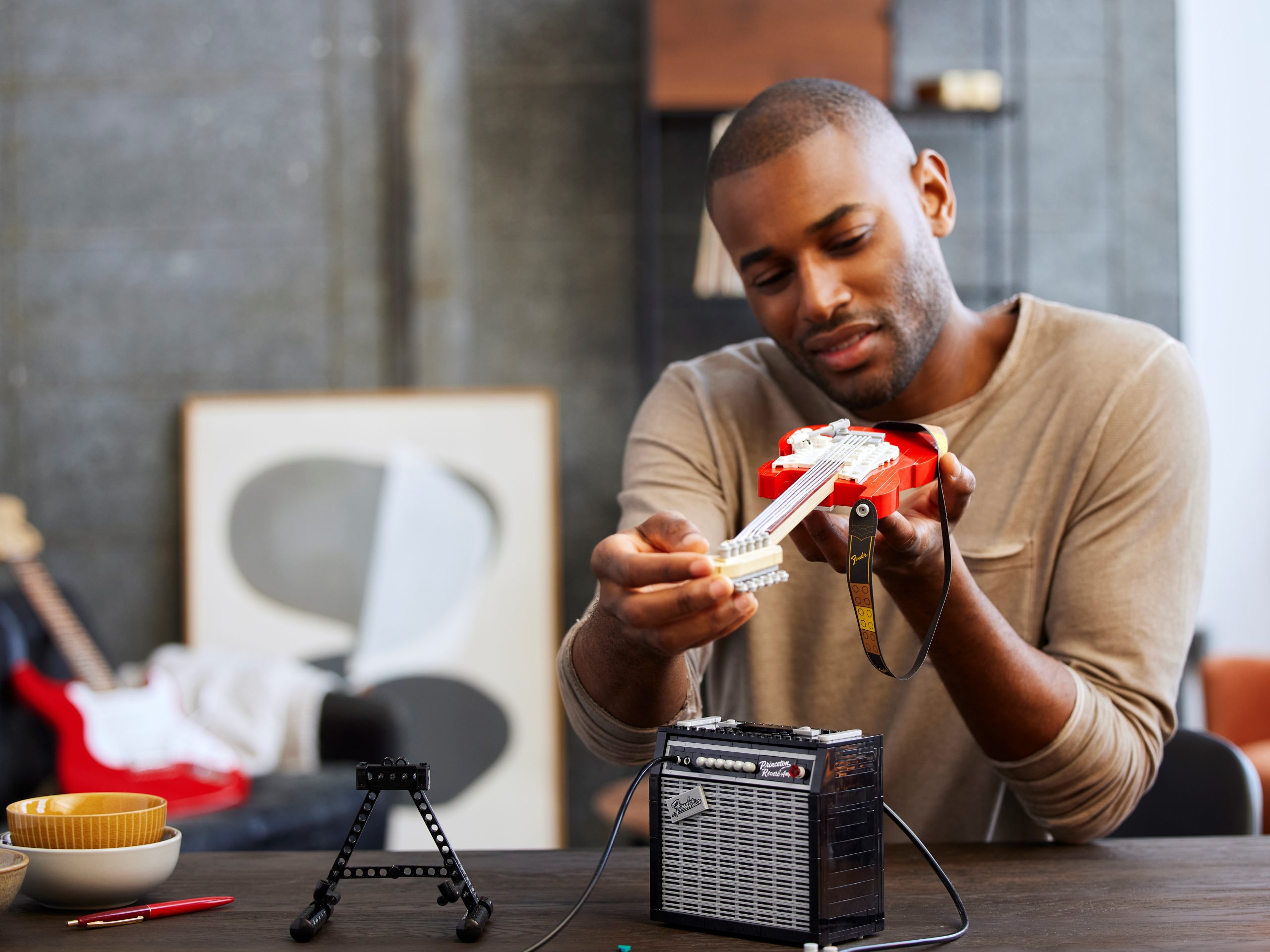 This building kit is part of a collection of LEGO sets for adults. It’s a top gift idea for guitar players, Fender fans, music lovers and keen LEGO builders.