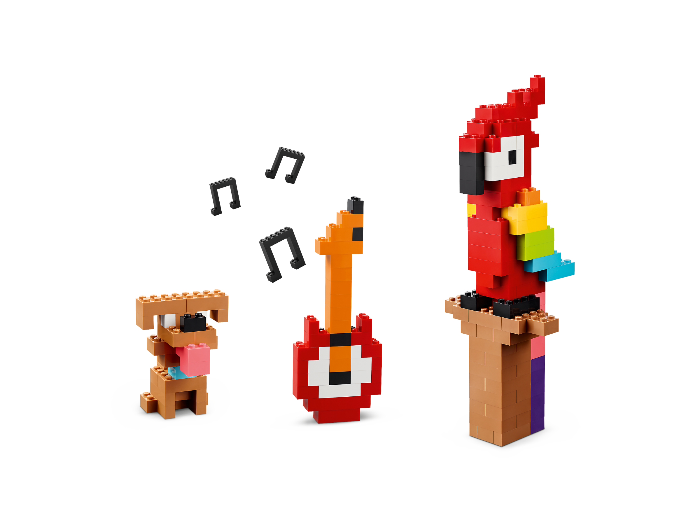 The set contains large quantities of vibrantly colored LEGO bricks – particularly the original and very popular 2×4 brick! The set comes with clear, printed instructions for building fun model toys, including a car, globe, flower, heart, guitar, house, smiley emoji, parrot, dog and an apple. This set is all about encouraging open-ended creative play. It even includes a magazine packed with building instructions and suggestions for your budding designer. A digital version of the set’s building instructions can also be found within the LEGO Builder app.
