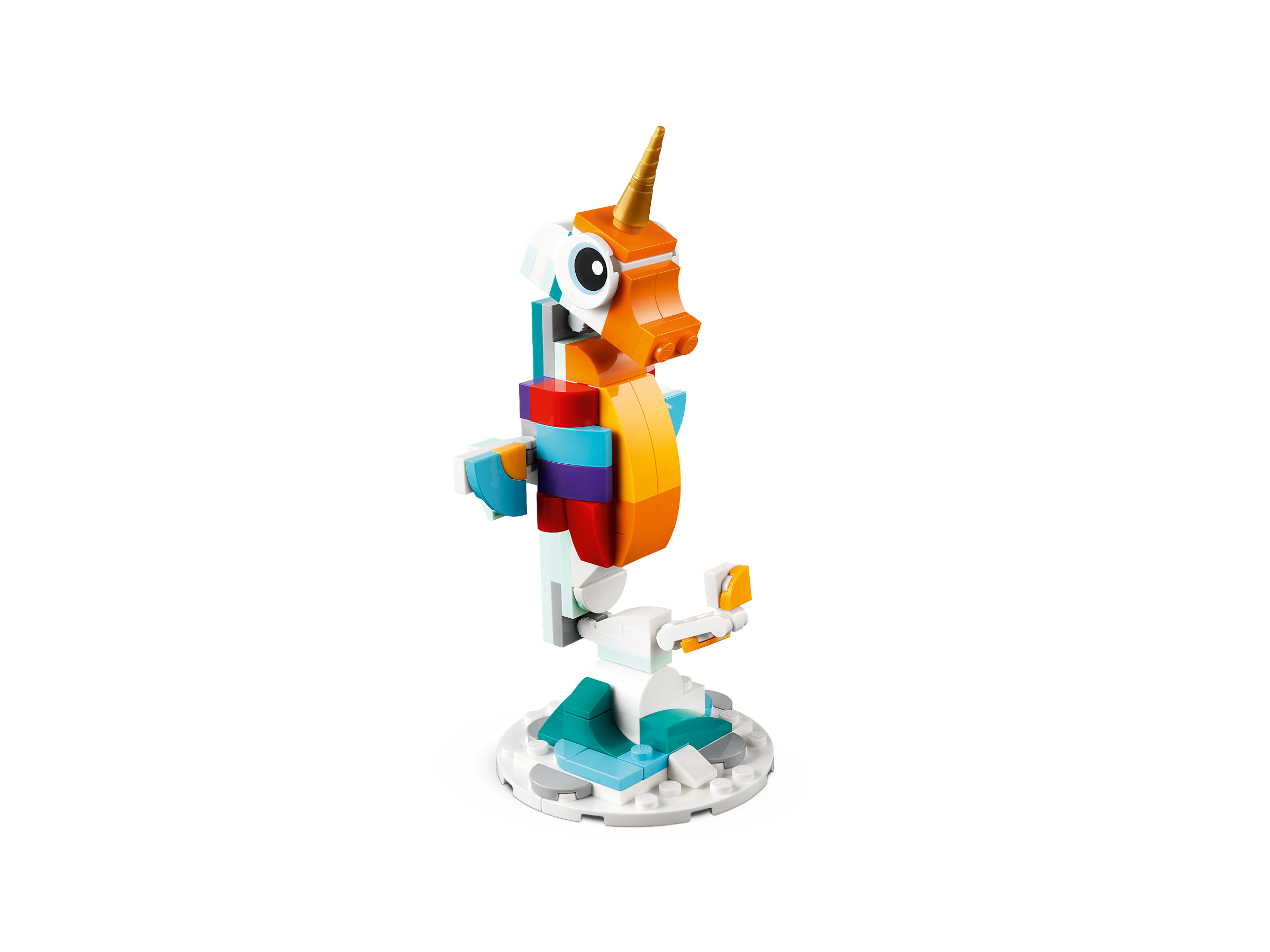 The mythical action never stops with 3 different magical creatures for little builders to assemble in this LEGO Creator 3in1 set. They can build a posable Magical Unicorn, rebuild it into a posable seahorse toy with a seabed stand, turn it into a posable magical peacock with a colorful tail, or even use the bricks to create another enchanting creature.