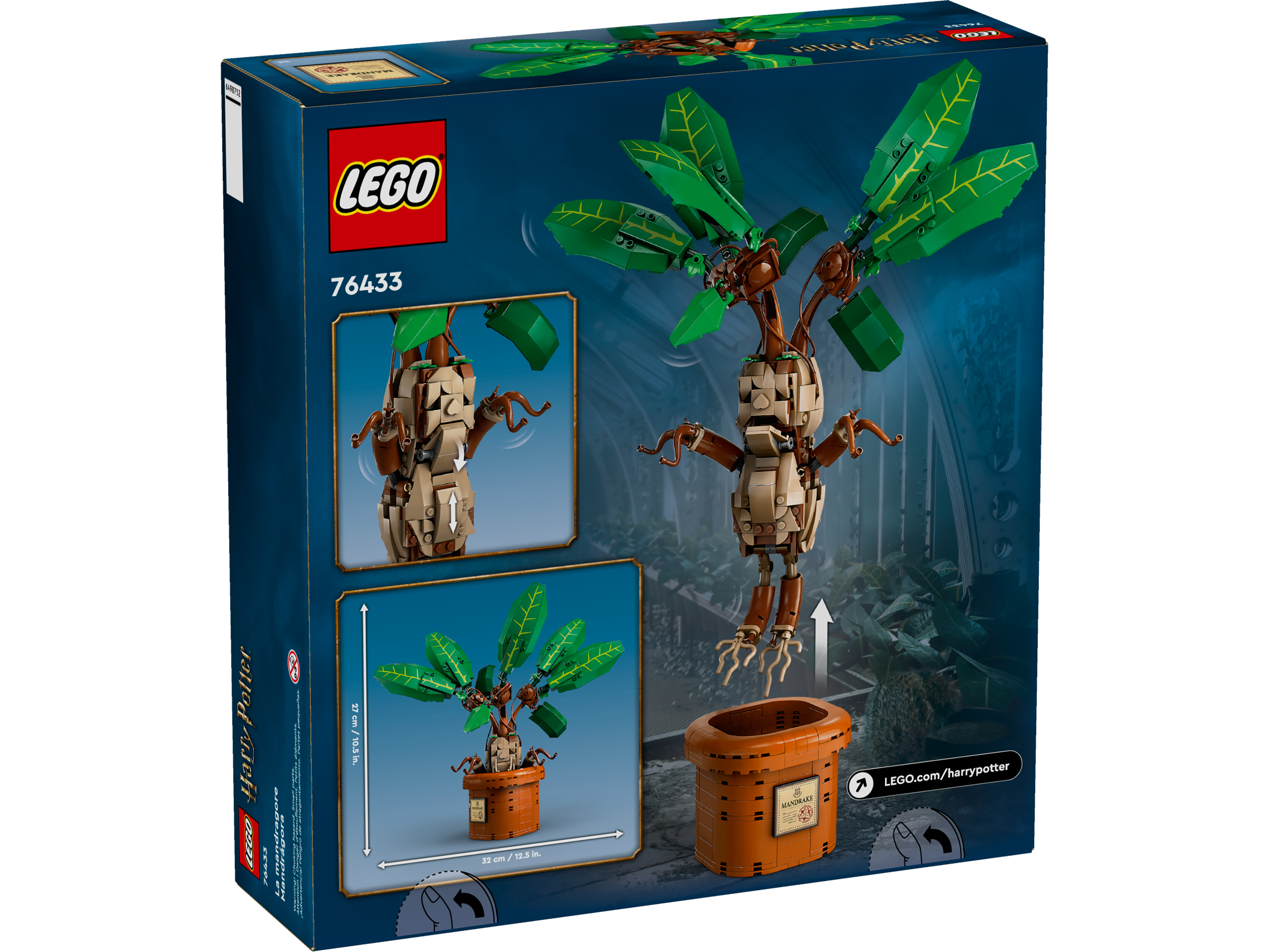 Bring the wonder of a Hogwarts™ Herbology class into kids’ lives with this LEGO® Harry Potter™ Mandrake plant toy (76433), the first-ever LEGO brick figure of the screaming plant. A magical gift and home decor idea for imaginative girls, boys and any Harry Potter fan aged 10 and up, the set features a close-to-life-size posable toy model of a Mandrake and a buildable plant pot to create a playful display. Pose the leaves of the Mandrake, remove it from the pot and move its chest up and down to animate its mouth and limbs as if it’s screaming.