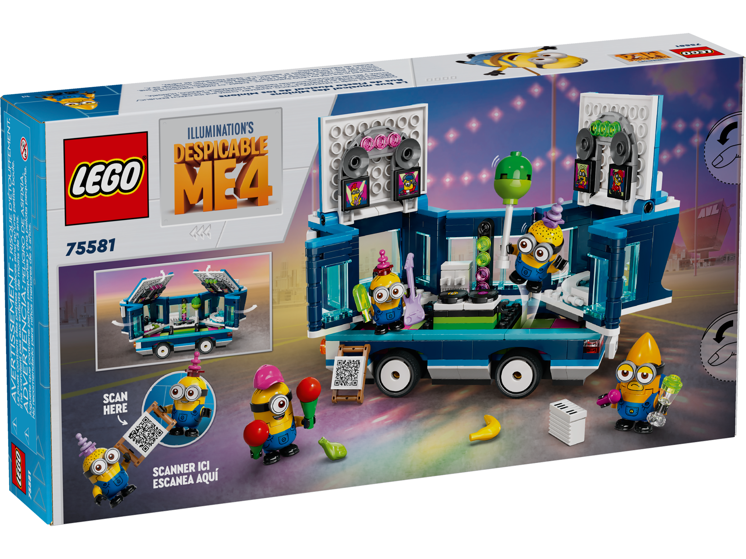 Give fans of Minions toys and kids with a passion for vehicles 2in1 fun with LEGO® Despicable Me 4 Minions’ Music Party Bus (75581). This creative set for kids features a push-along bus toy that opens to reveal a mega-fun, Minion party playset. It’s a versatile movie toy for boys and girls aged 7 and fans of Illumination’s Despicable Me 4.