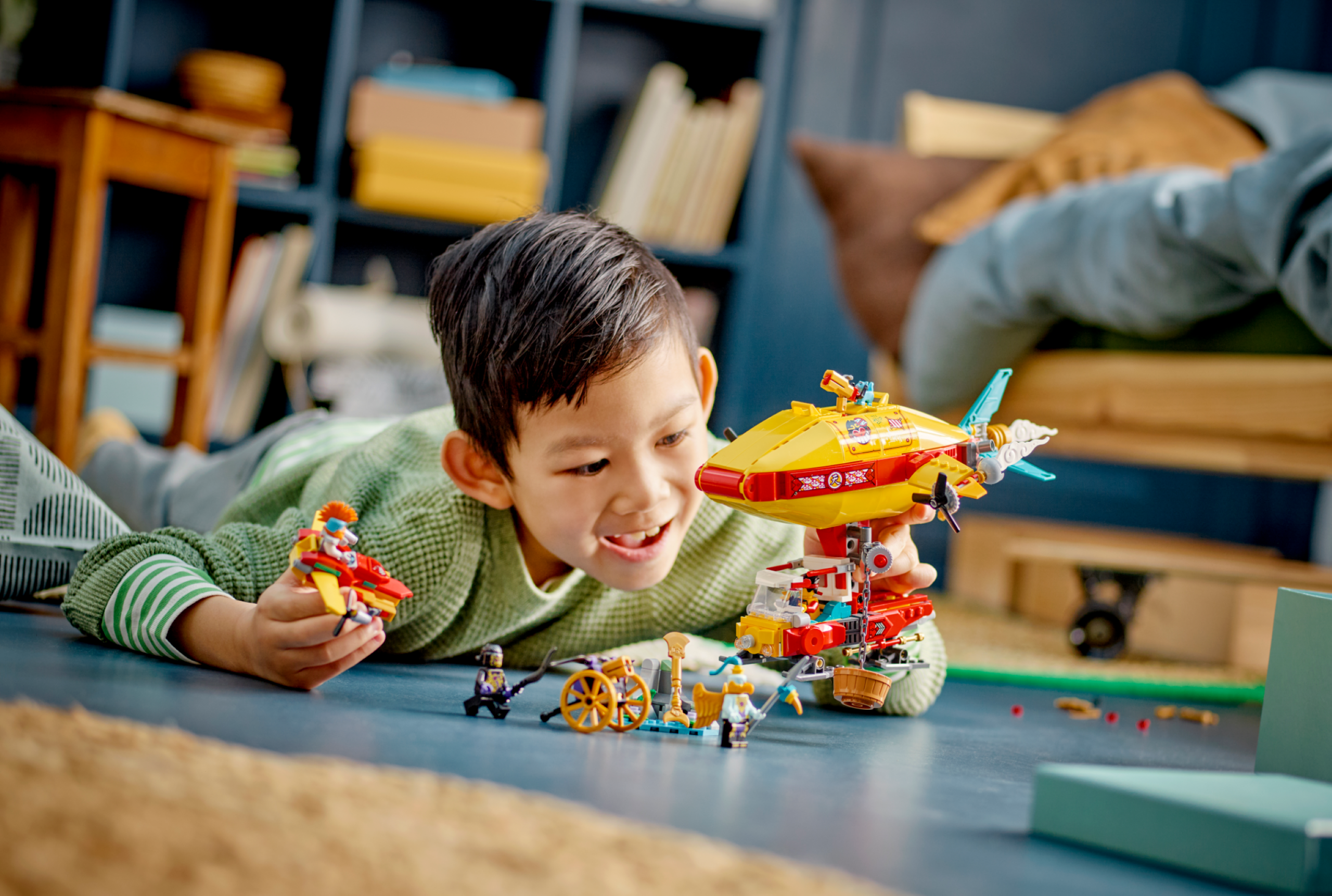 The set features 4 minifigures: Monkie Kid, Sandy Power-up, Ink Demon and The Golden-Winged Eagle, plus a Mo LEGO cat figure, and encourages exciting hot-air balloon play. Your child can also have an intuitive building adventure with the LEGO Builder app. They can use it to zoom in and rotate models in 3D, track progress and save sets as they build.