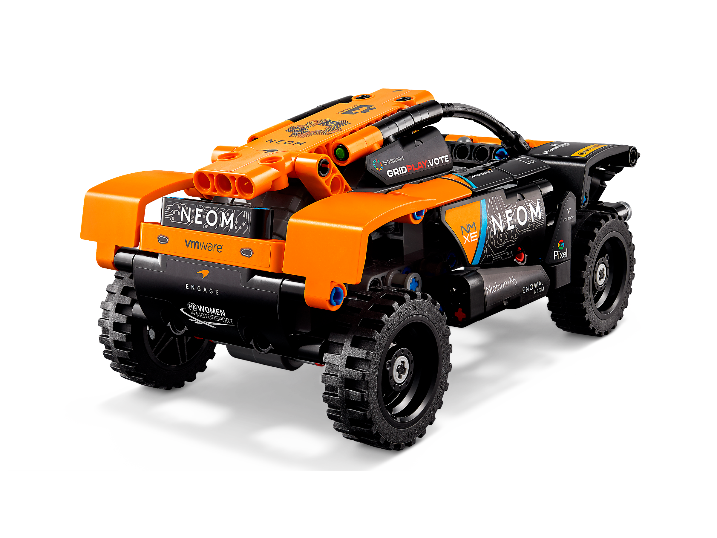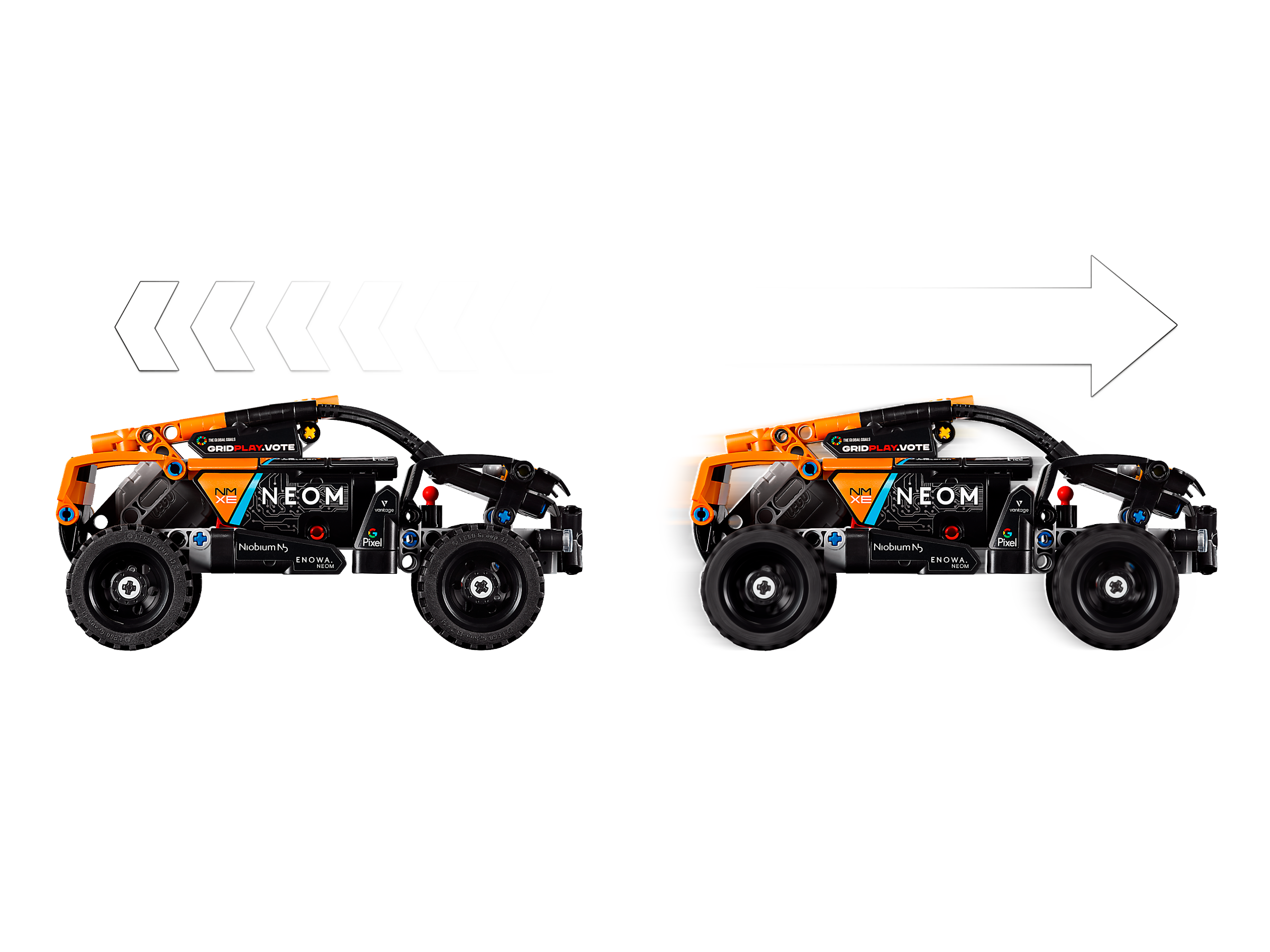Looking for an exciting gift for kids who love race car toys? This pull-back car for boys and girls aged 7 delivers thrills at every turn. First youngsters can enjoy building the LEGO® Technic™ NEOM McLaren Extreme E Race Car (42166). Then it’s time to have fun racing the car using the pull-back action.